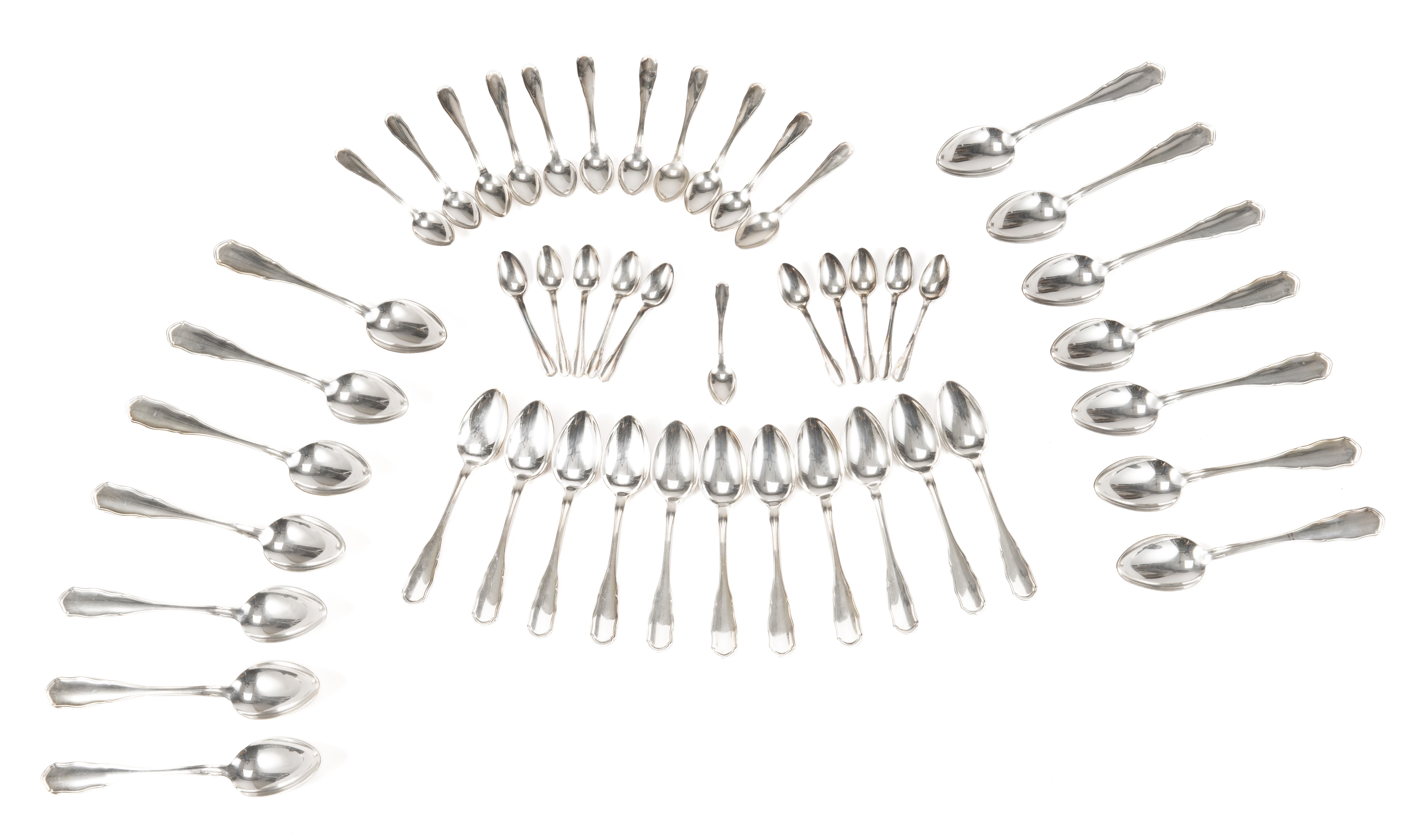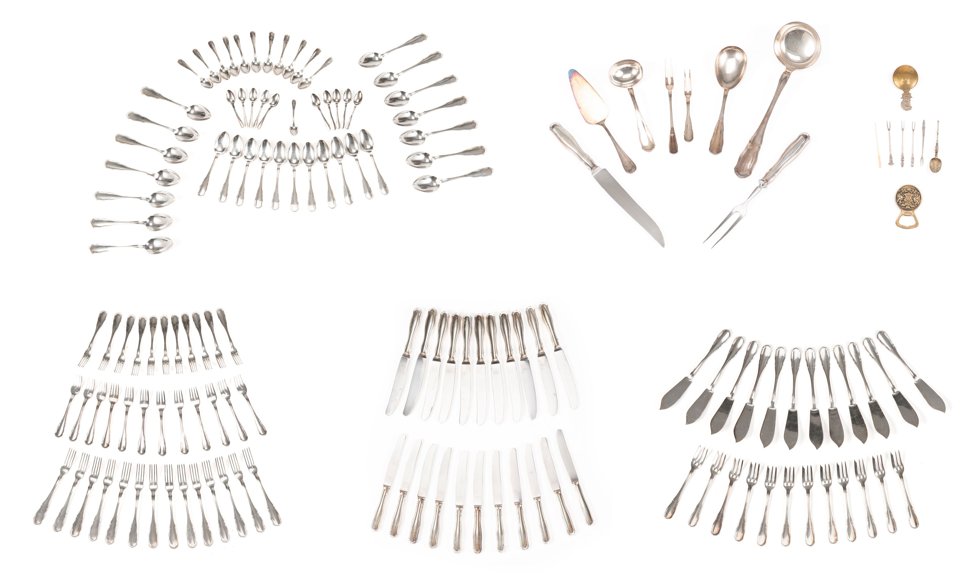 - 14 cuillères à soupe, 14 grandes fourchettes, 12 grands couteaux