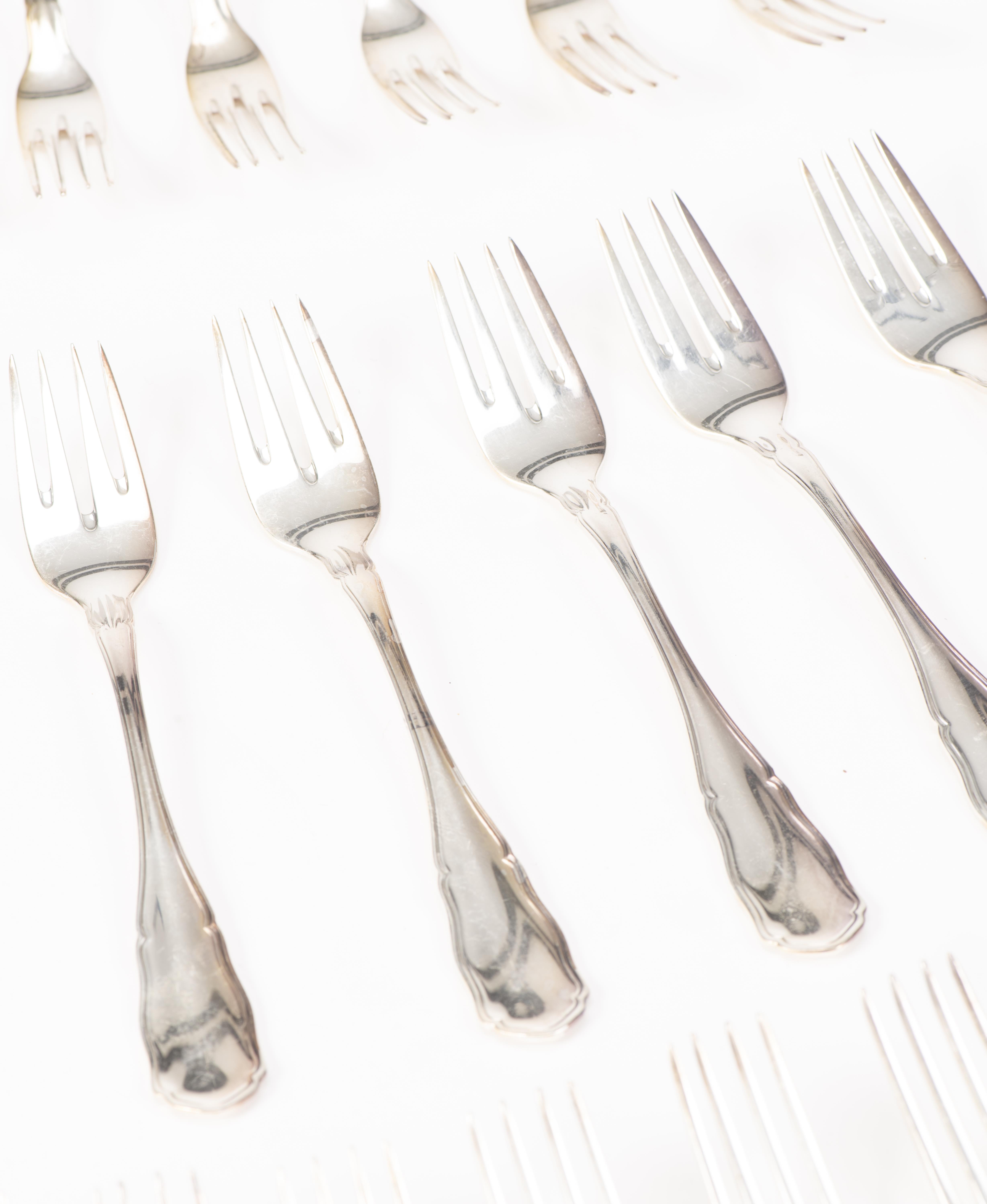 - 11 fourchettes à entremets, 11 cuillères à entremets