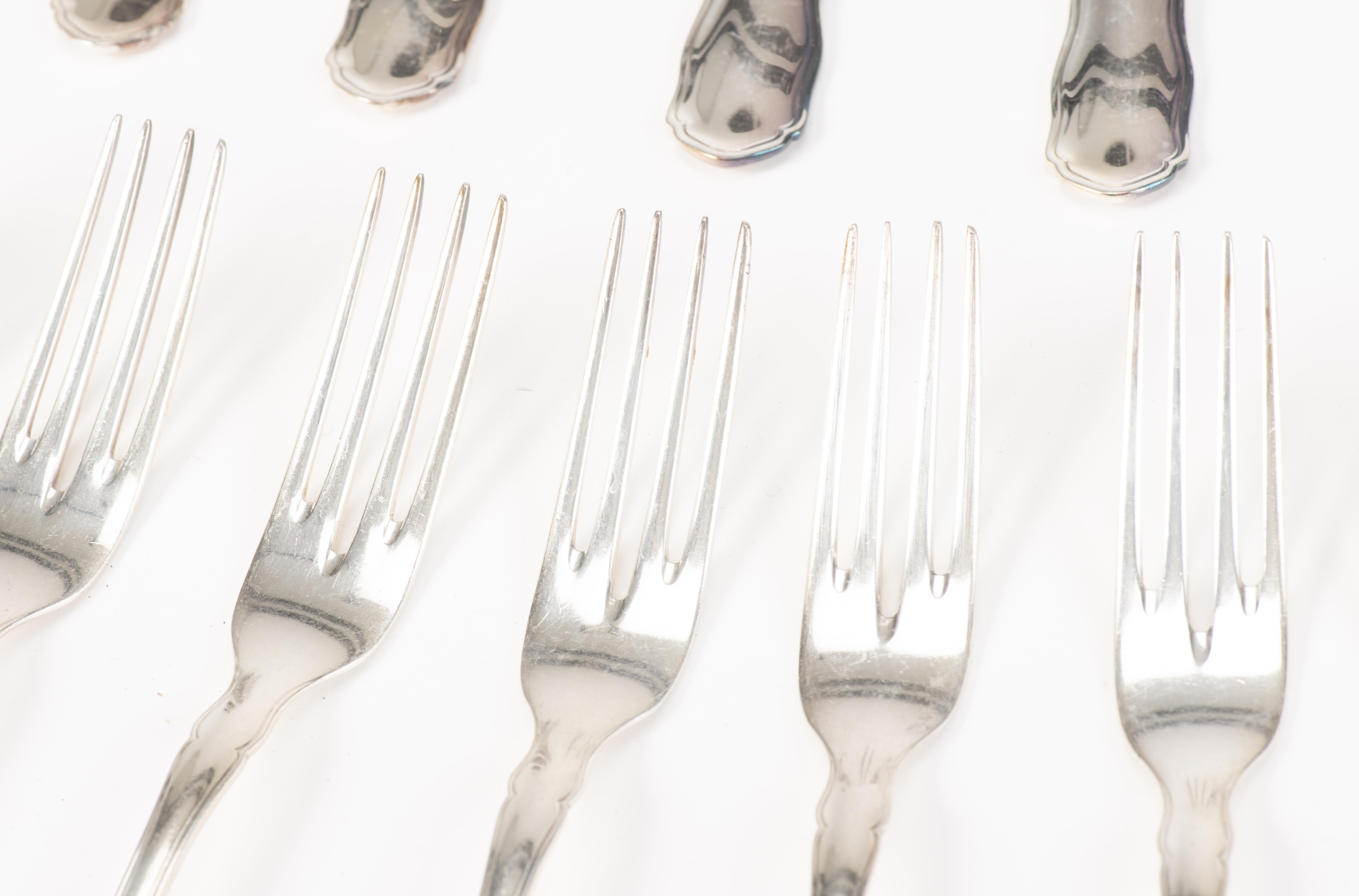 - 11 couteaux à fruits, 12 fourchettes à pâtisserie