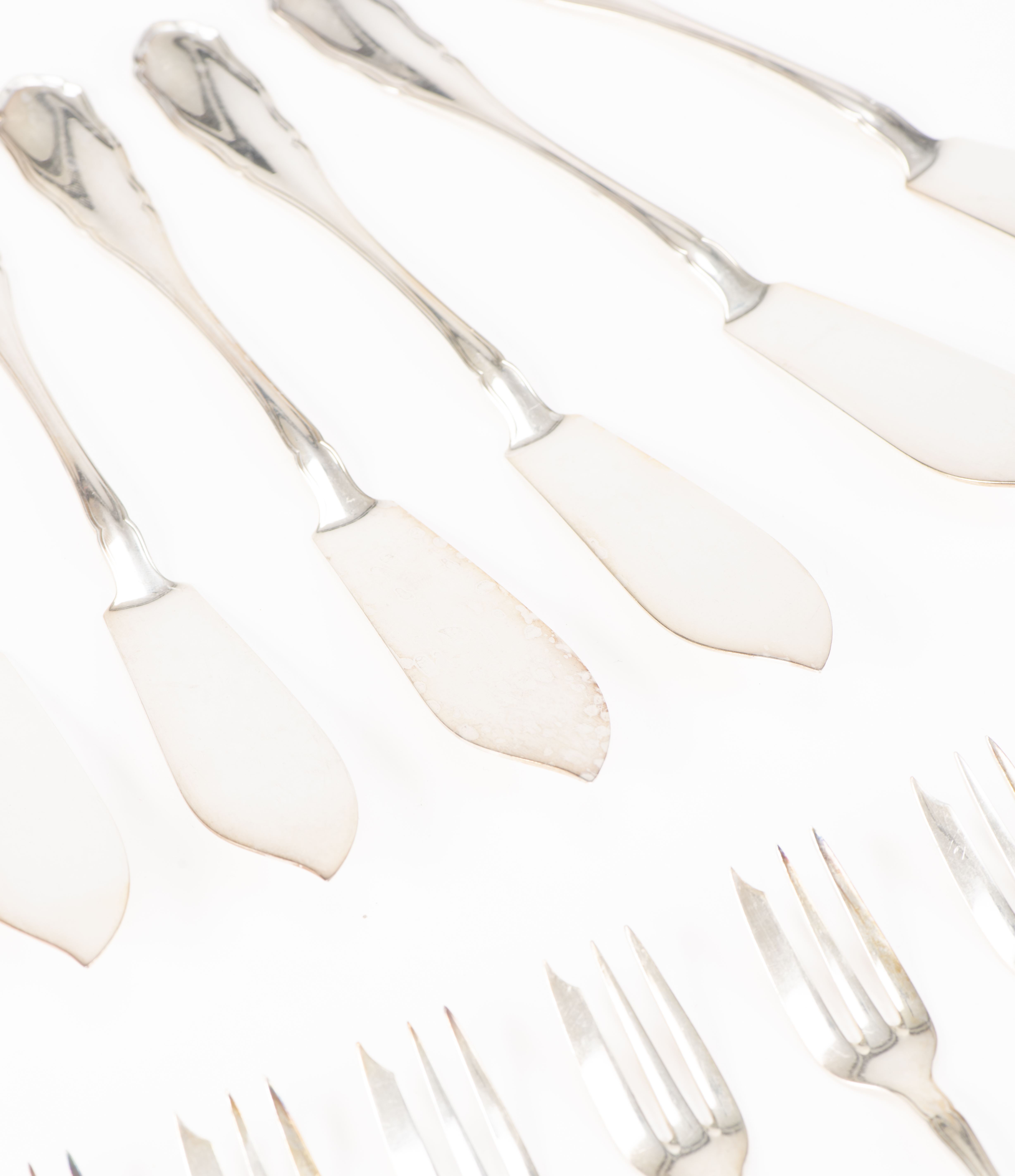 - 12 couteaux à poisson, 12 fourchettes à poisson