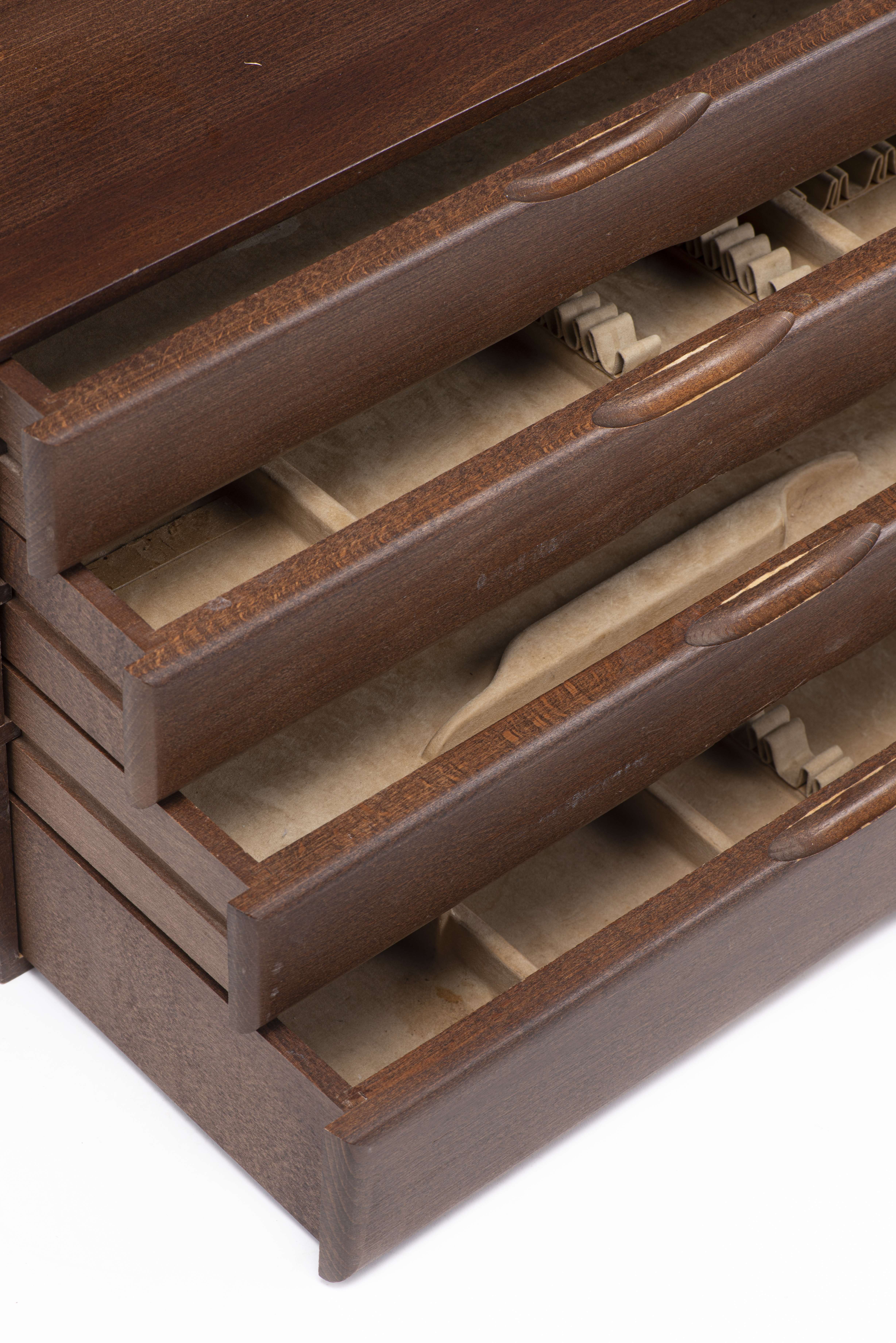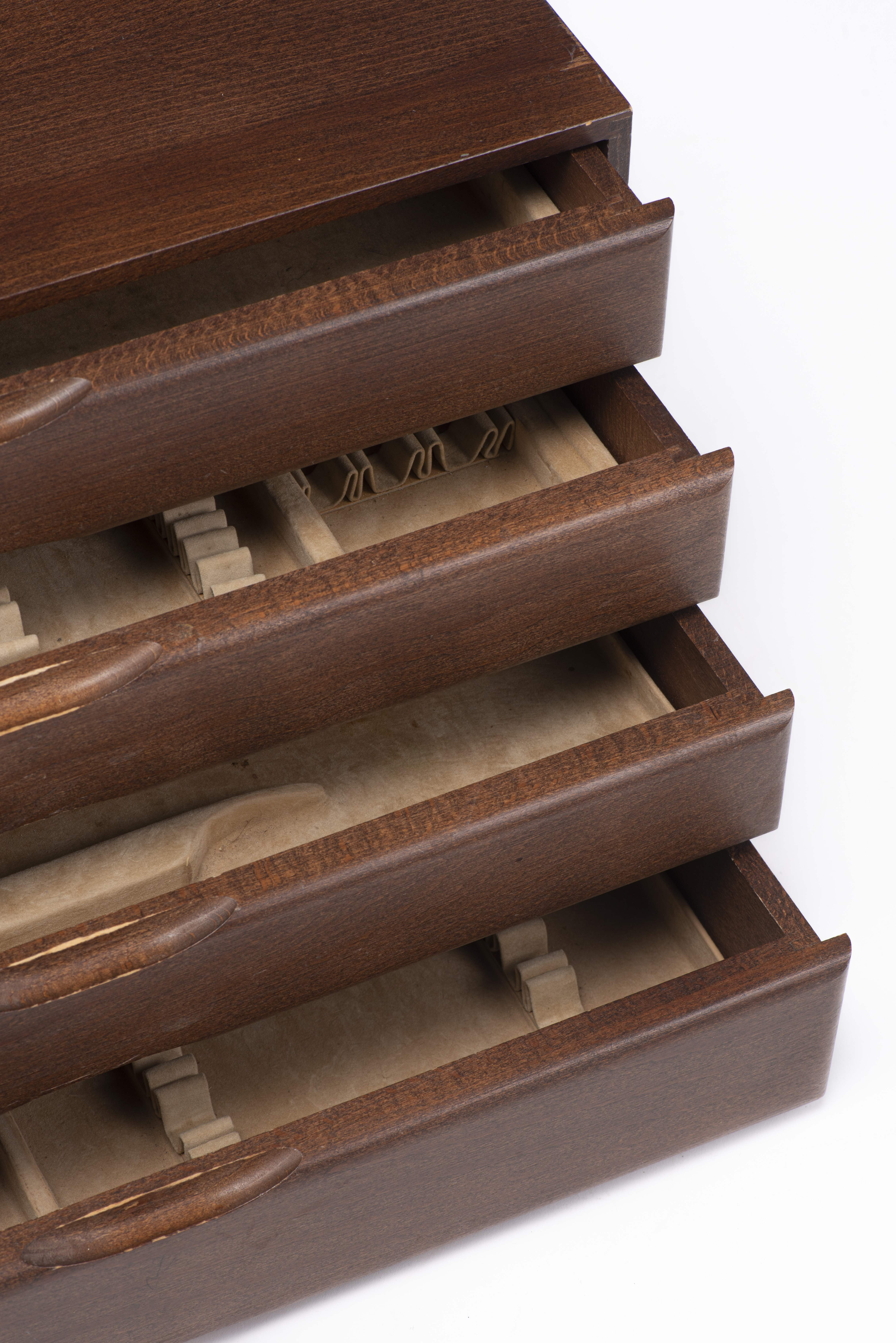Argentier à 4 tiroirs avec gainage intérieur en velours beige.