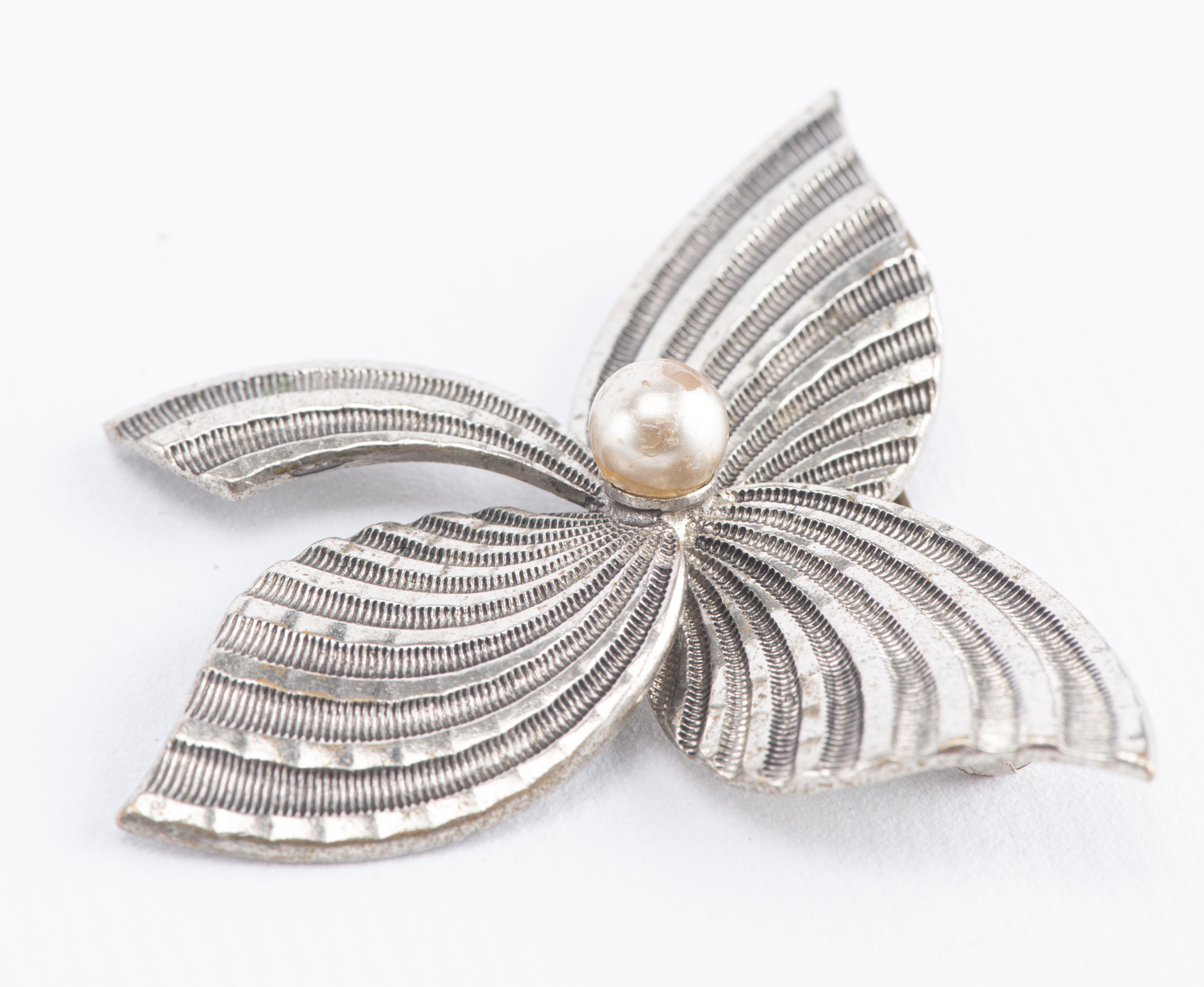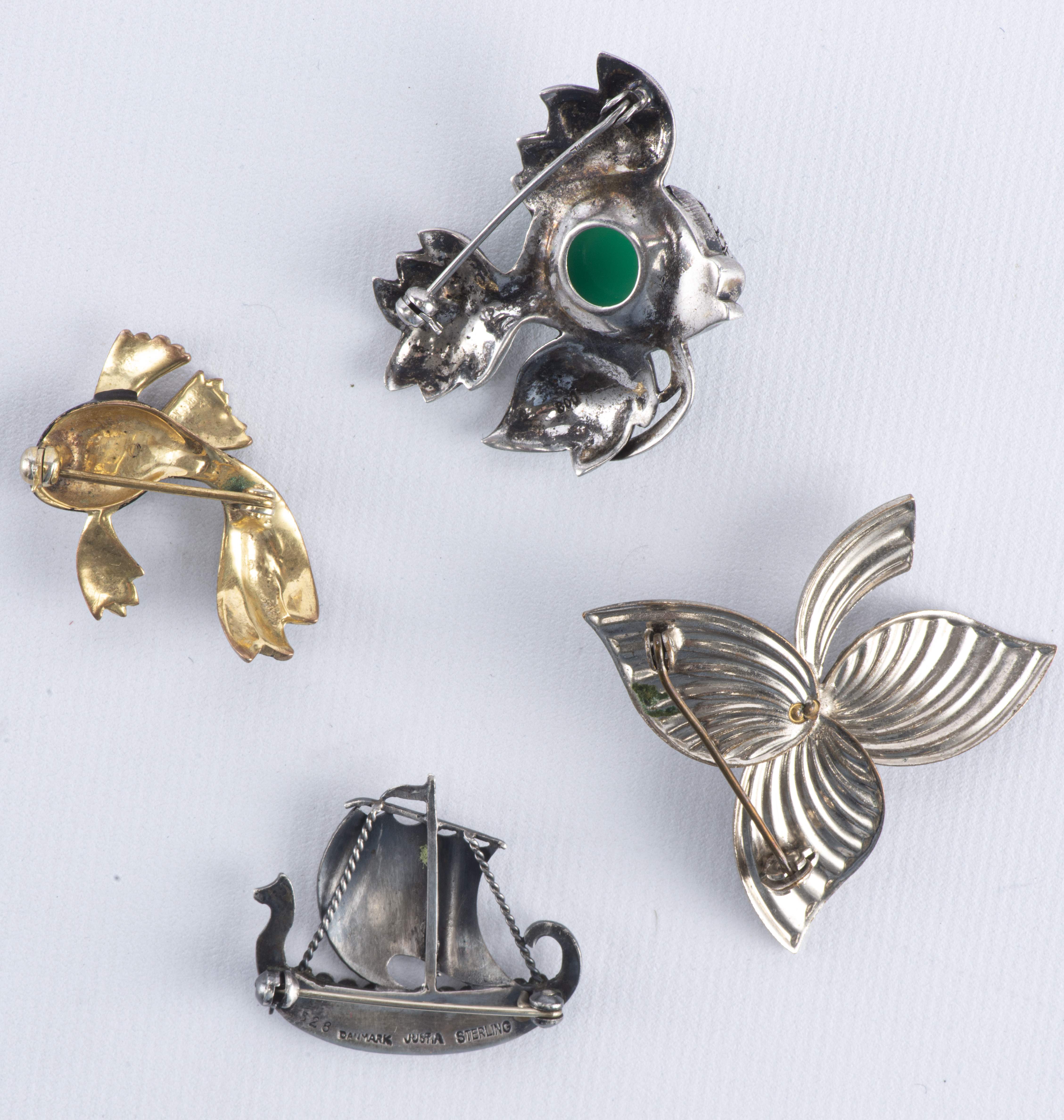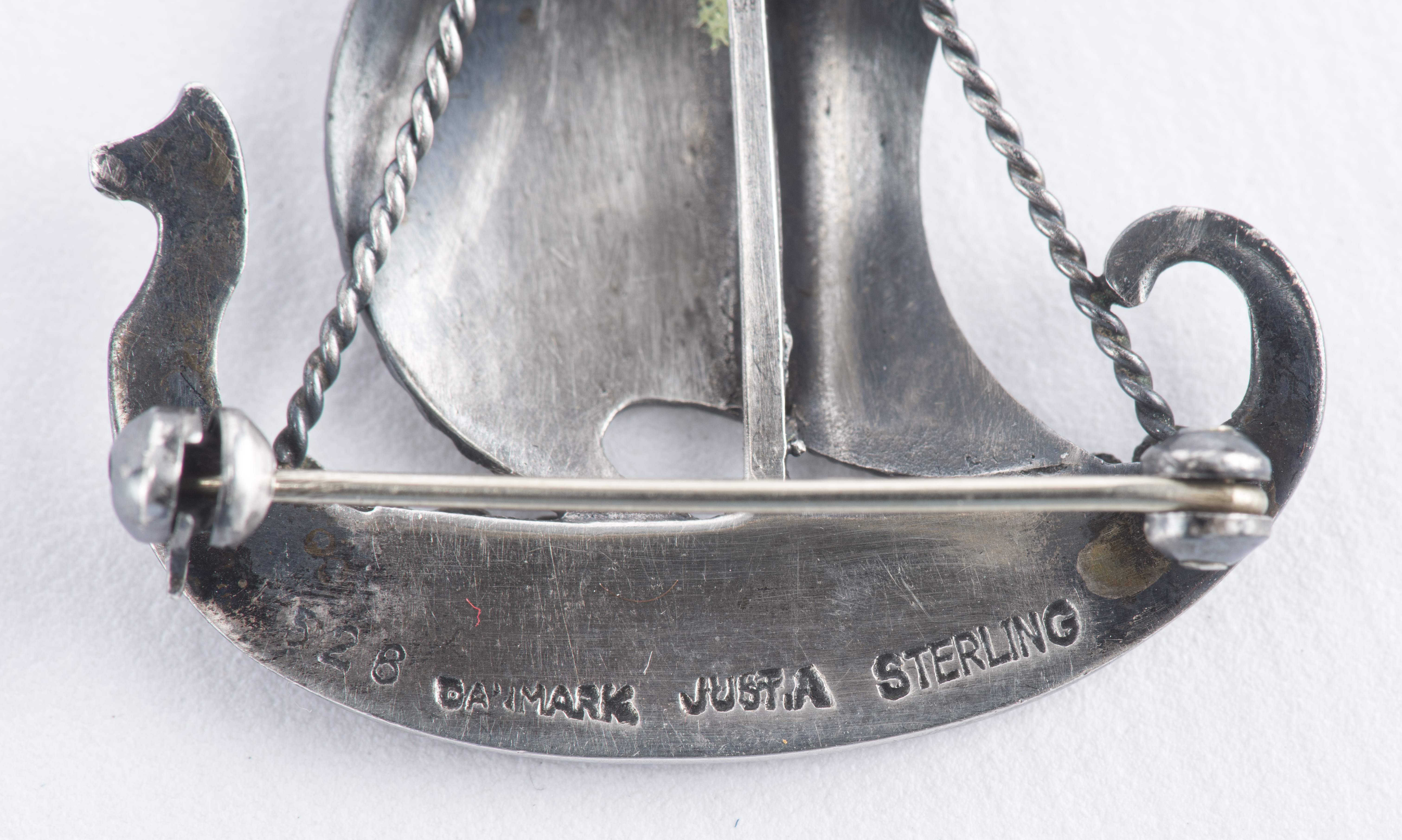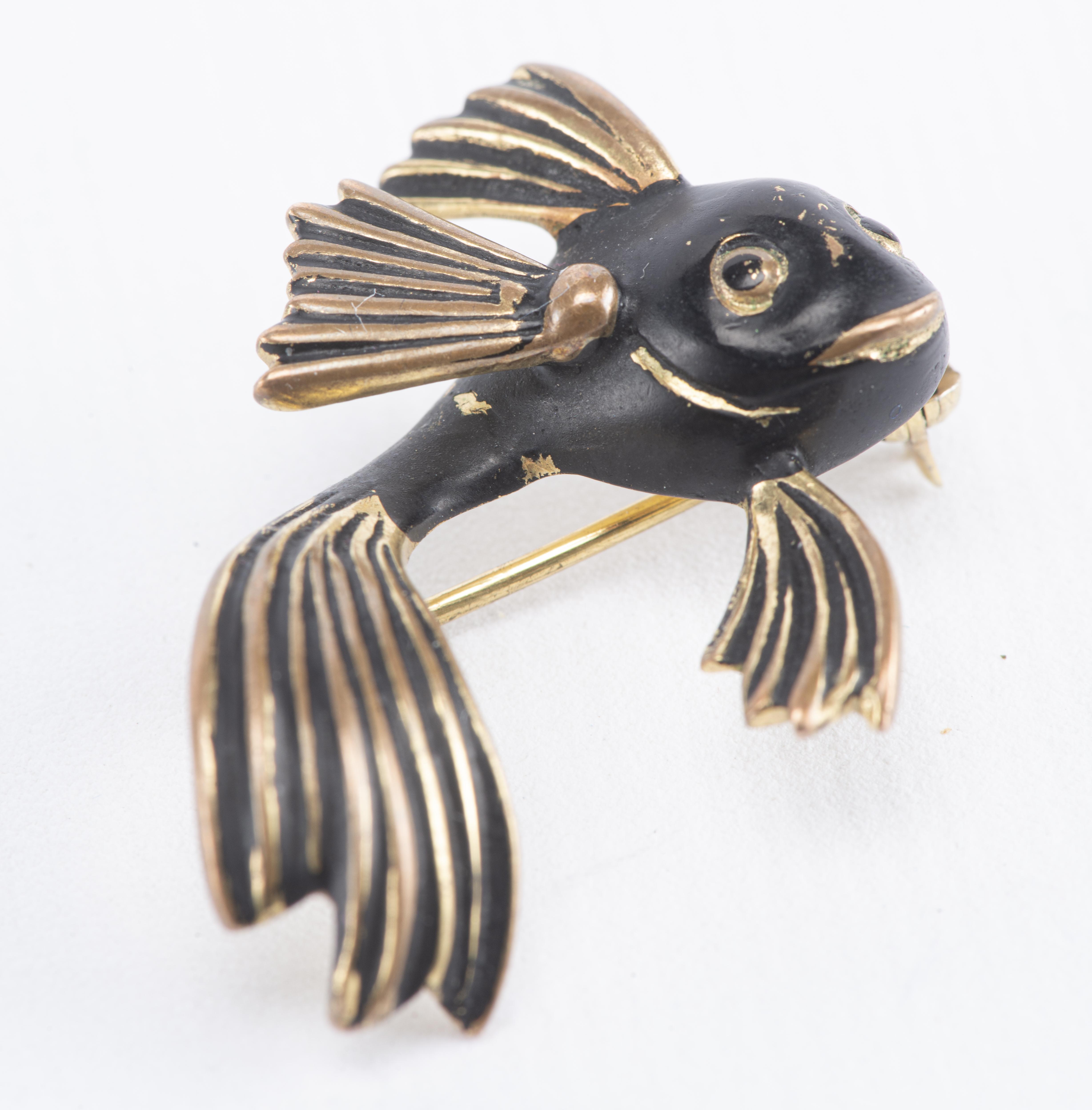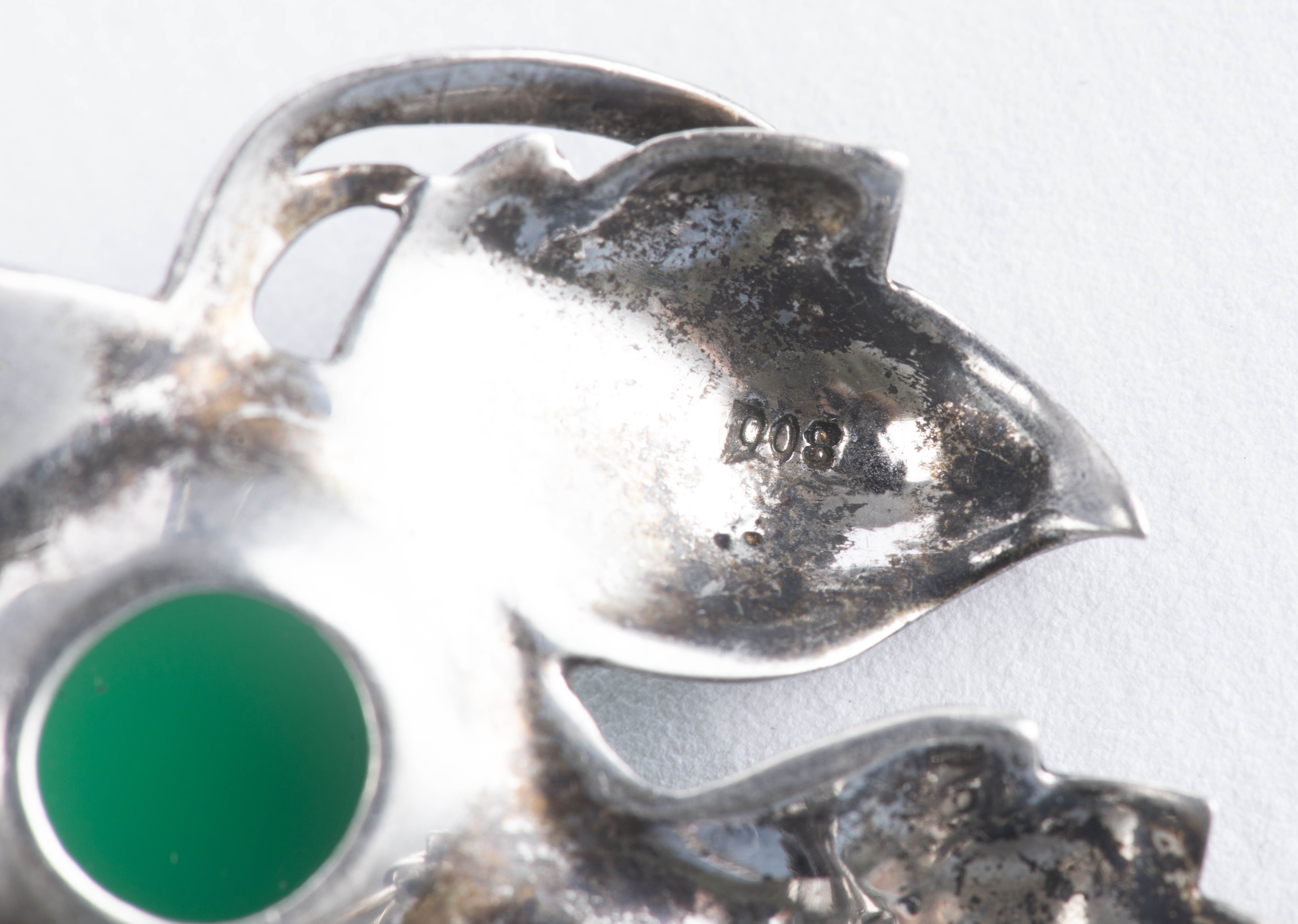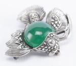 -une broche poisson en argent .800 en marcassite et cabochon vert