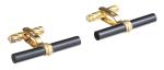 TRIO Boutons et boutons de manchettes, avec cylindres en onyx et or jaune .585.