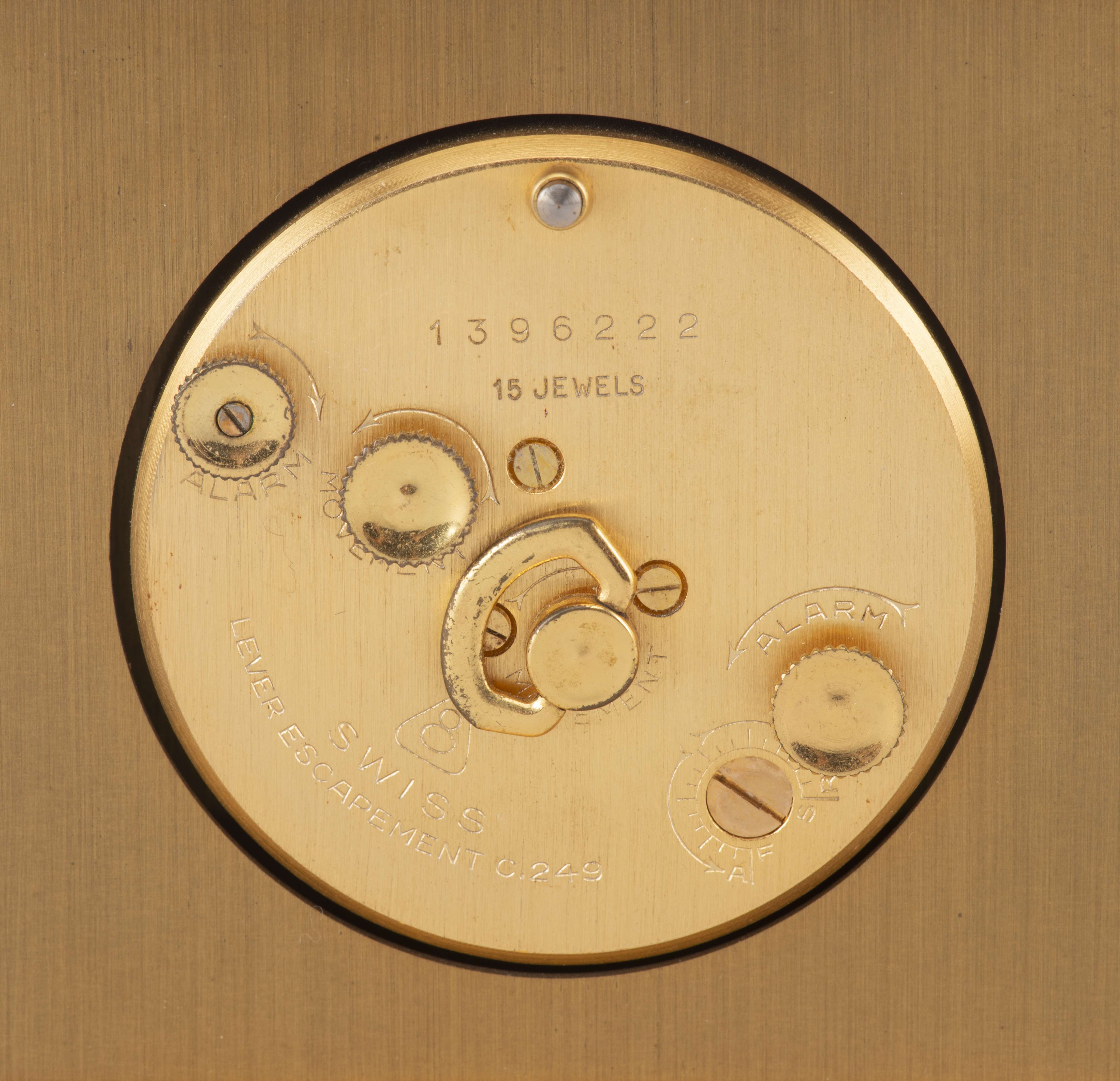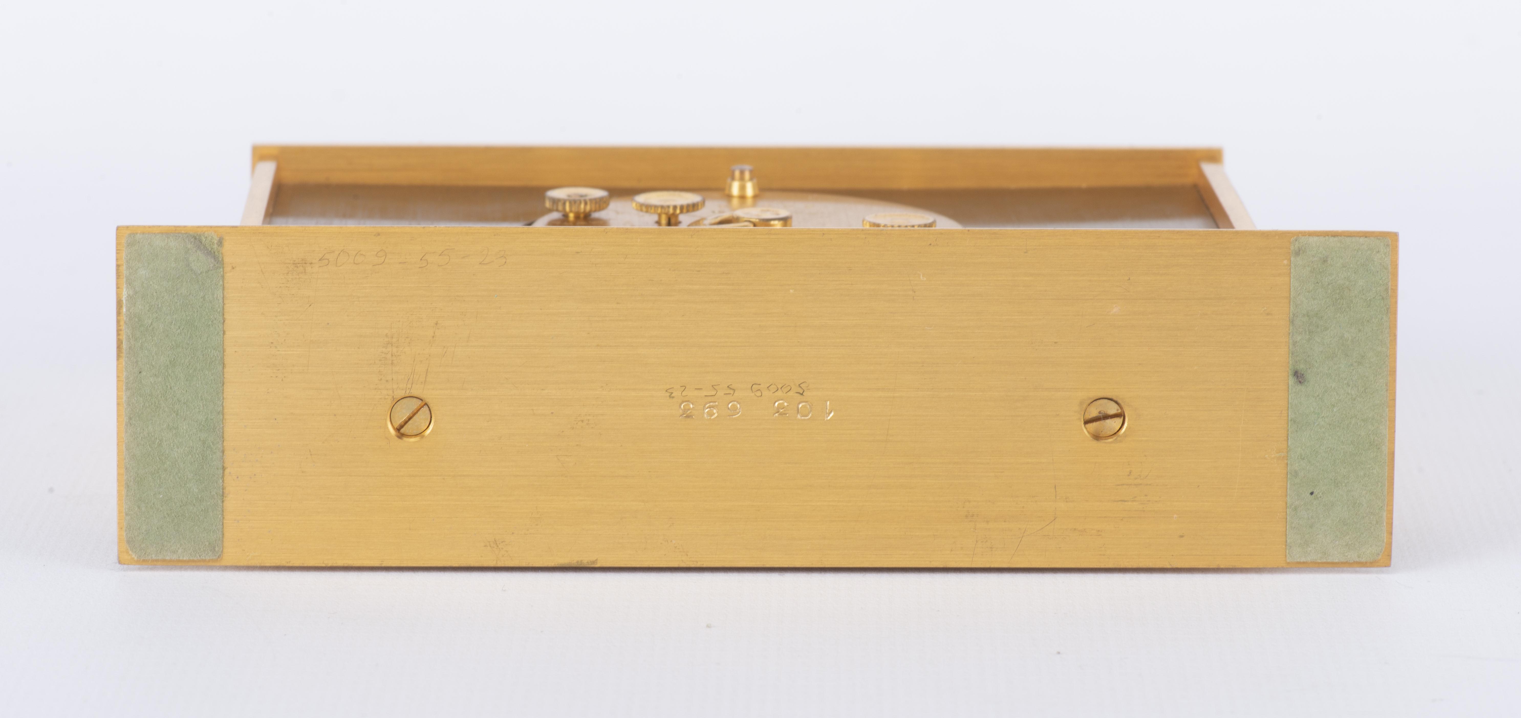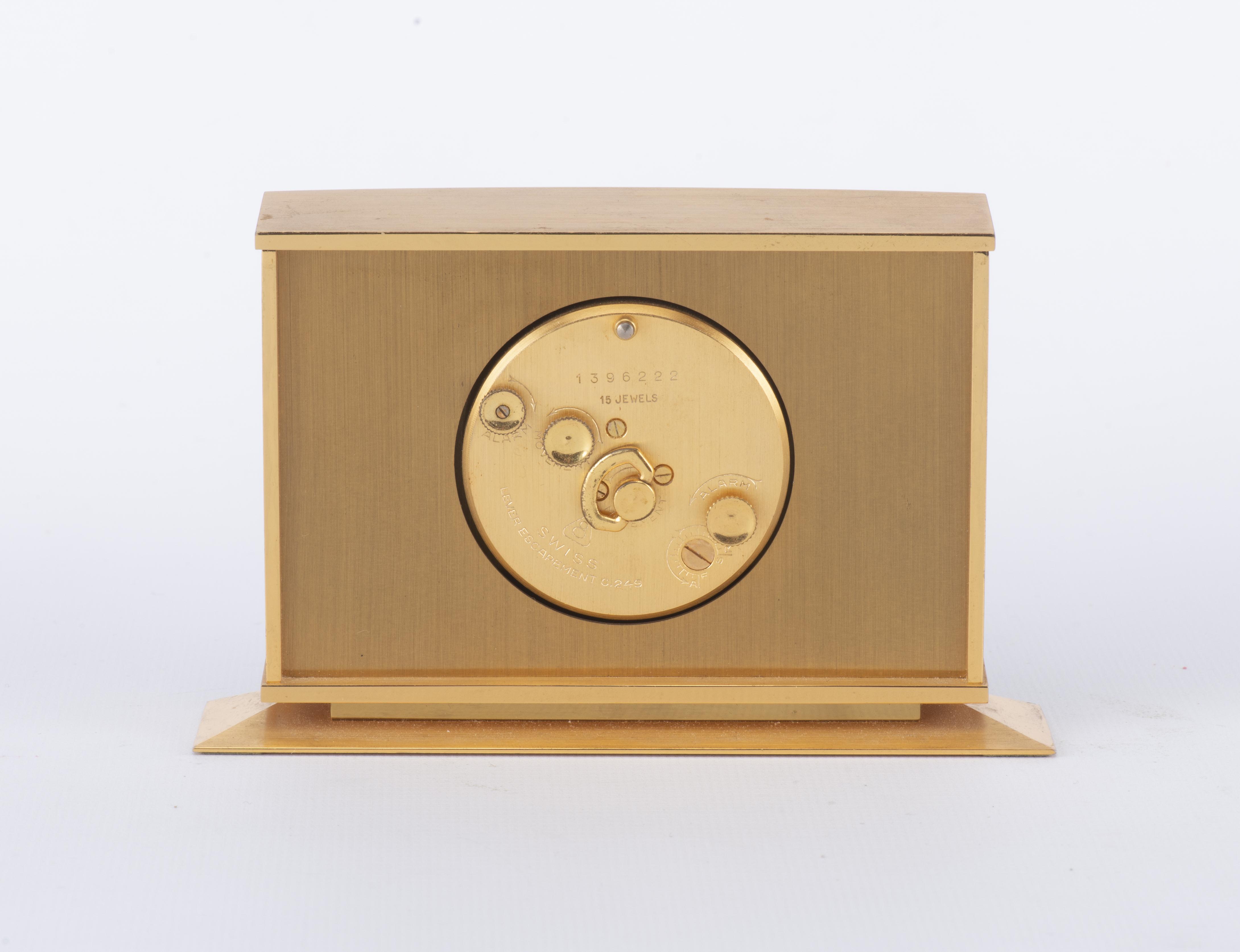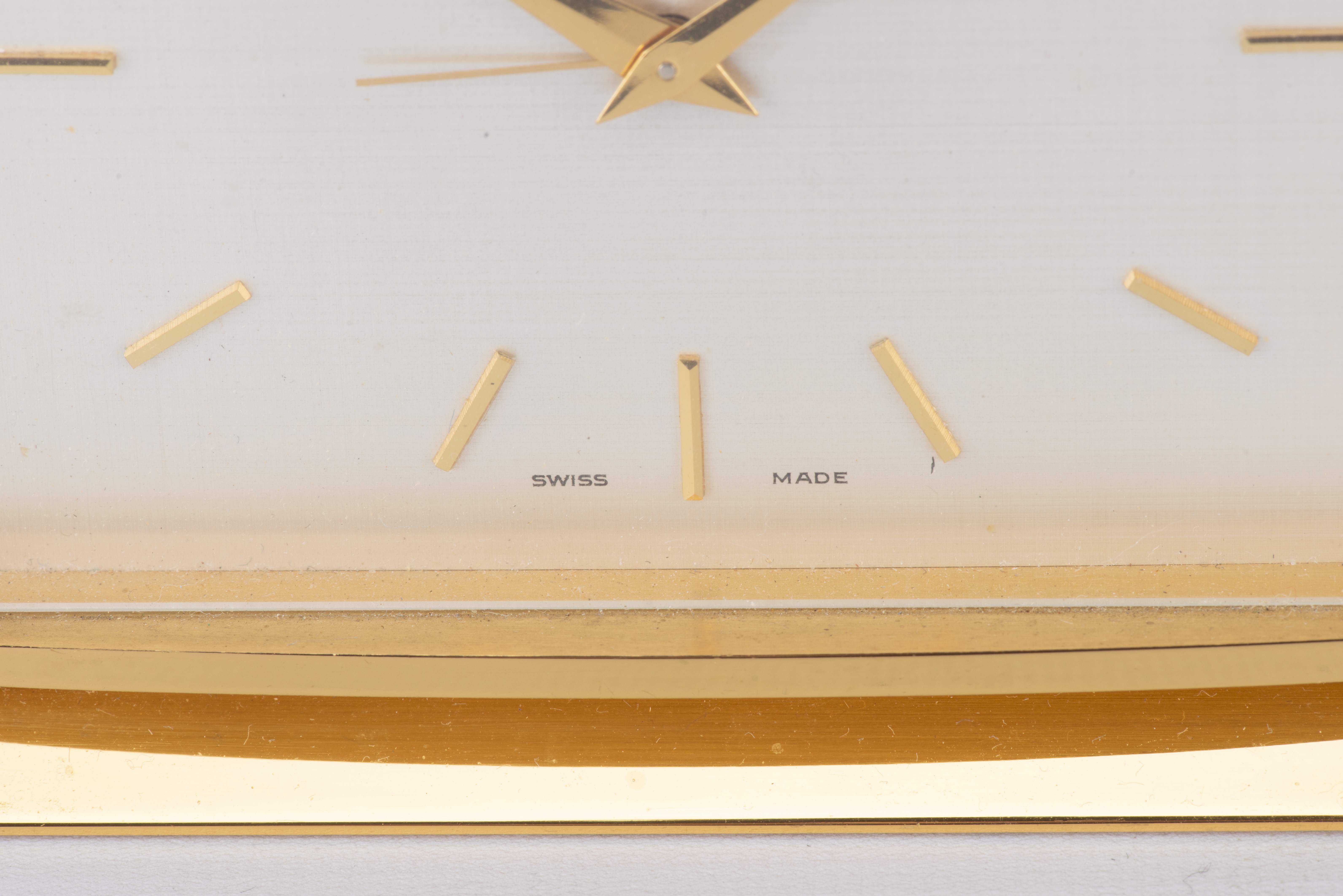 ImHof, pendulette de table en laiton doré, cadran blanc, aiguilles et index dorés.