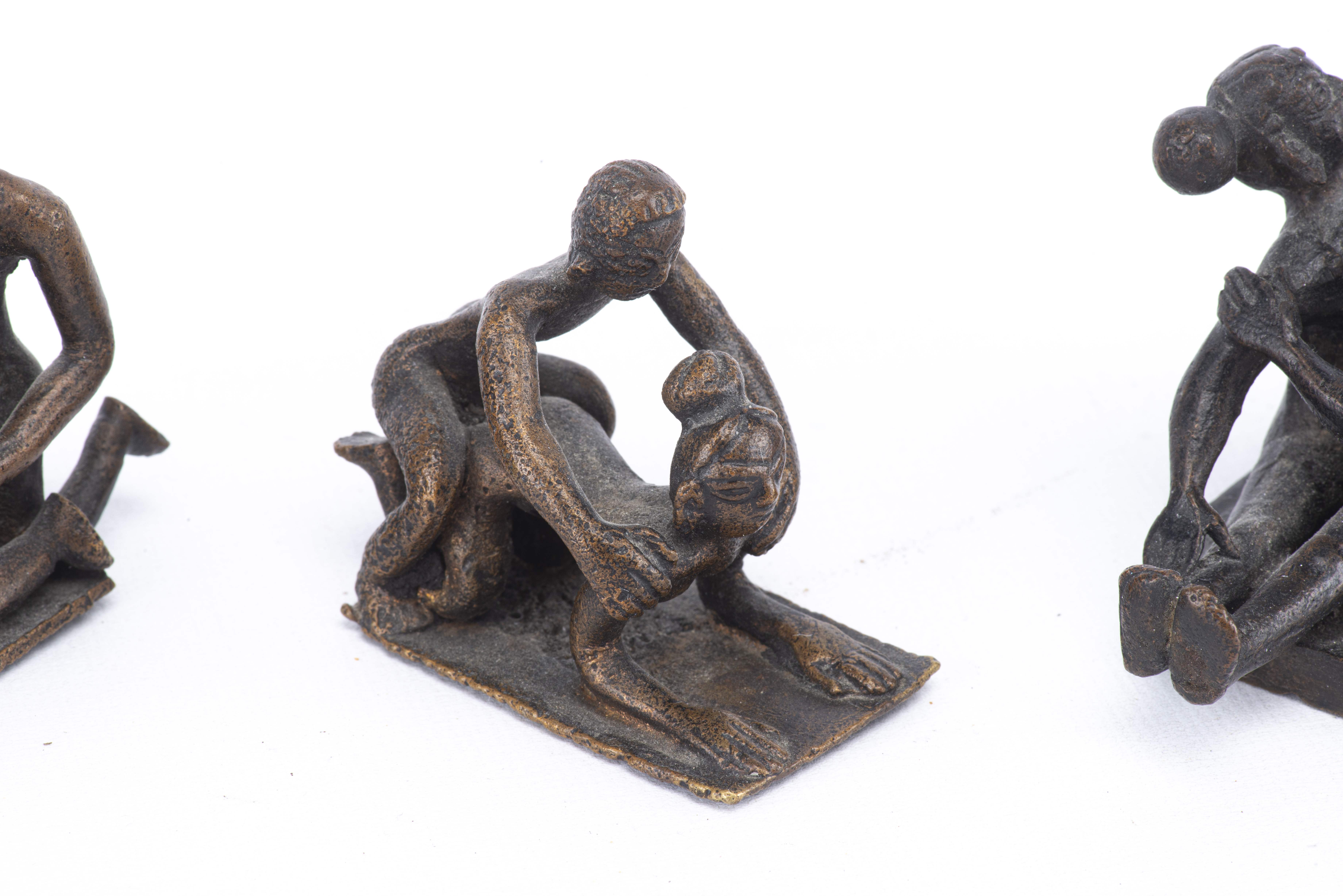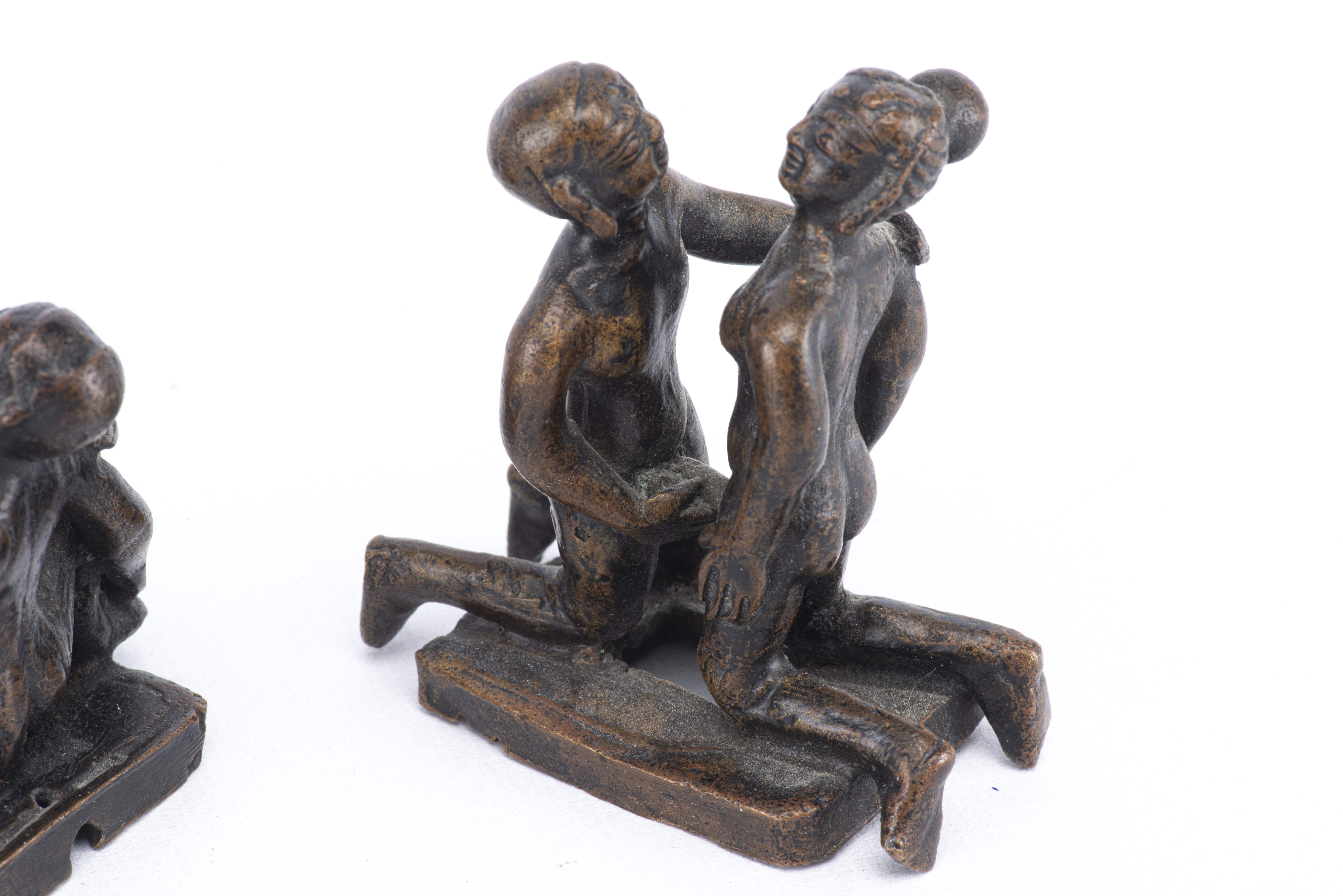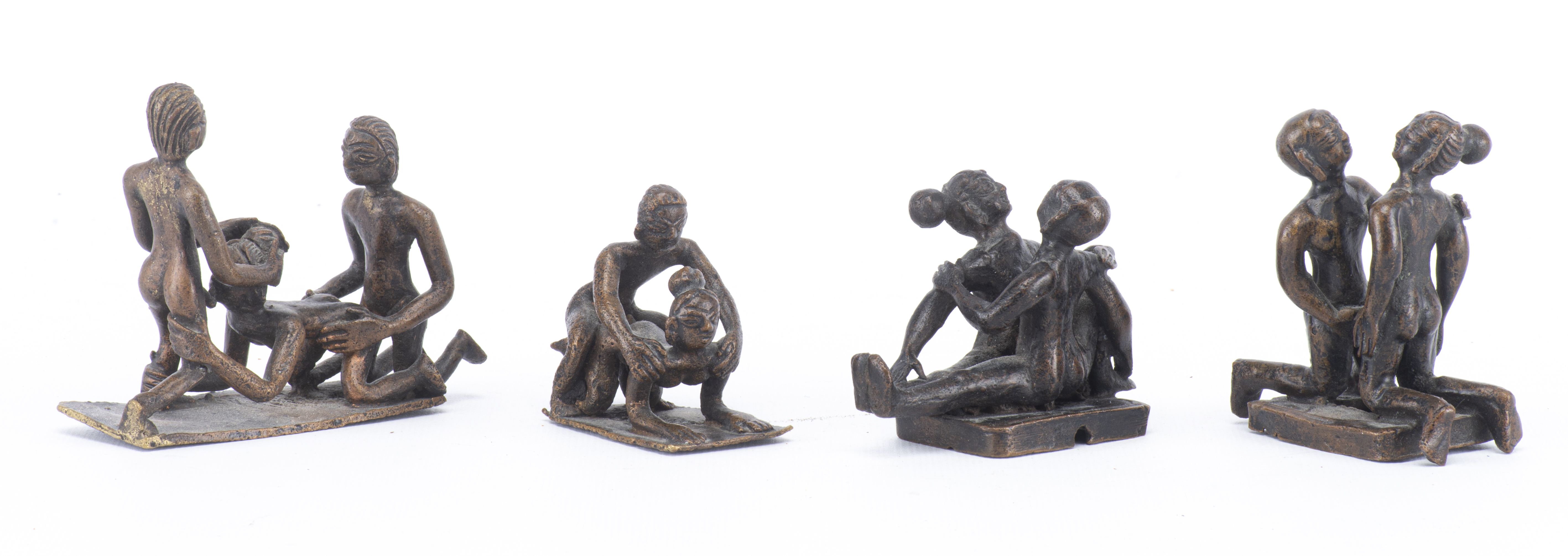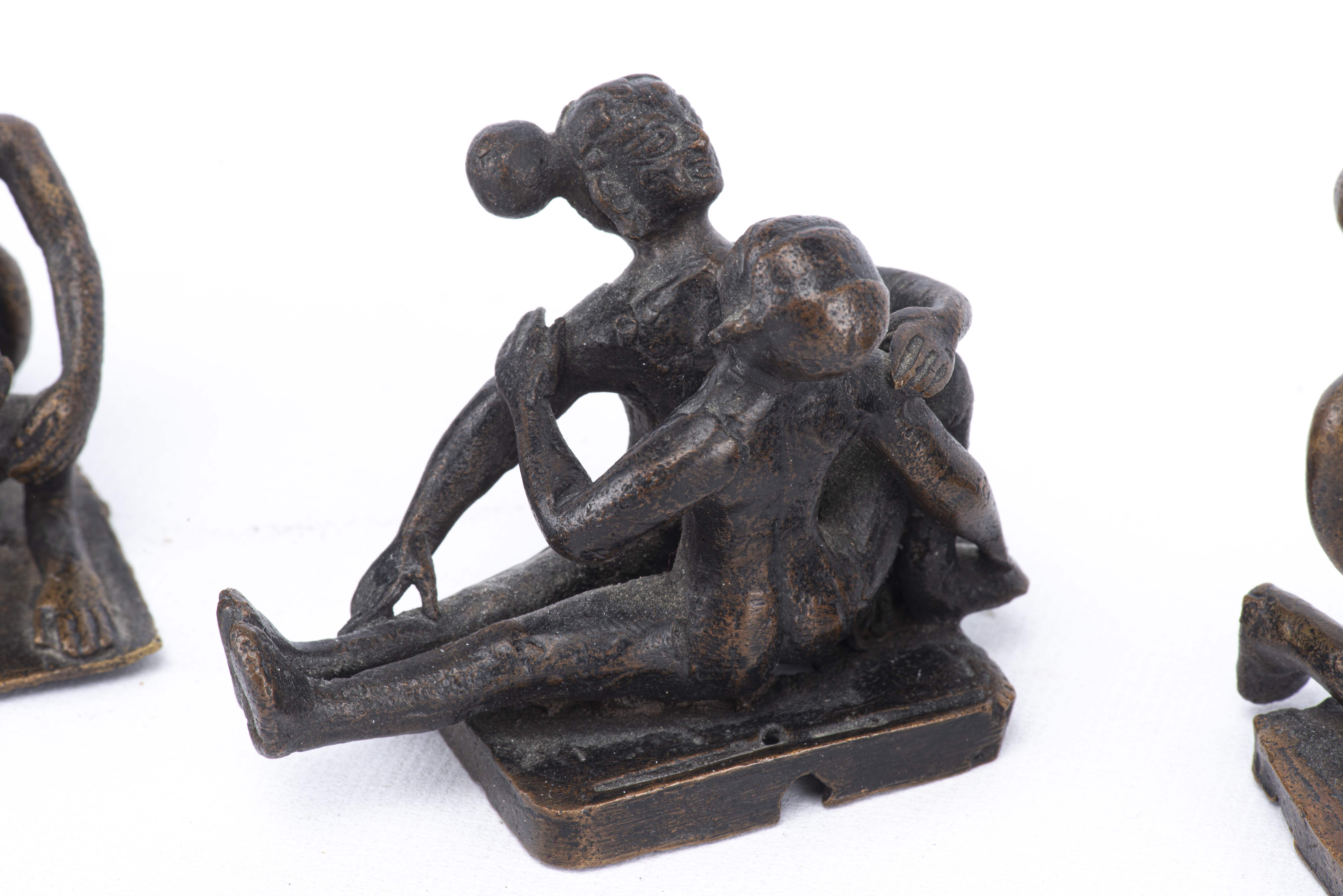Quatre figurines indiennes du Kâma-Sûtra en bronze à patine brune.
