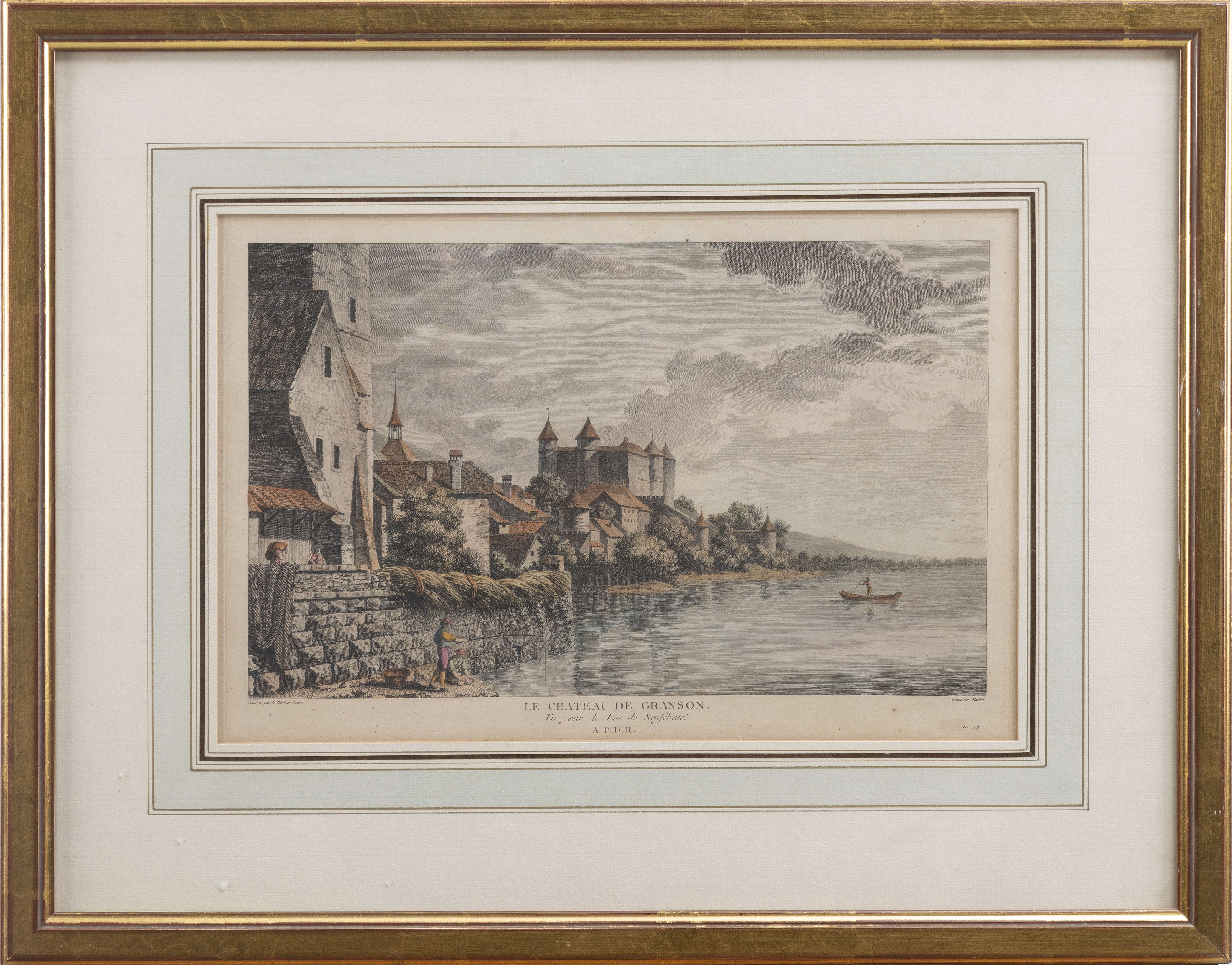 - "Le Château de Granson vu sur le lac de Neuchatel" par Barbier l'Ainé et gravé par Maillet 23x36 cm
