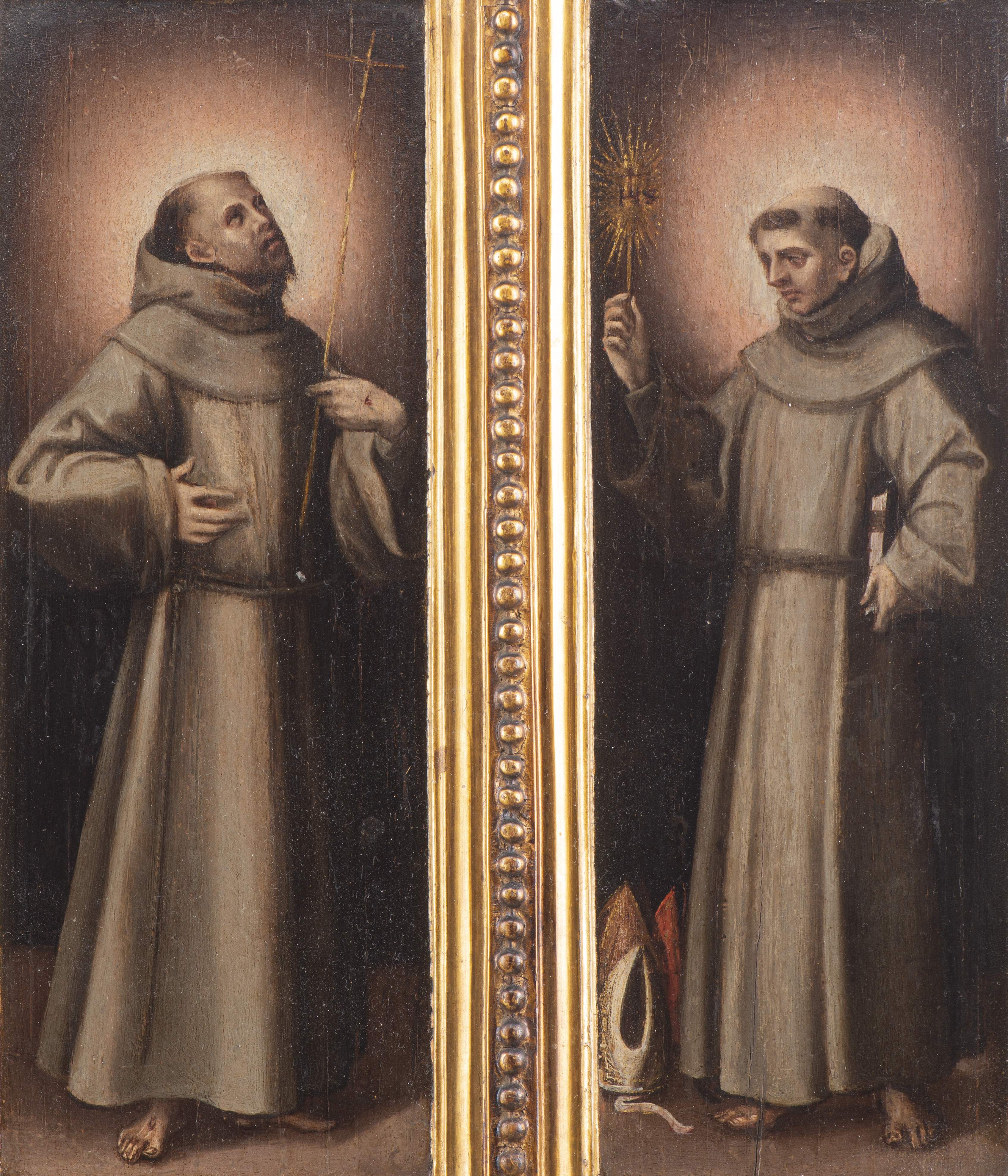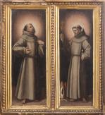 Anonyme, ancien diptyque ou partie de triptyque, "Saint Pierre et Saint Paul", deux huiles sur bois montées dans un cadre, ns.