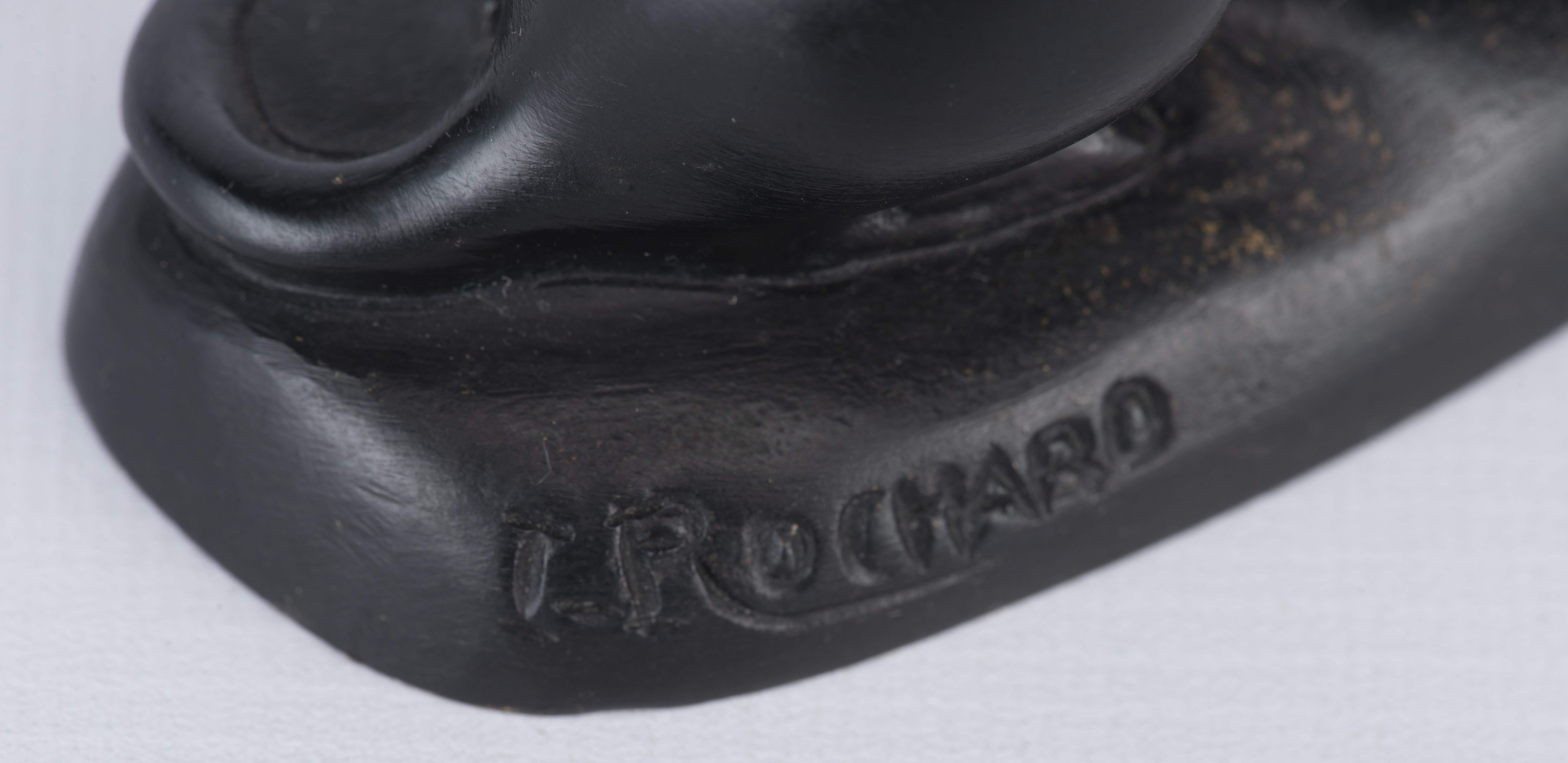 - Irénée ROCHARD (1906-1984), "Basset assis", bronze à patine noire signé sur la base, H. 8.7x9.3x4.5 cm