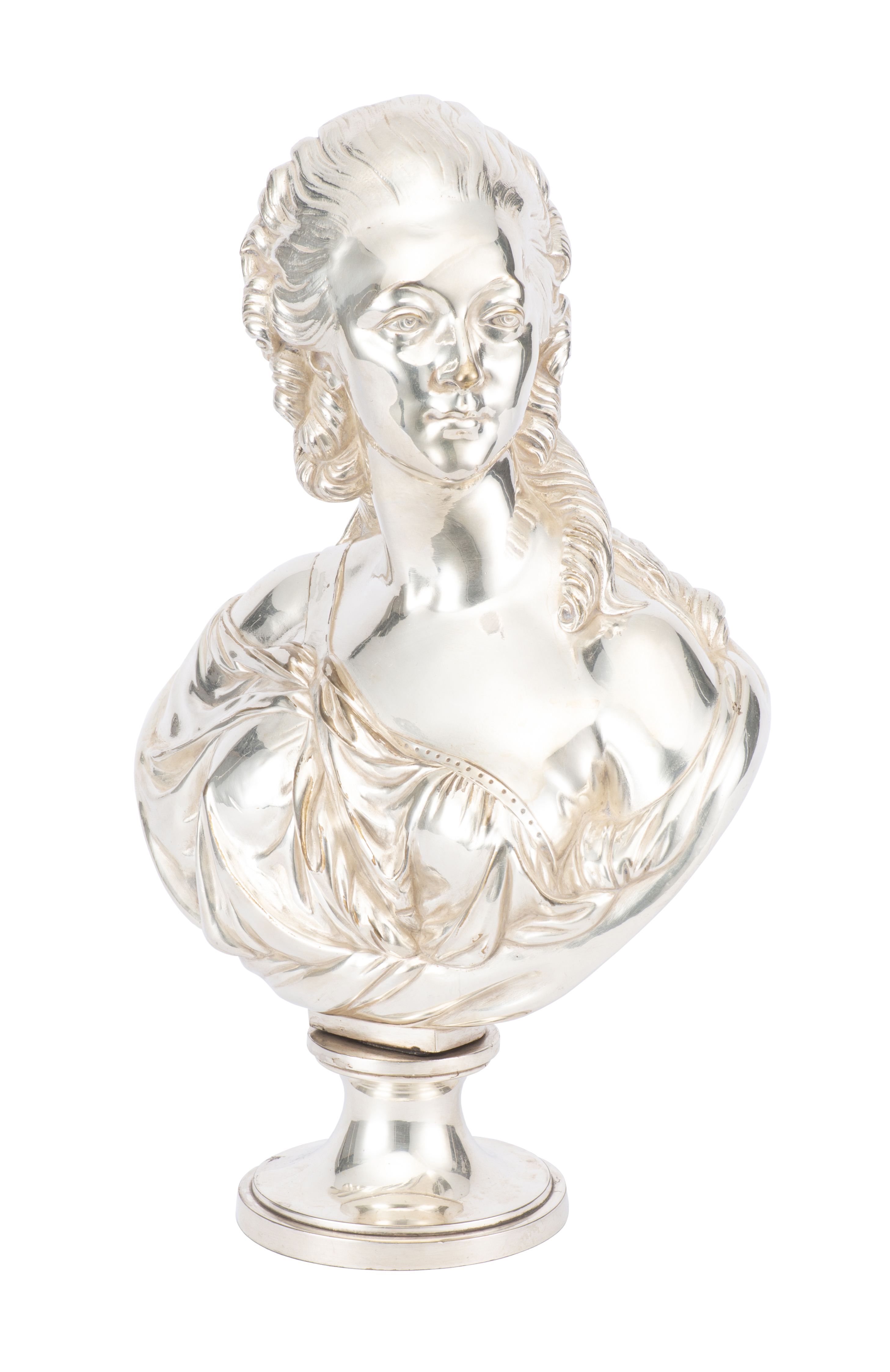 Buste de Madame de Pompadour en métal argenté.