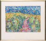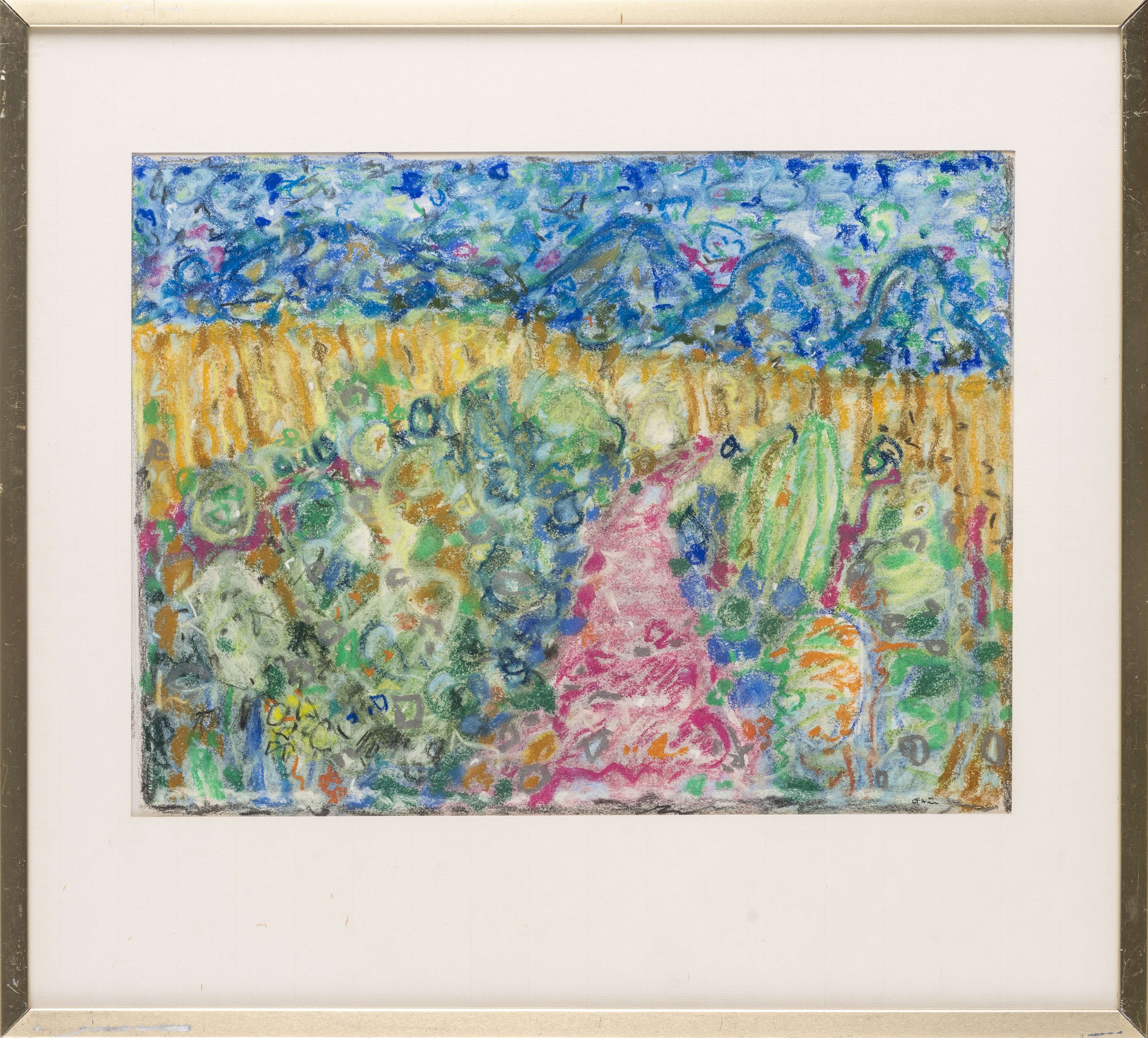Joseph GHIN (1926) "Jardin au chemin rose", pastel sur papier sbd.
