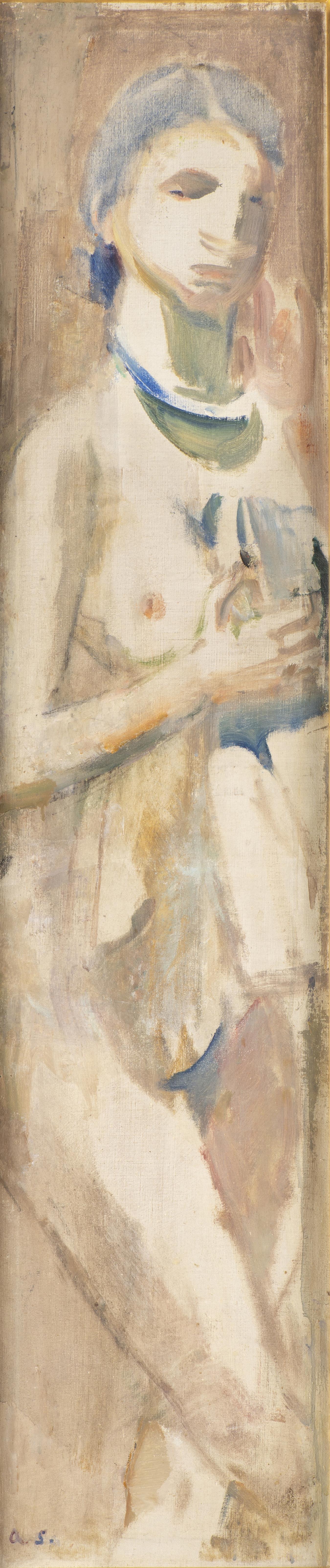 Adolf STRÜBE (1881-1973) "Akt mit Handtuch", huile sur toile, mon bas à droite.