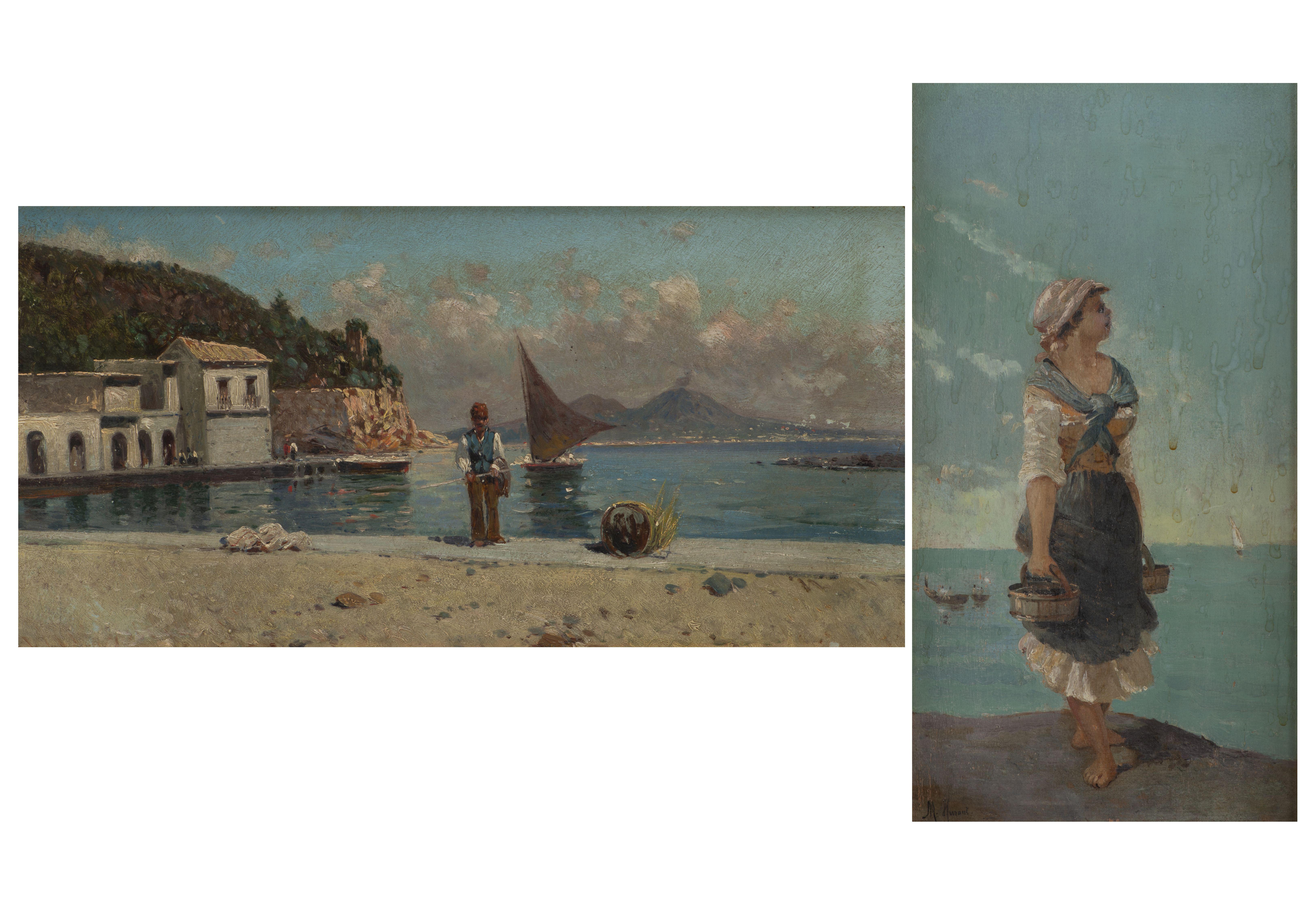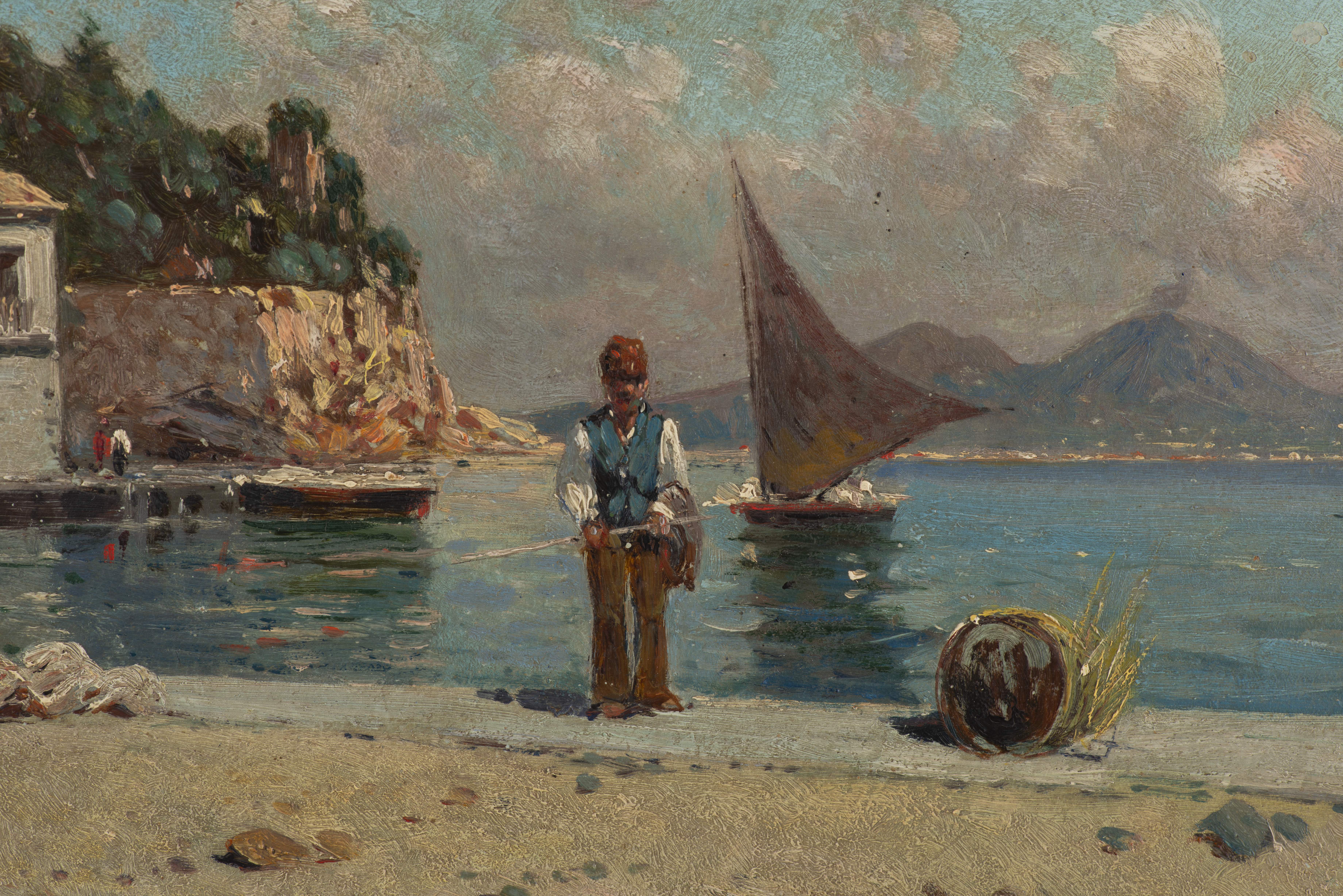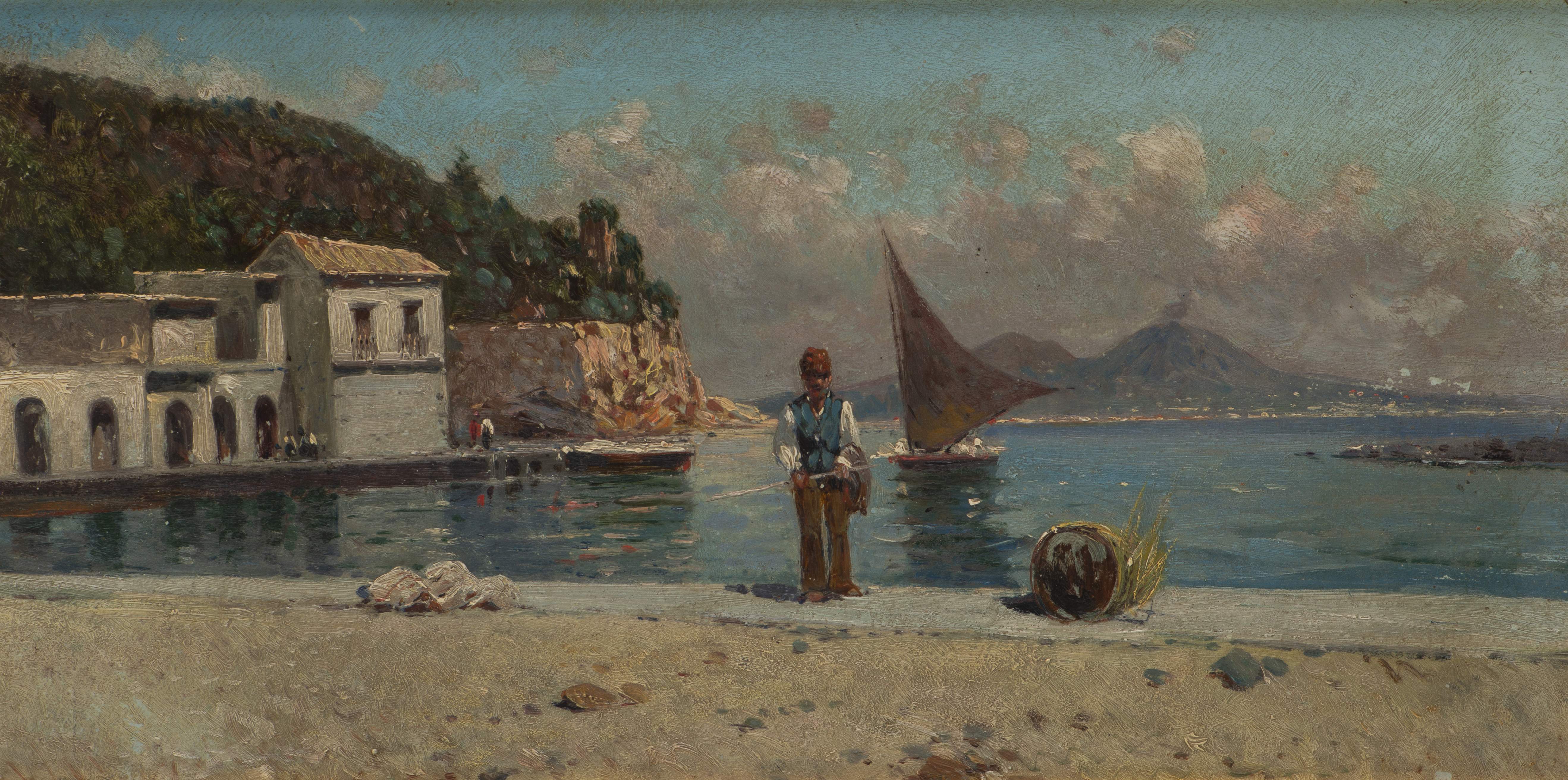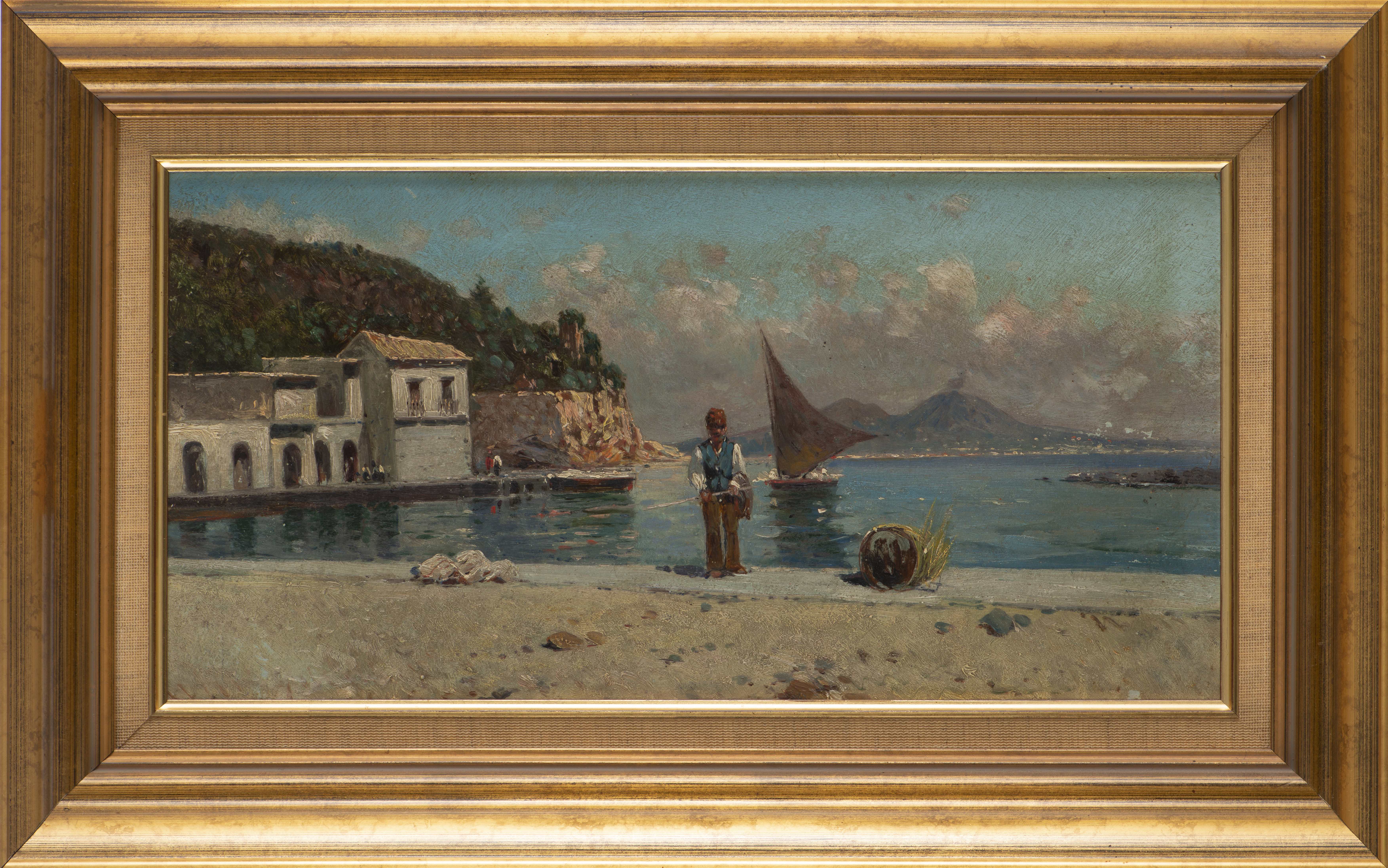 - "Vue du bord de mer dans la baie de Naples", huile sur carton, non signé.
