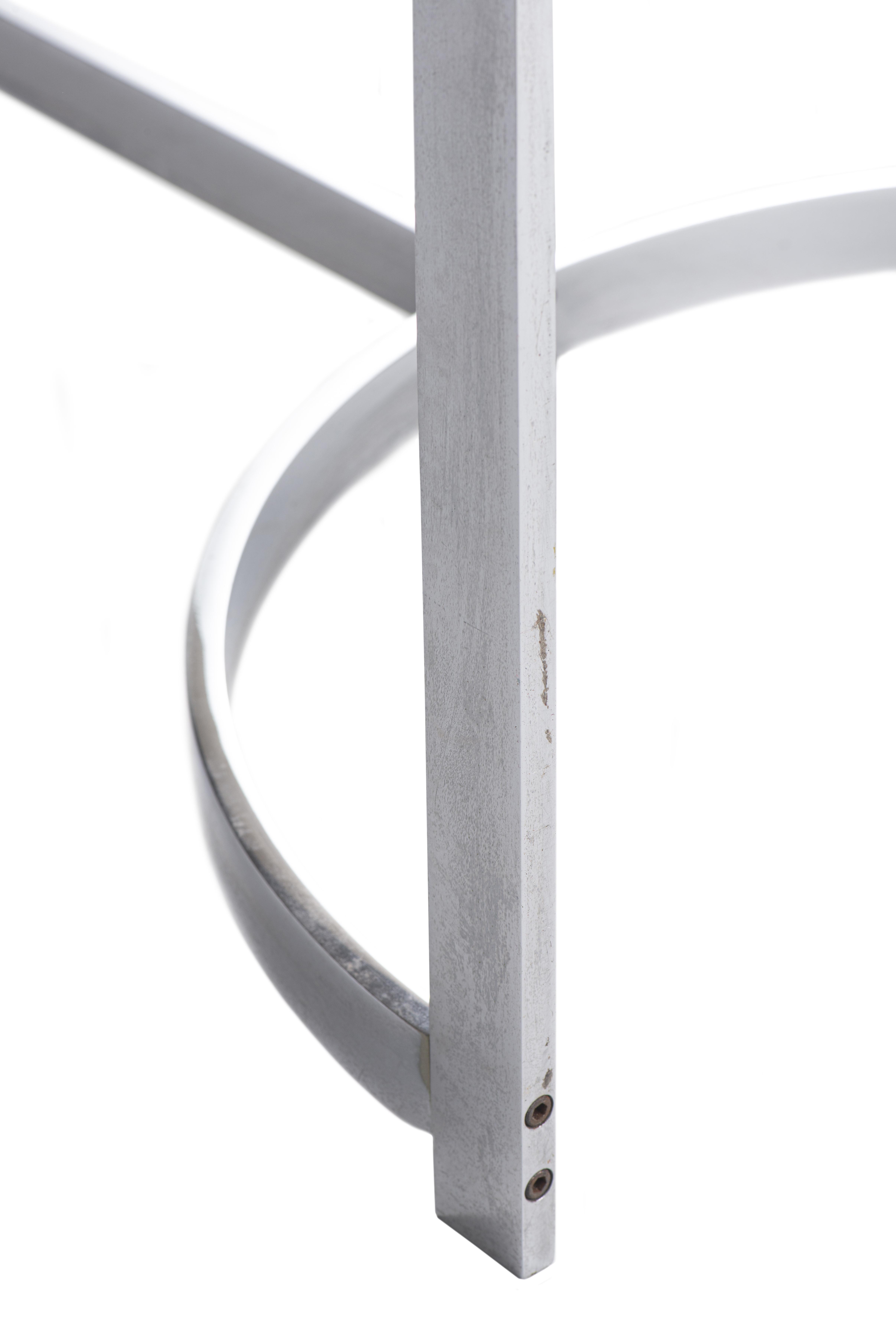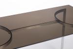 Paul LEGEARD, dans le goût de, table en verre et pied métal à entretoise.