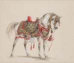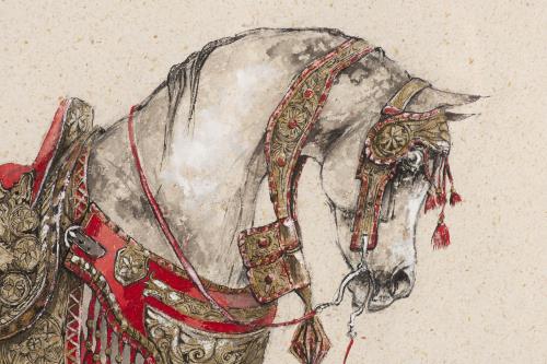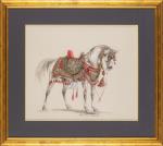 Marine Oussedik (née en 1967) « Tenue d’Apparat », dessin de cheval, encres et couleurs sur papier.