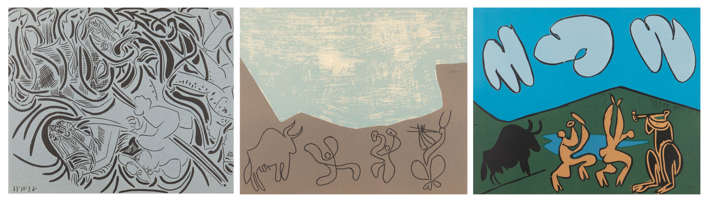 Pablo PICASSO (1881-1973, d'après), trois linogravures :