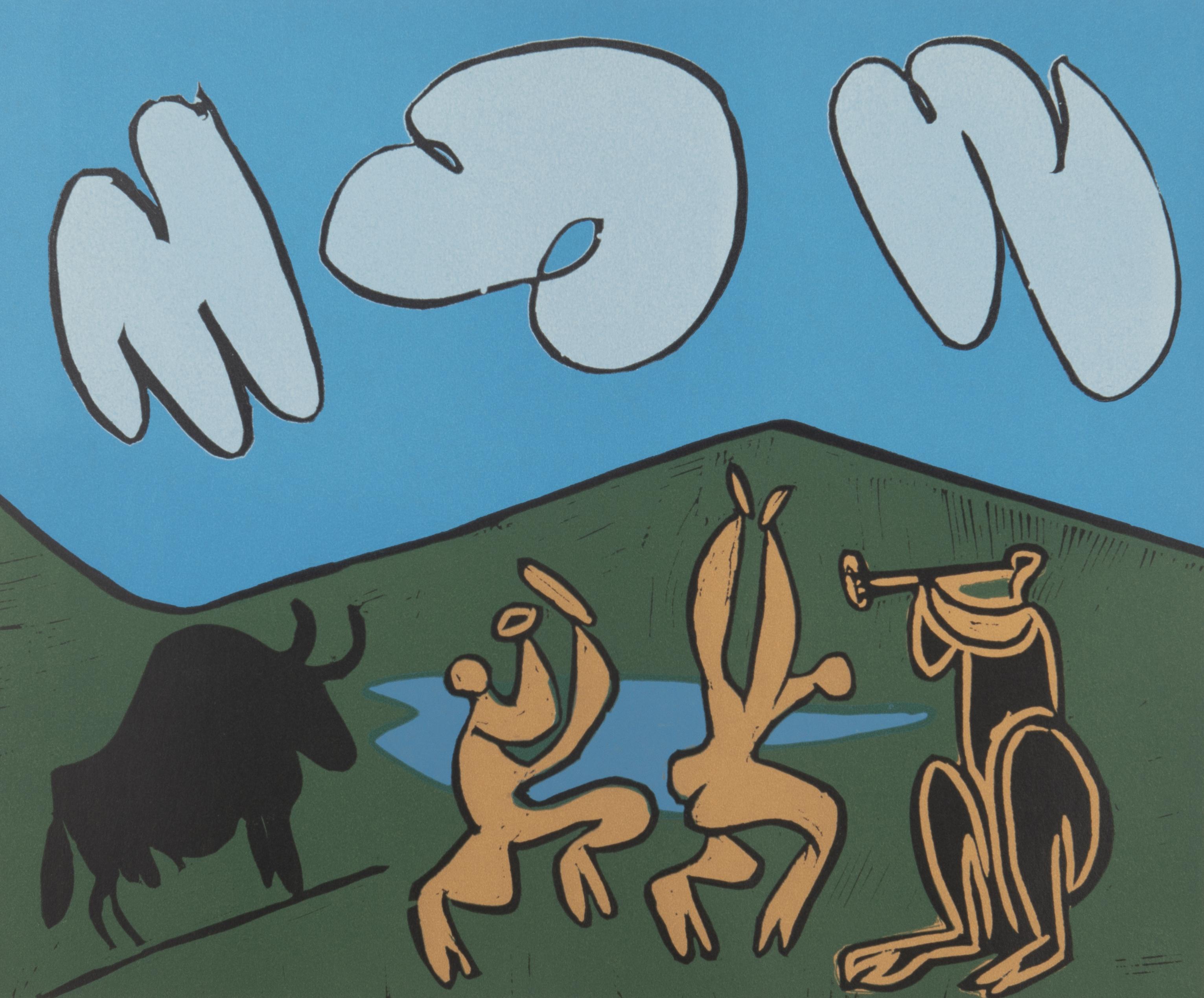 - "Bacchanale au taureau noir", linogravure, édition le Cercle d'art, 1959.