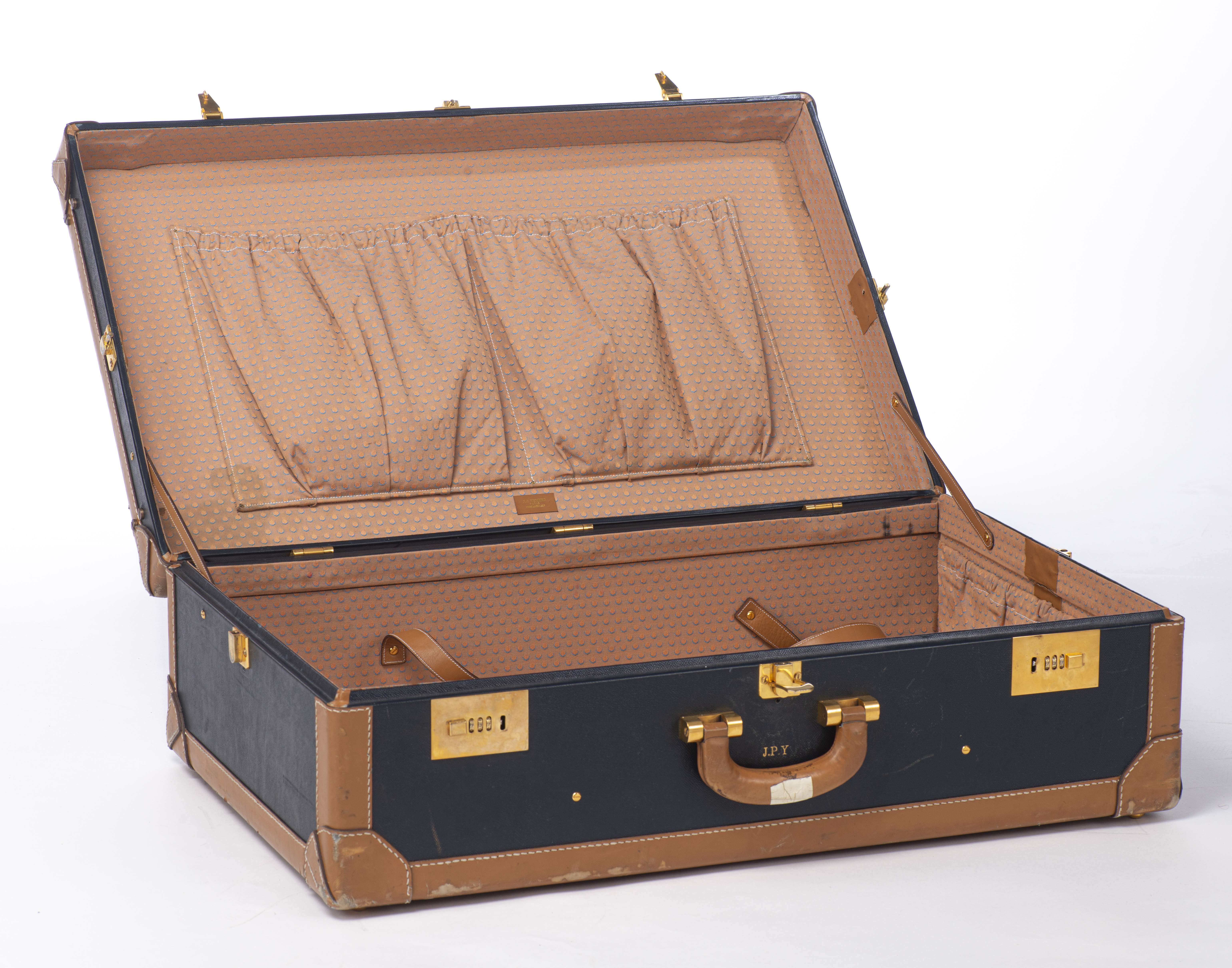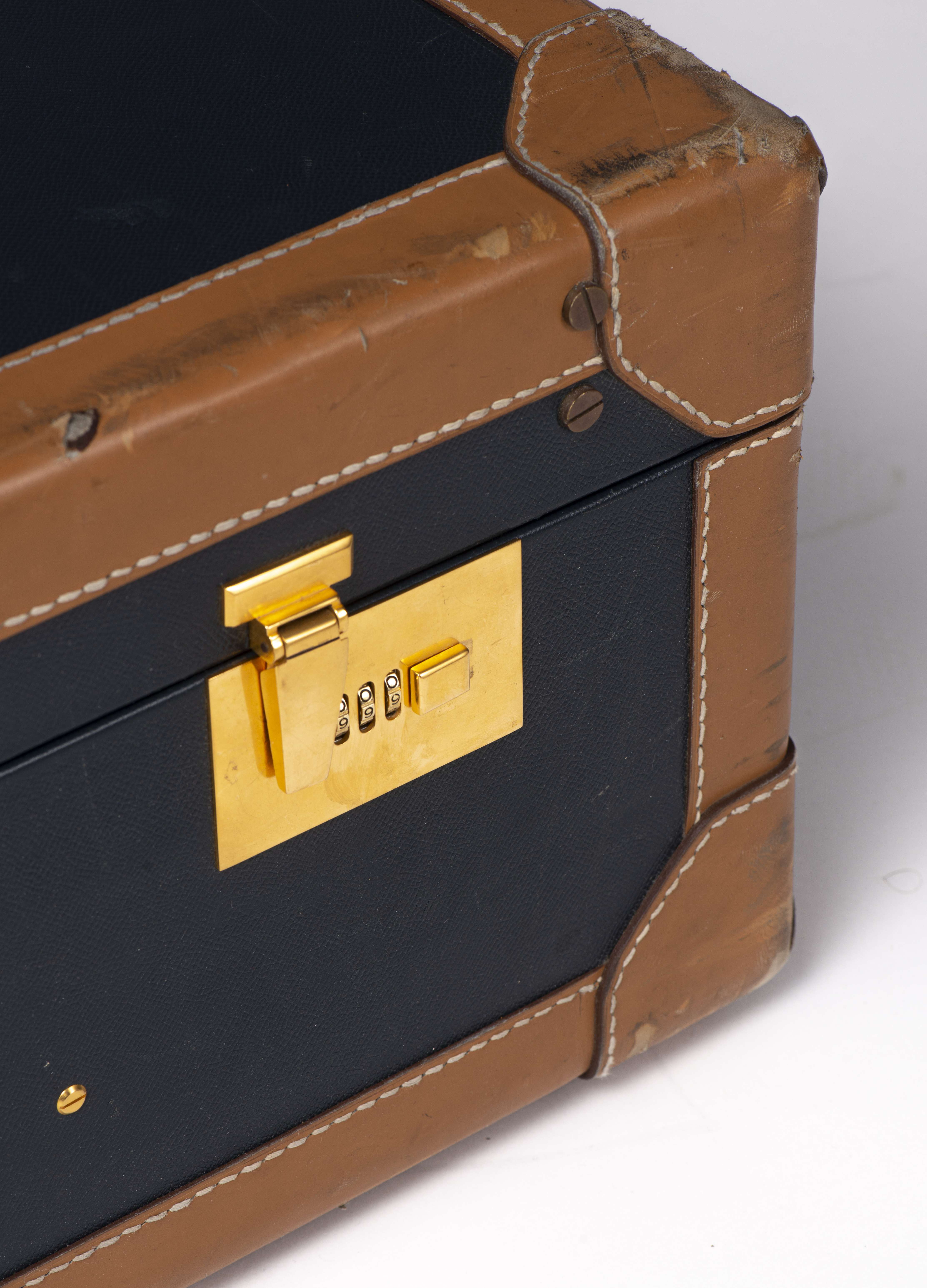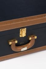 J.P. Renard valise en dur en cuir noir avec pourtour en brun.
