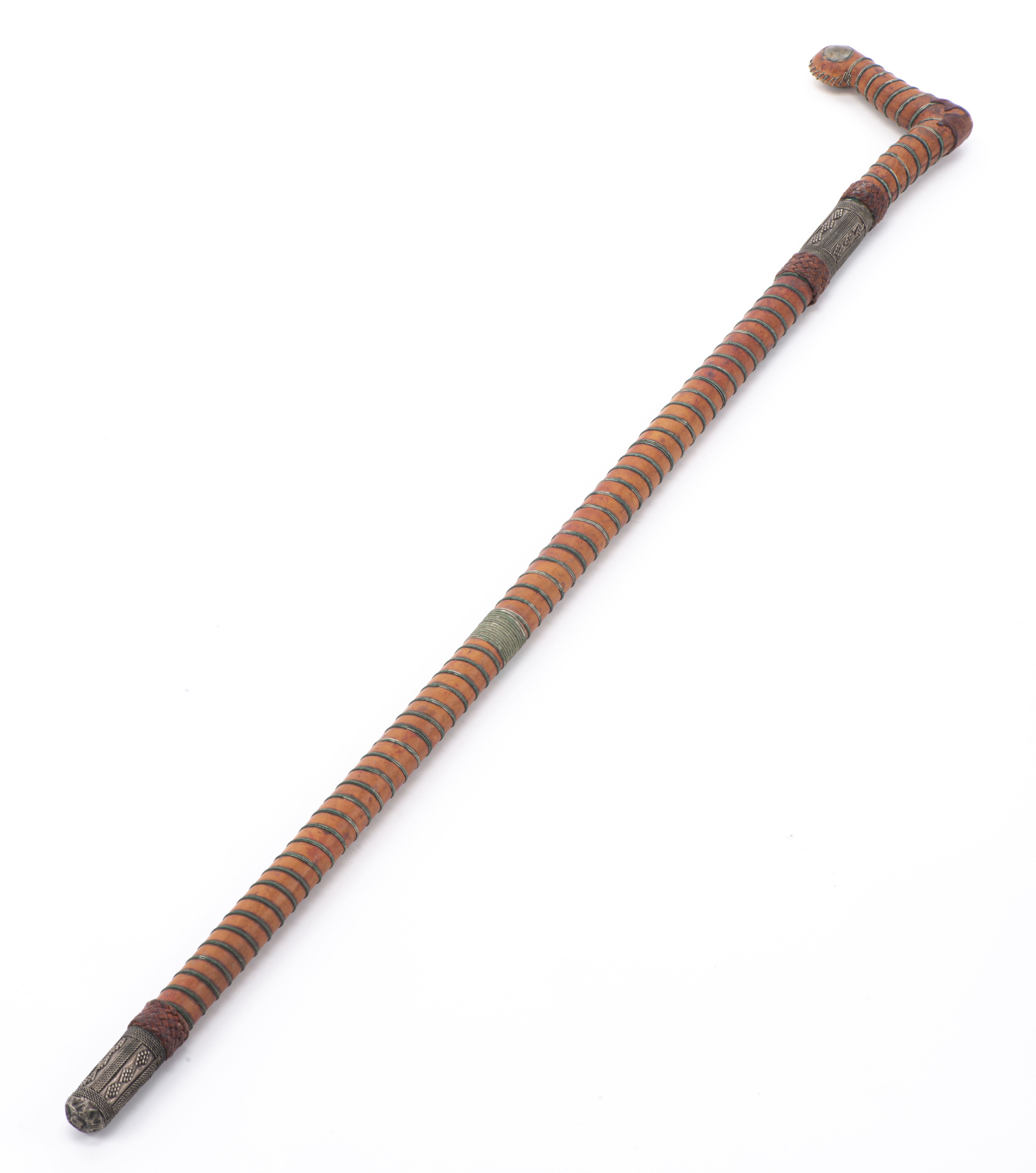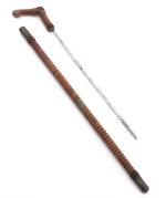Canne épée gainée de cuir avec décor en métal dans le goût anglais, Moyen Orient.