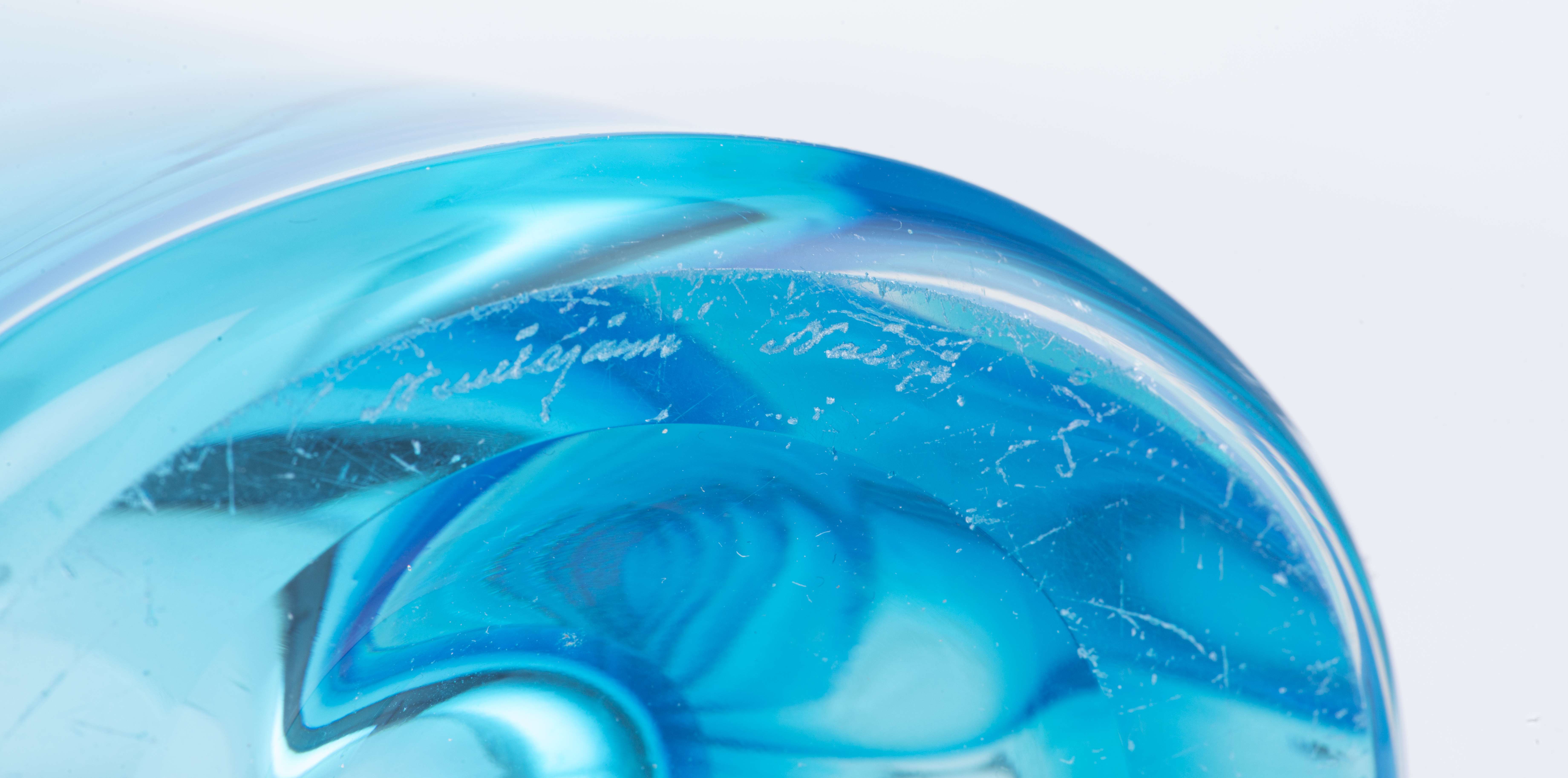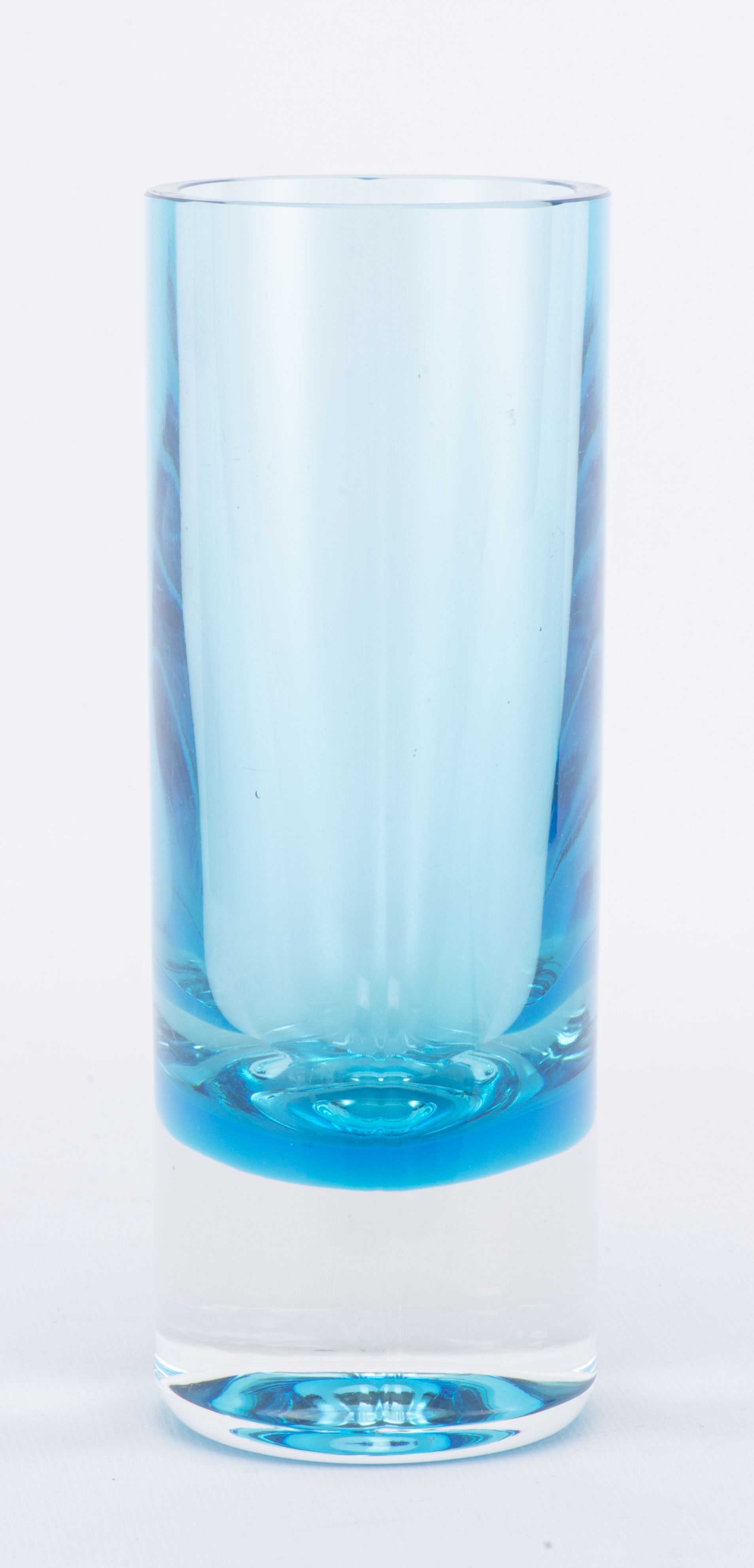 Kaj FRANCK (1911-1989), vase tube en verre bicolore bleu et blanc, signé sous la base, édité par Nuutajärvi, Notsjö, Finlande.