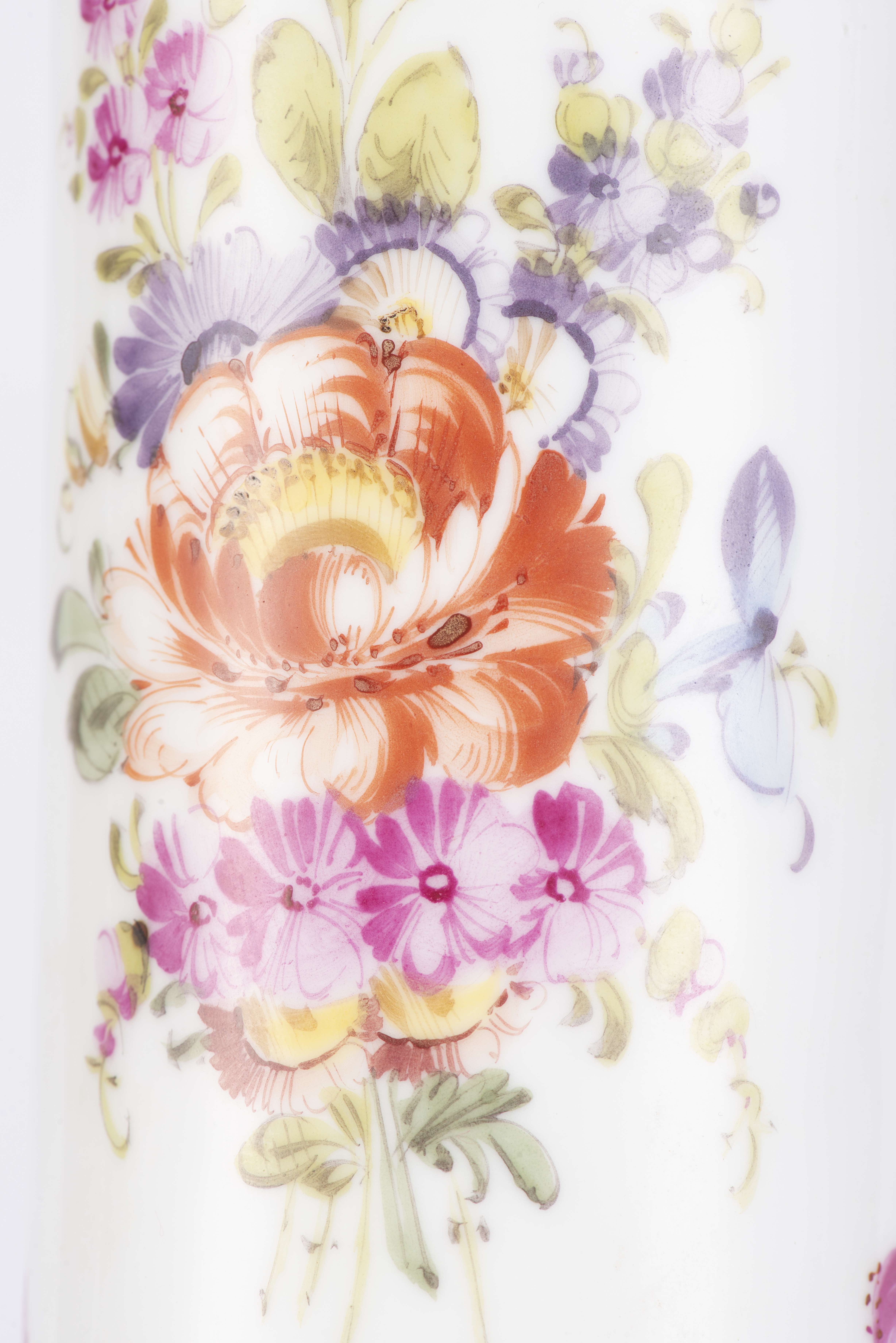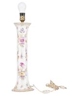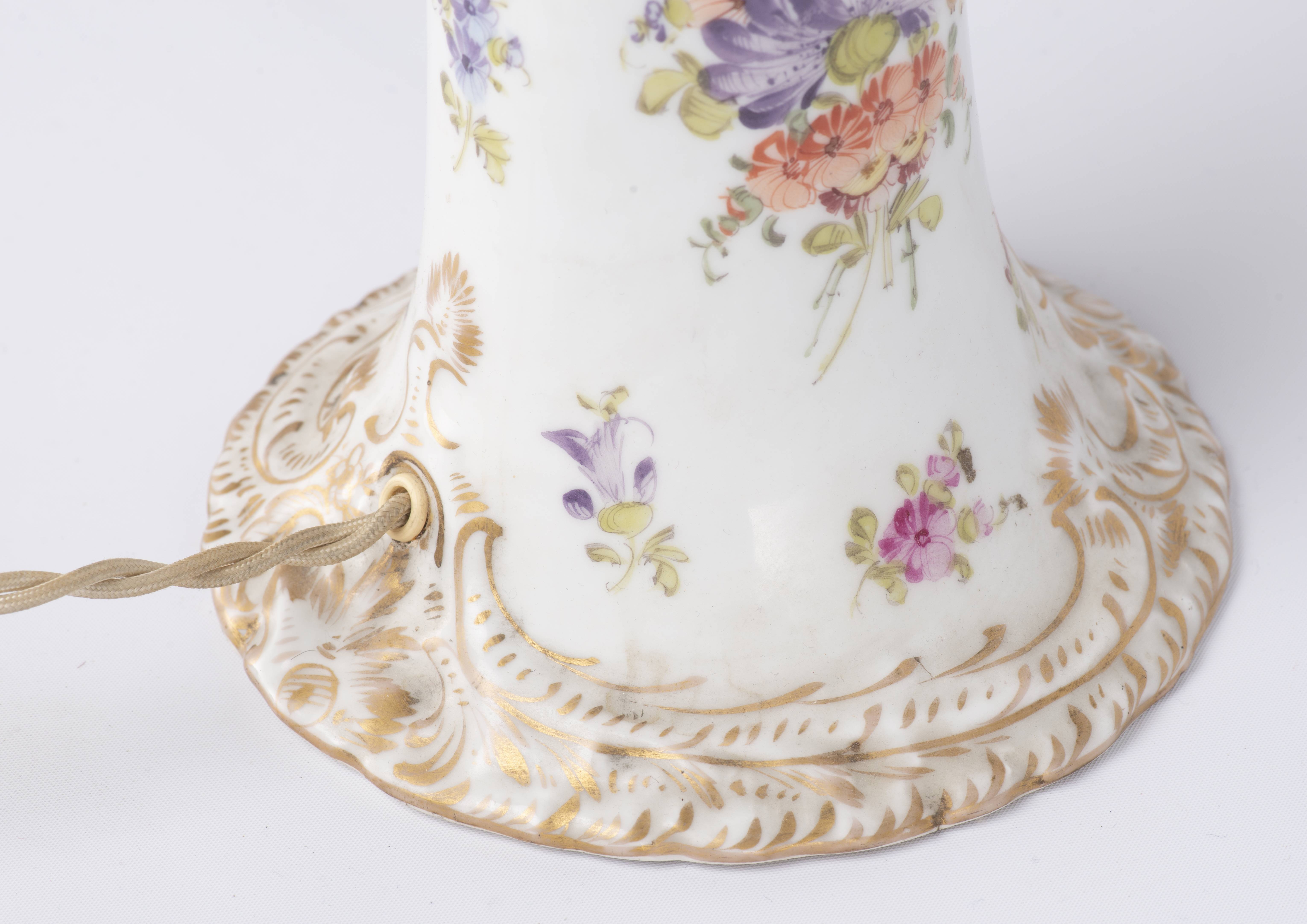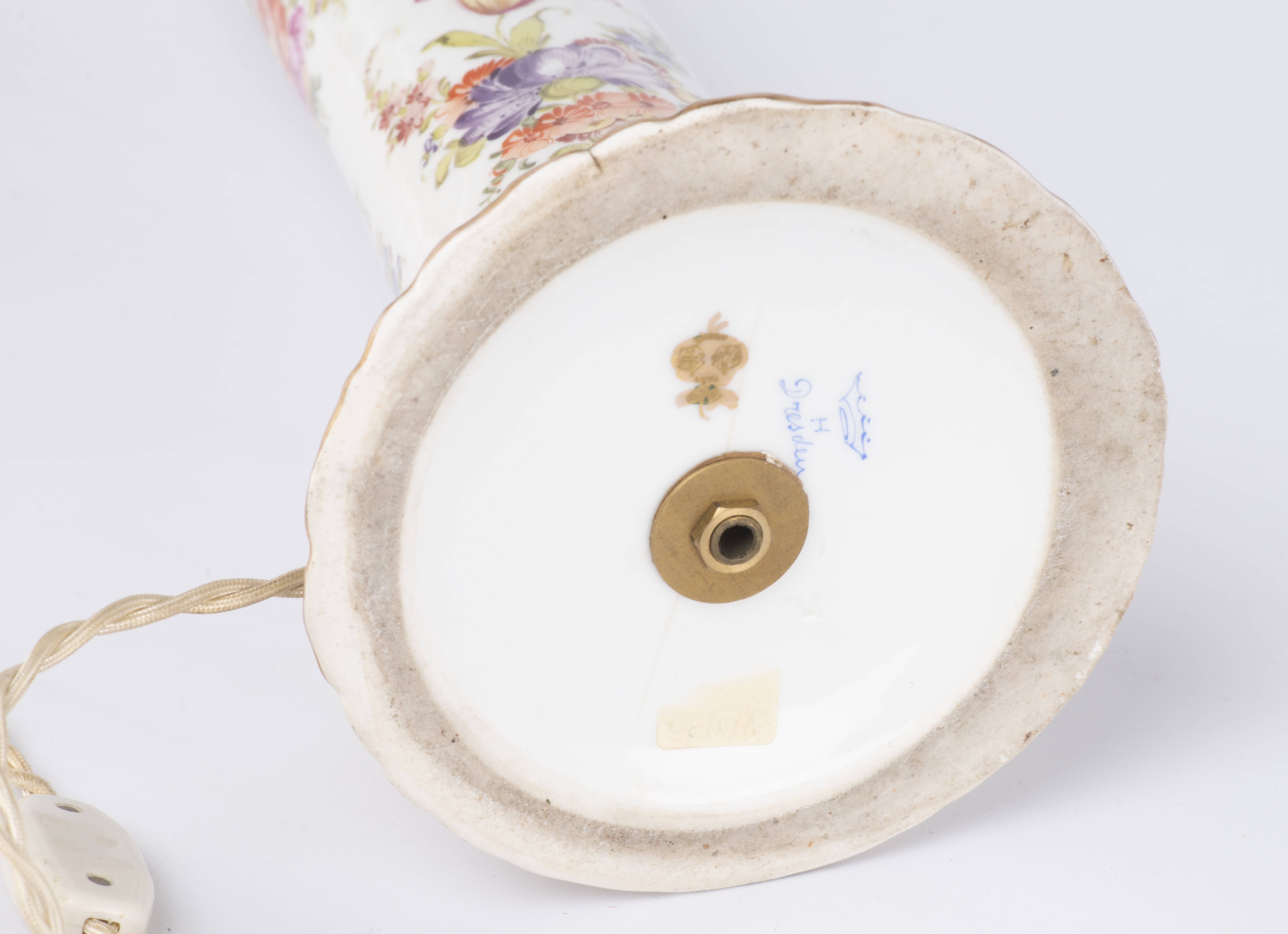 Pied de lampe en porcelaine de Dresden à décor de fleurs et bordures à rehaut d'or