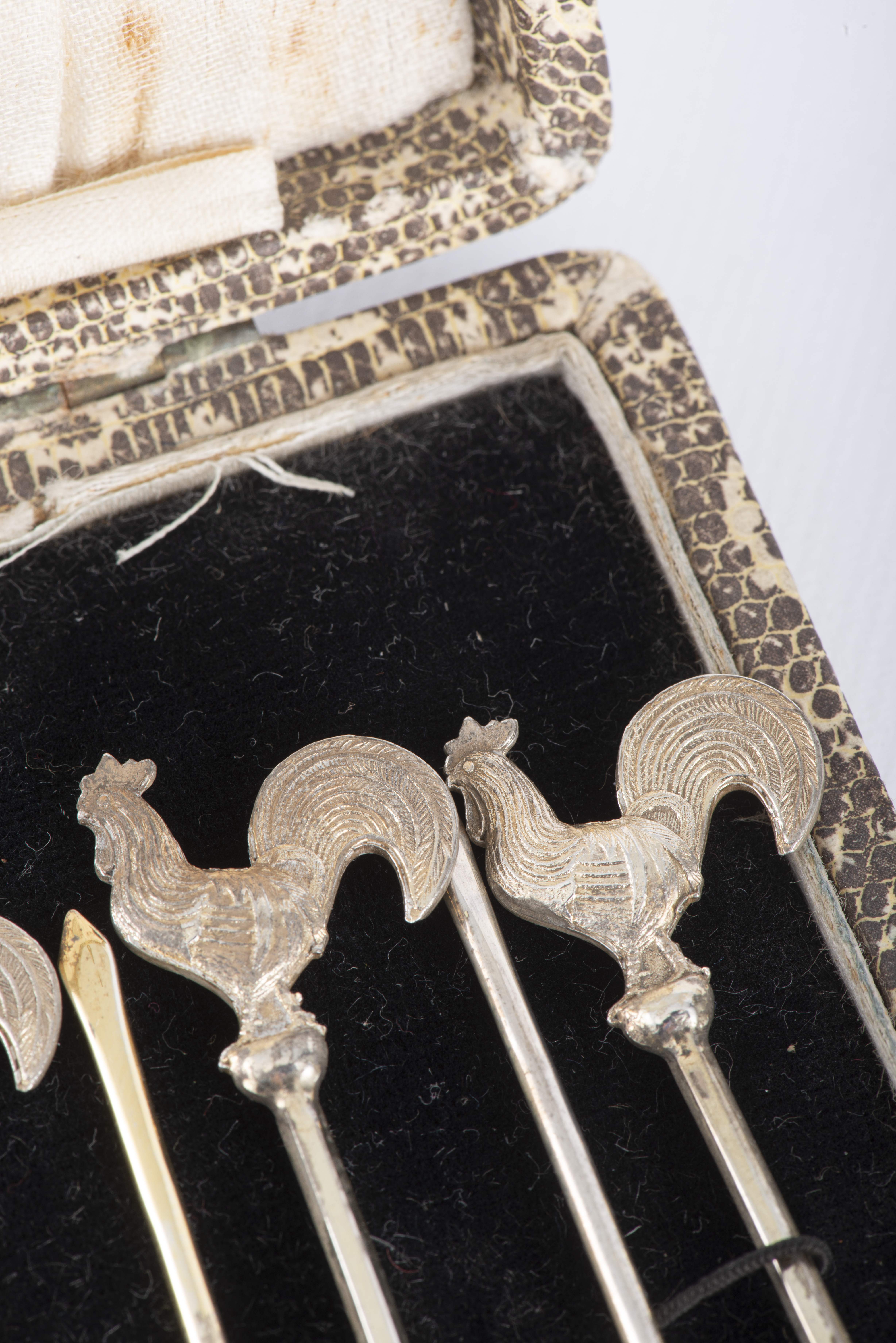 Douze piques à apéritif en argent .925 vermeil surmontés d'un coq.