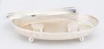 Christofle, chauffe-plat ovale en métal argenté reposant sur 4 pieds boule.