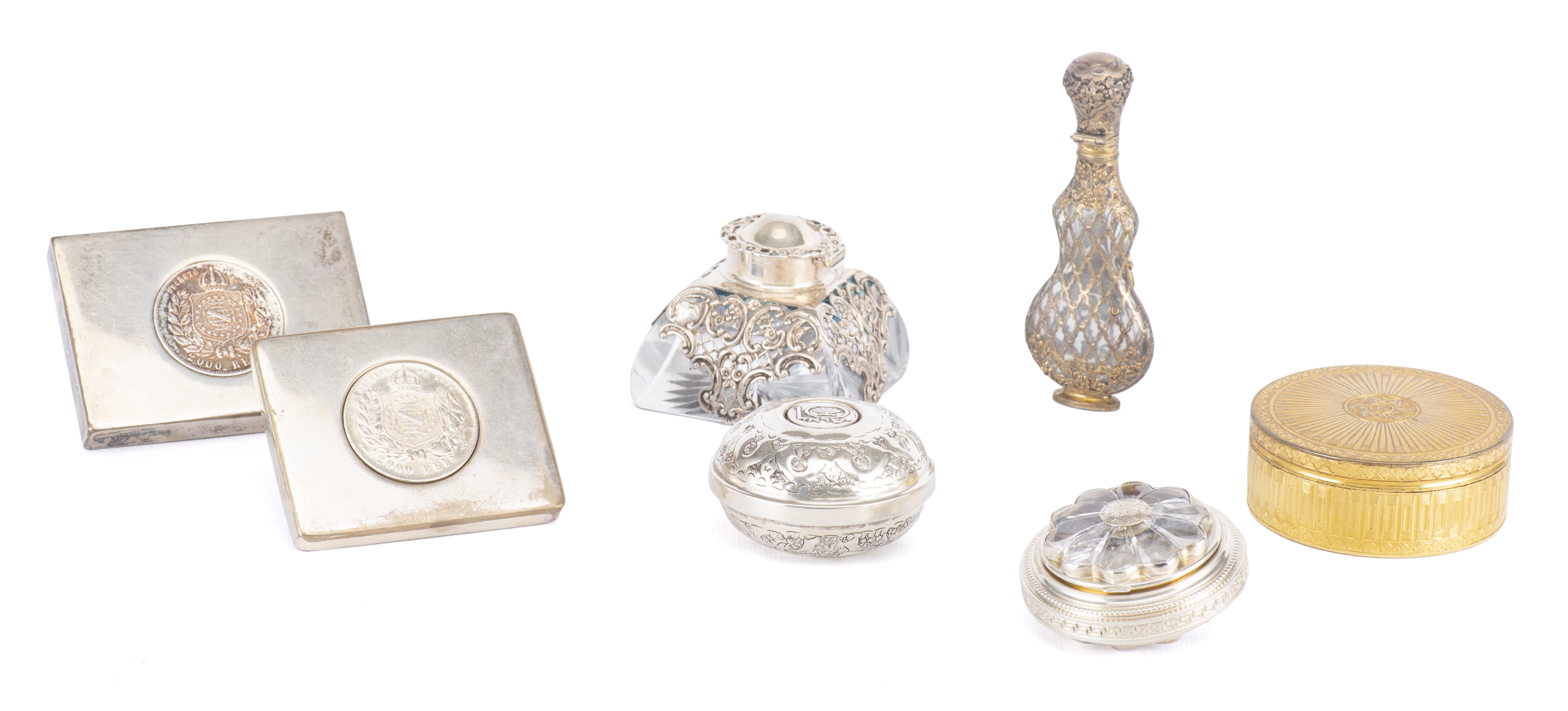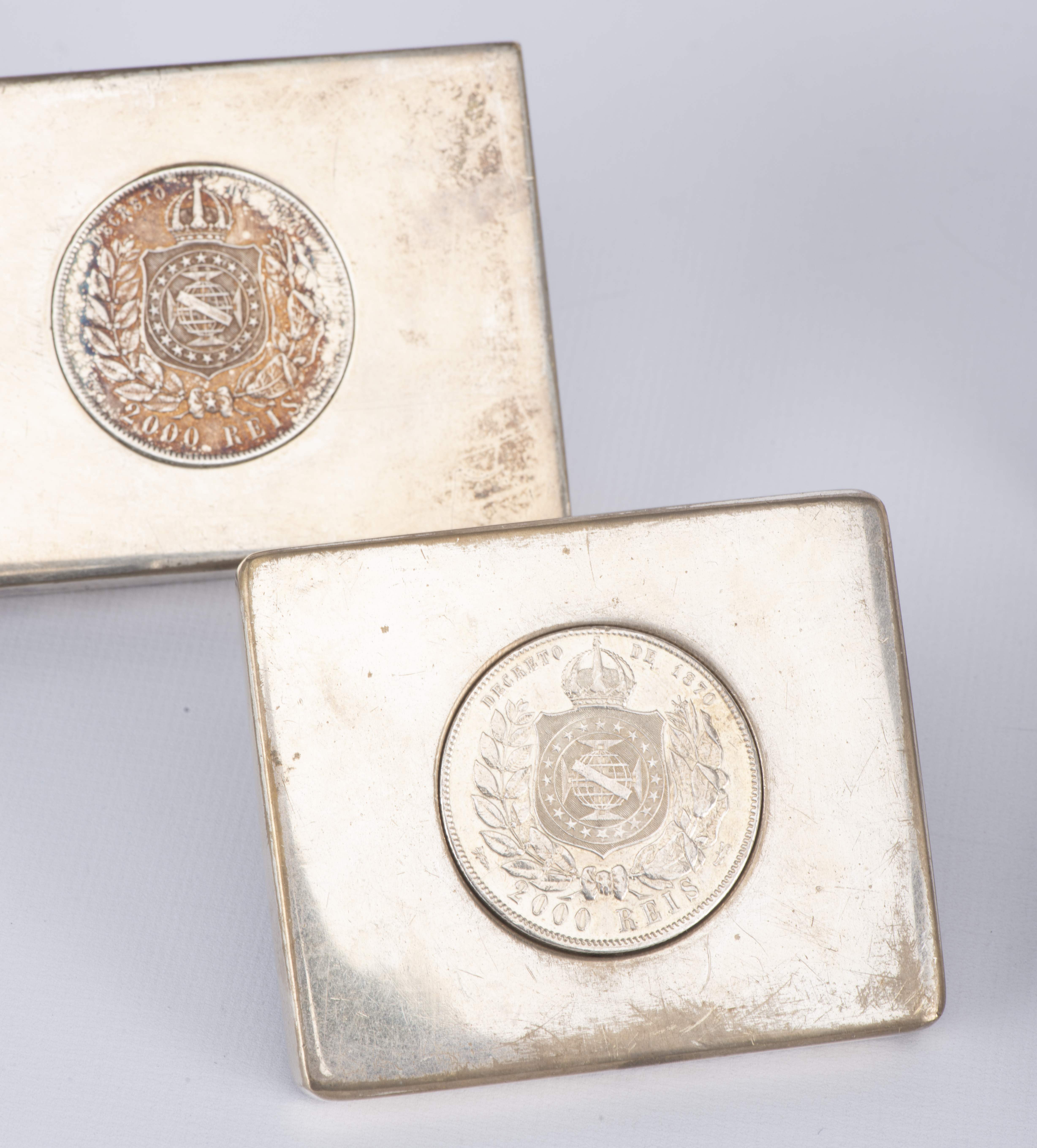 - 2 presse-papiers en métal avec pièces en argent. H. 1.2x8.2x6.3 cm & 1x7.5x6.3 cm