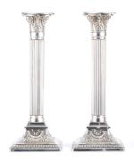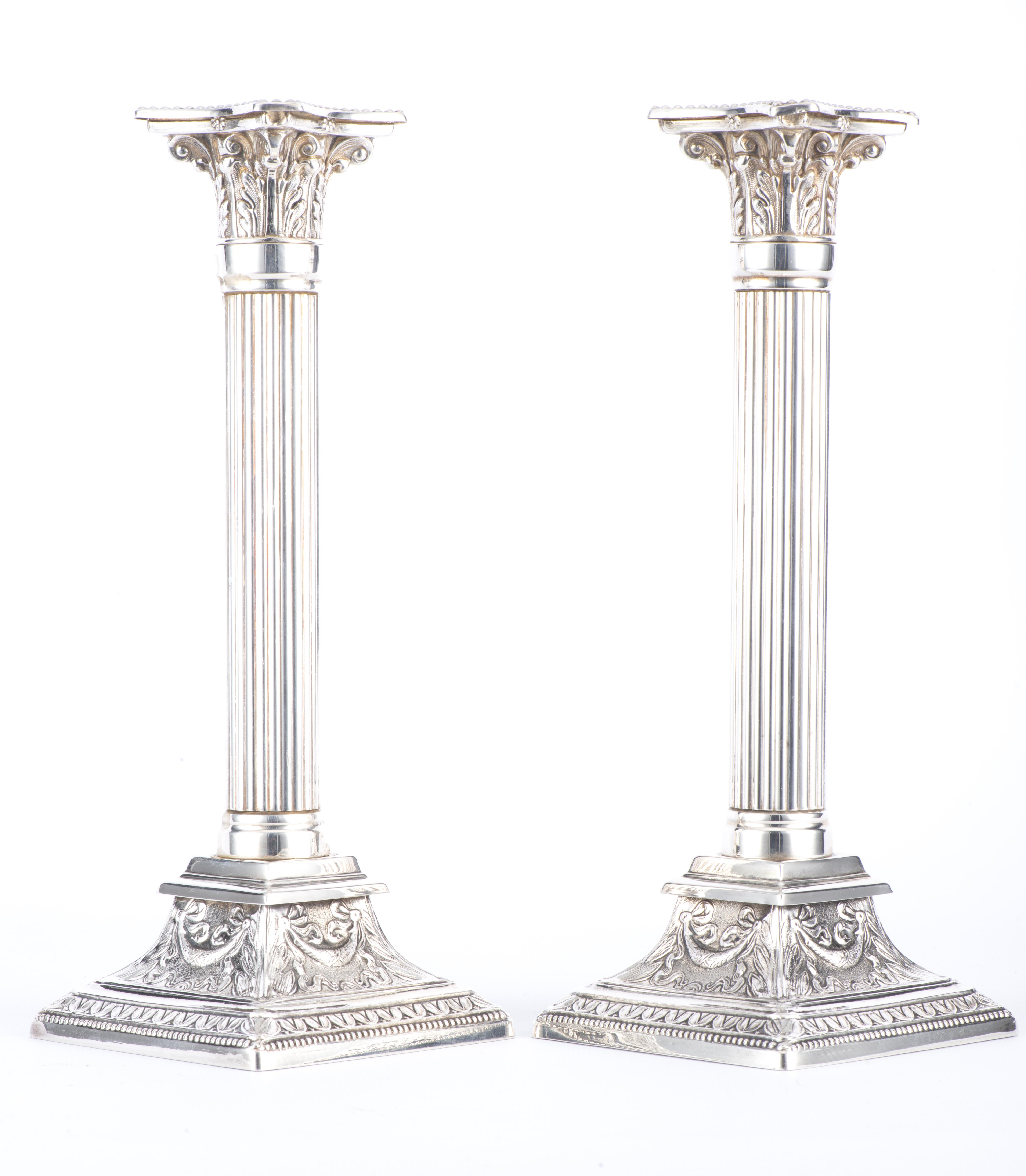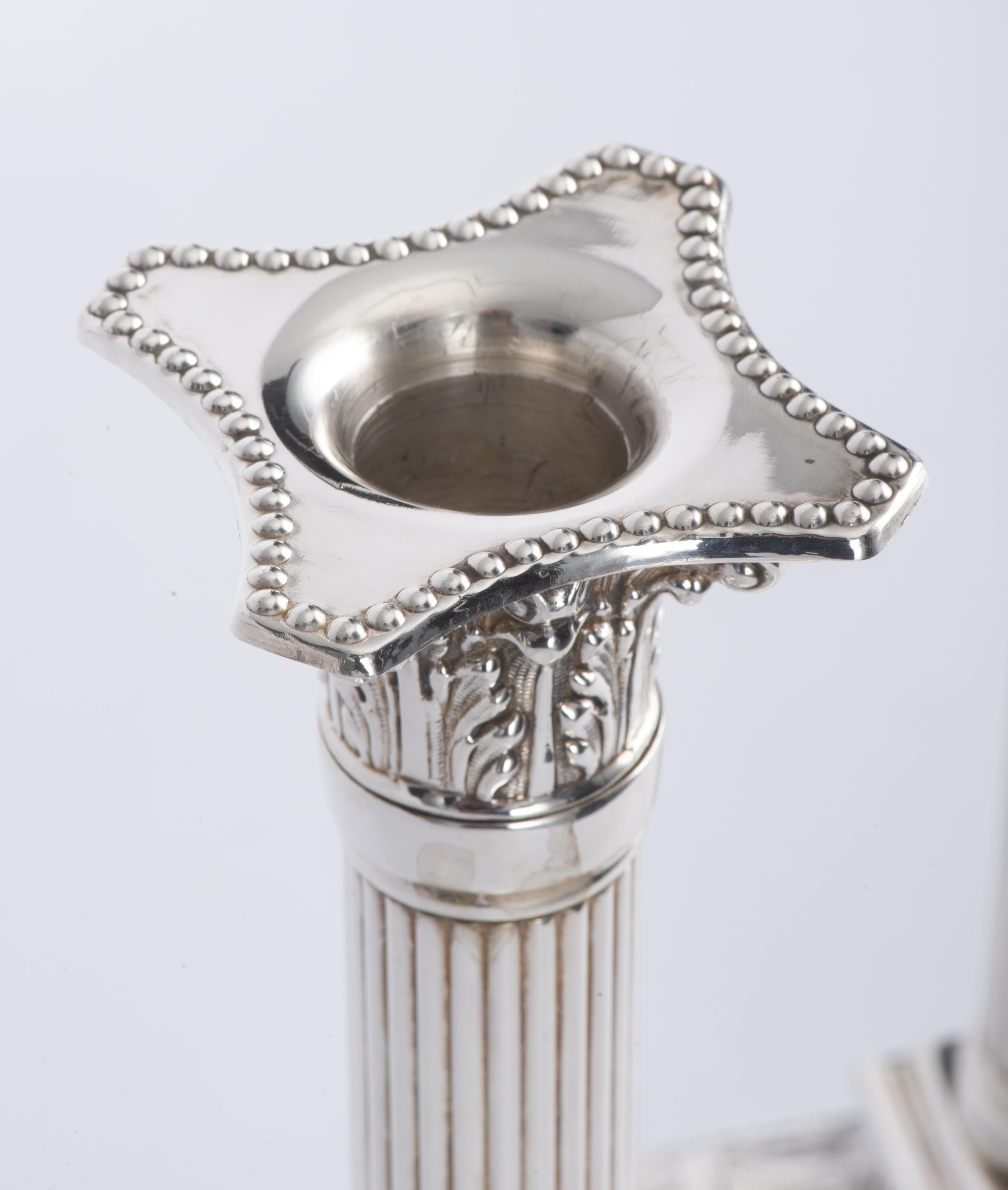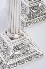 Paire de bougeoirs en argent .925 à colonne cannelée à chapiteau corinthien.