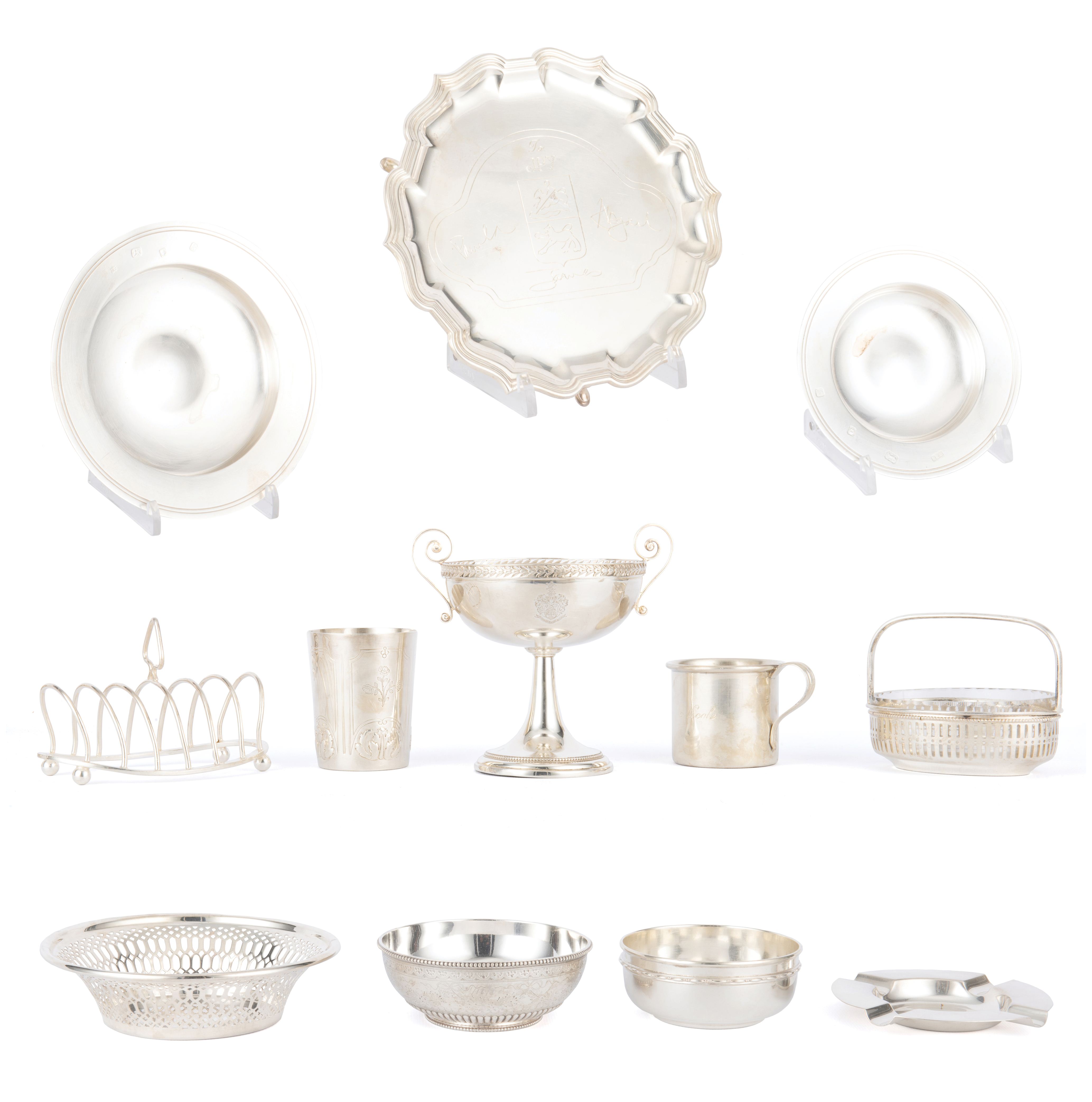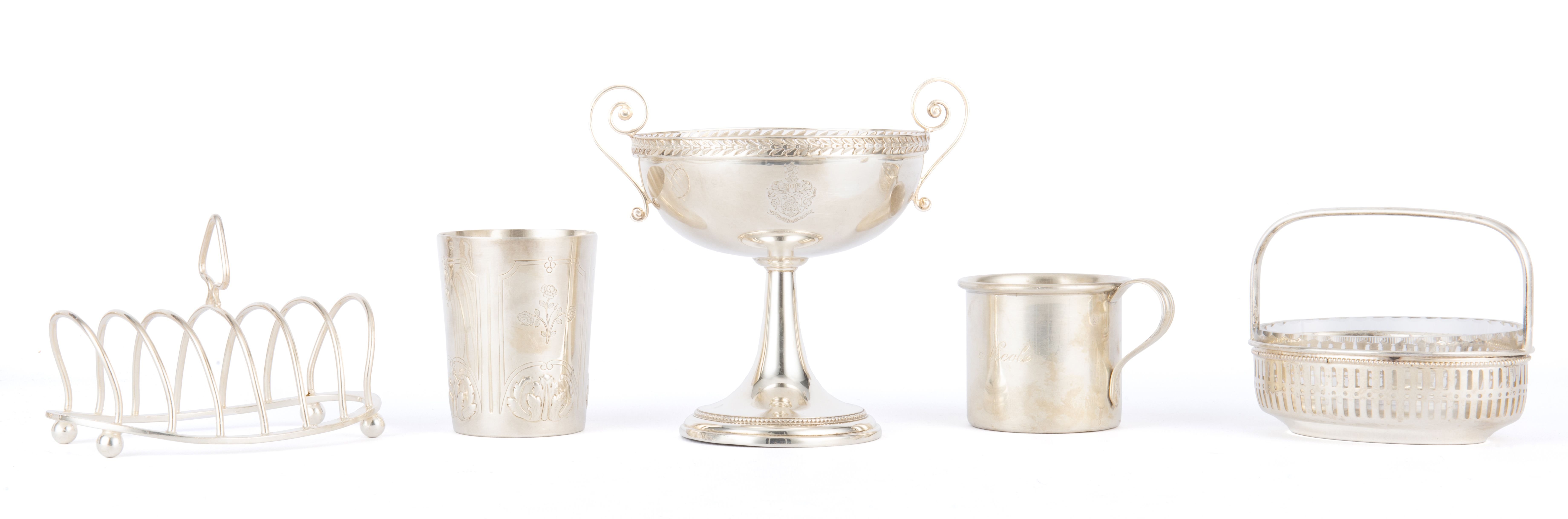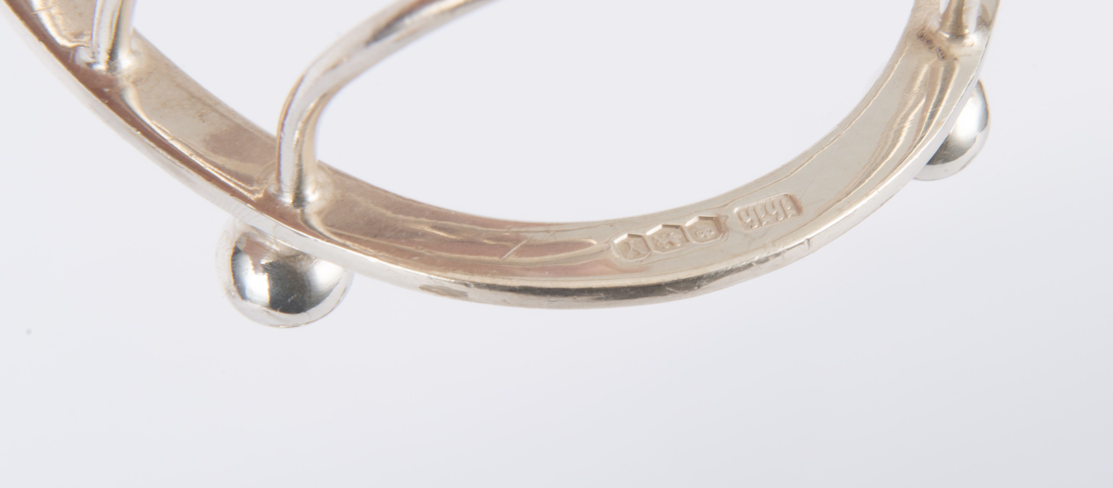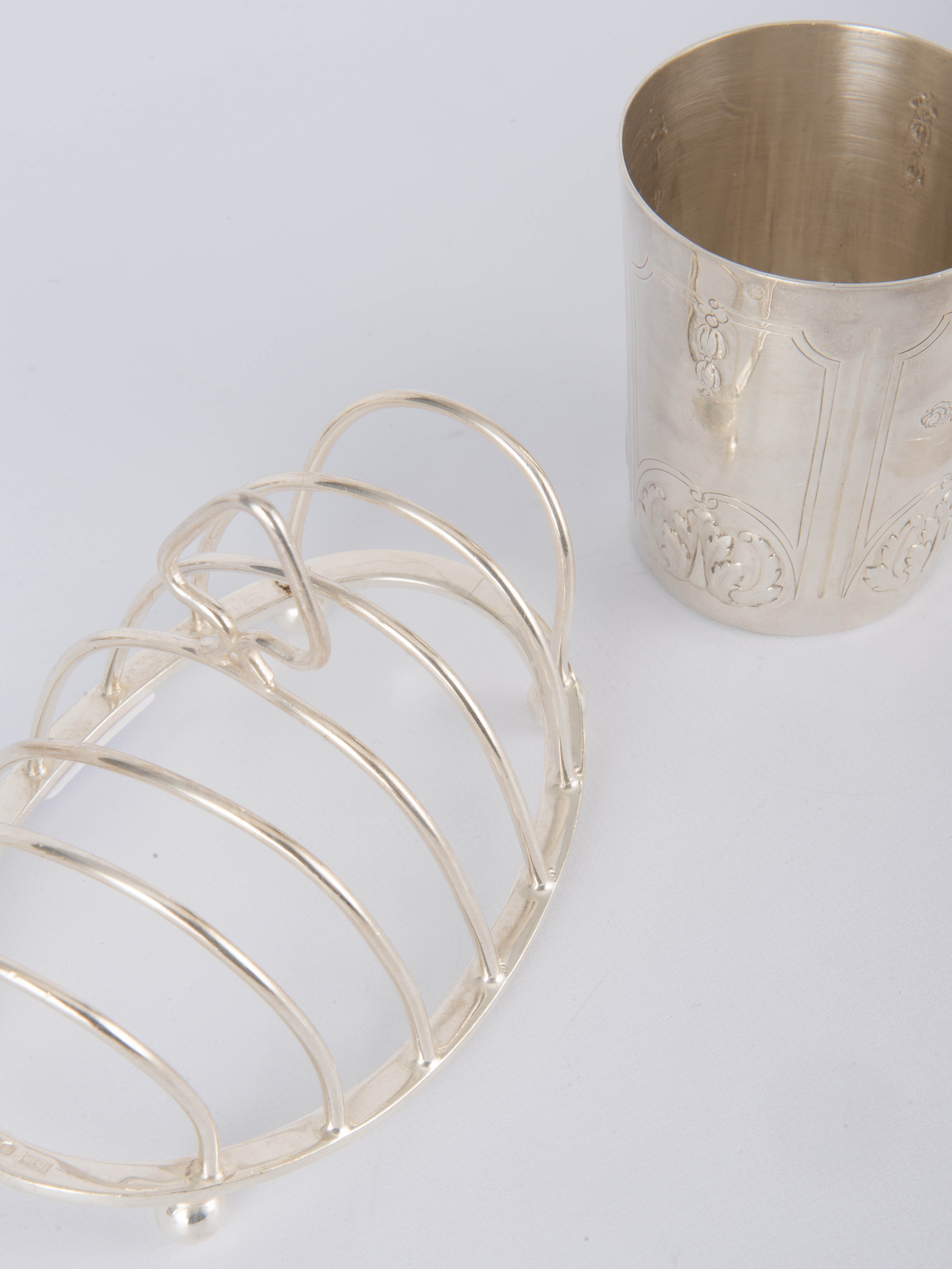 - 1 porte-toast en argent sterling 925, le tout reposant sur 4 pieds boules. H. 8.3x12.8x8 cm