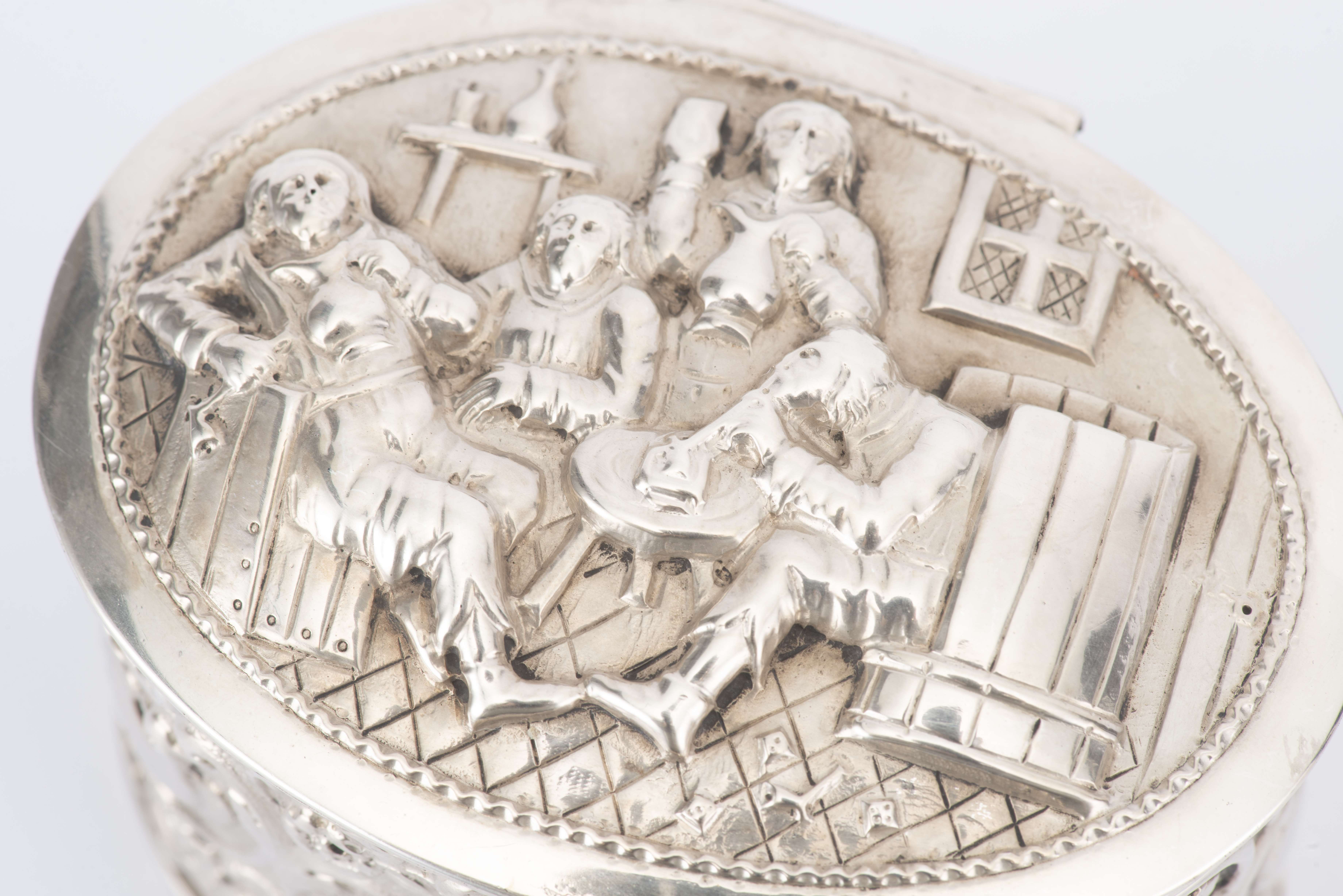 - 1 boîte ovale en argent du Pays Bas, 2eme titre. H. 6x9x7 cm