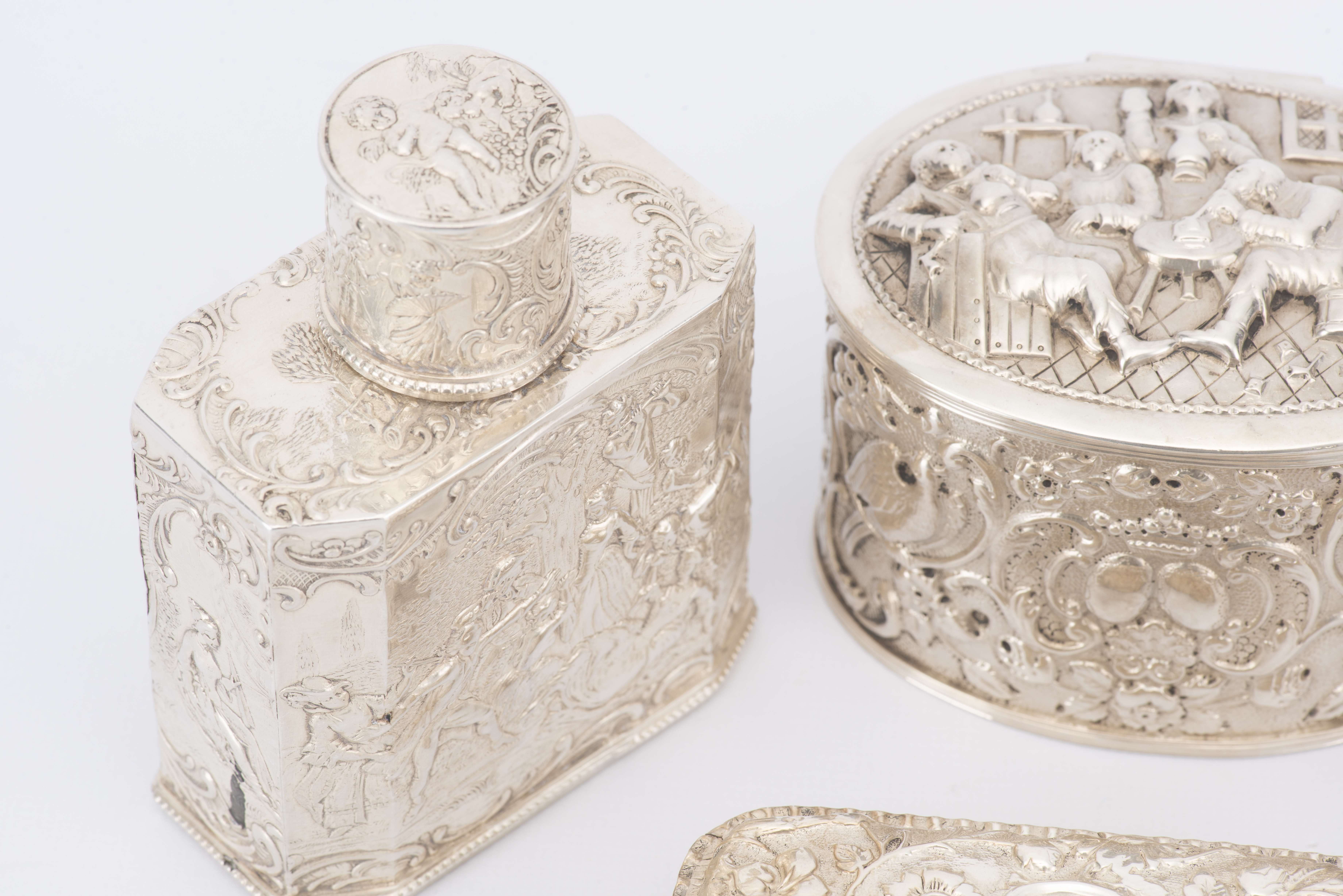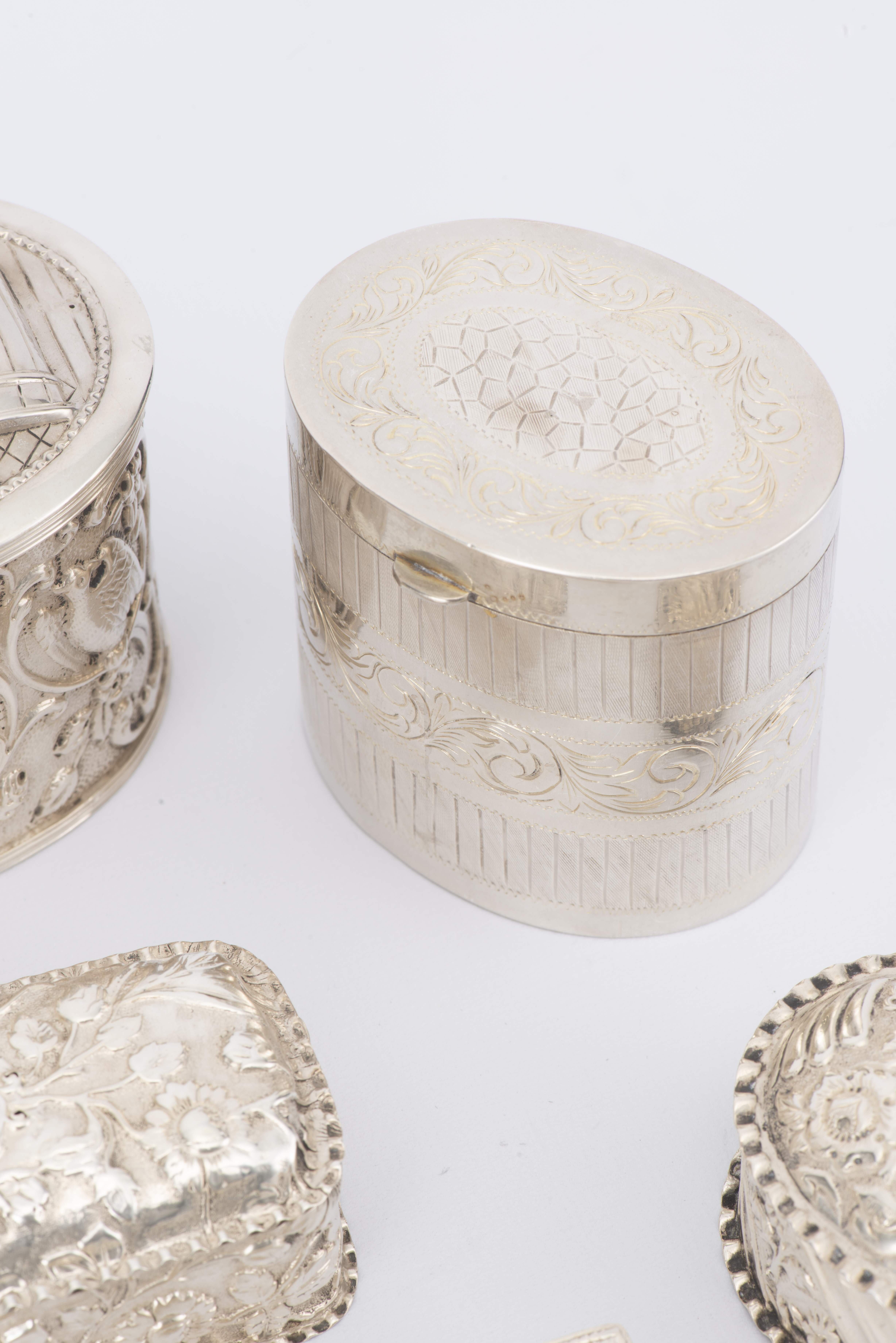 Lot de six boîtes en argent