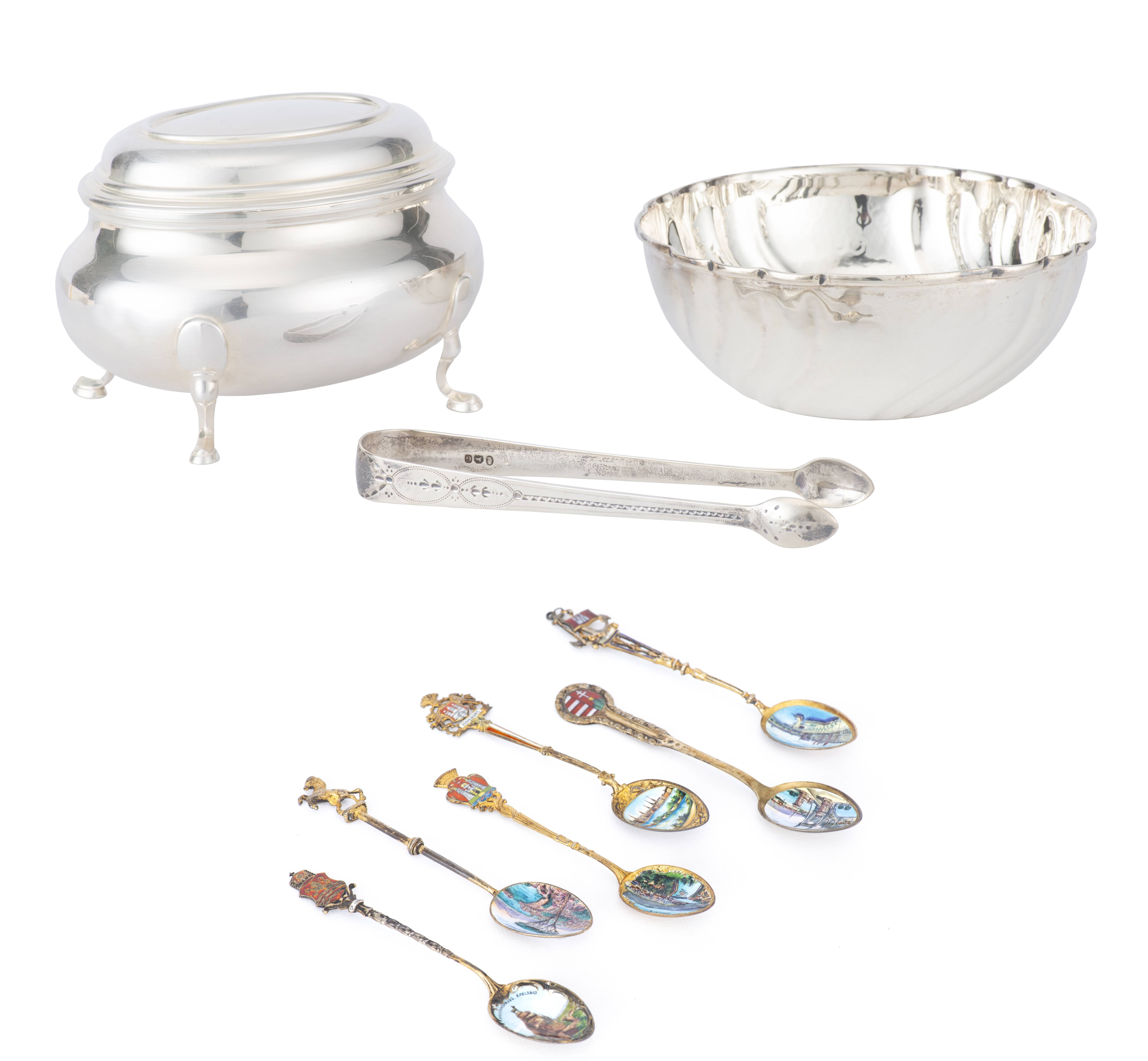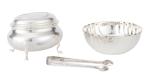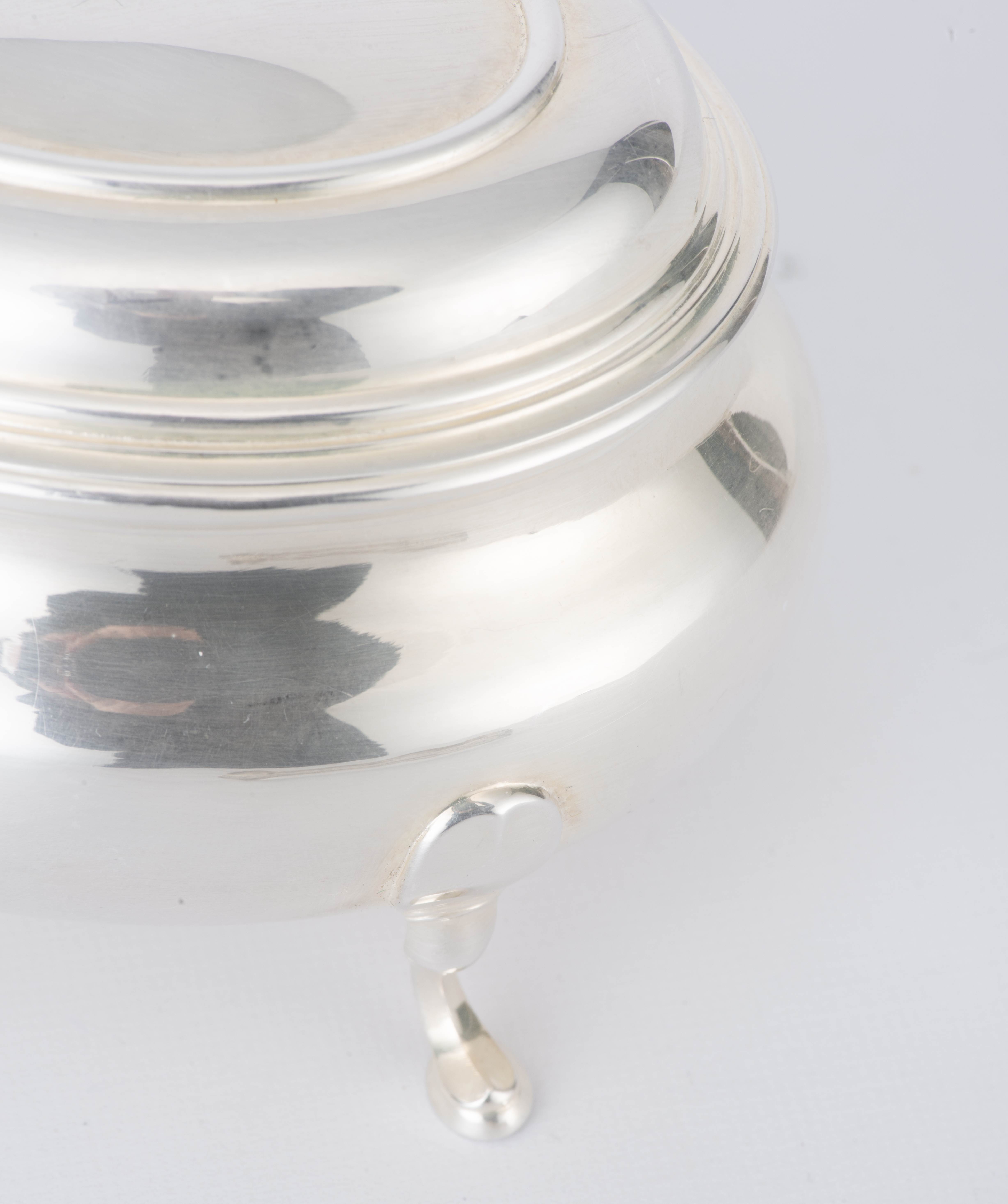 - sucrier à couvercle sur 4 pied à sabots en argent .800 Jezler n° 2962 H. 8.5x11x9.3 cm