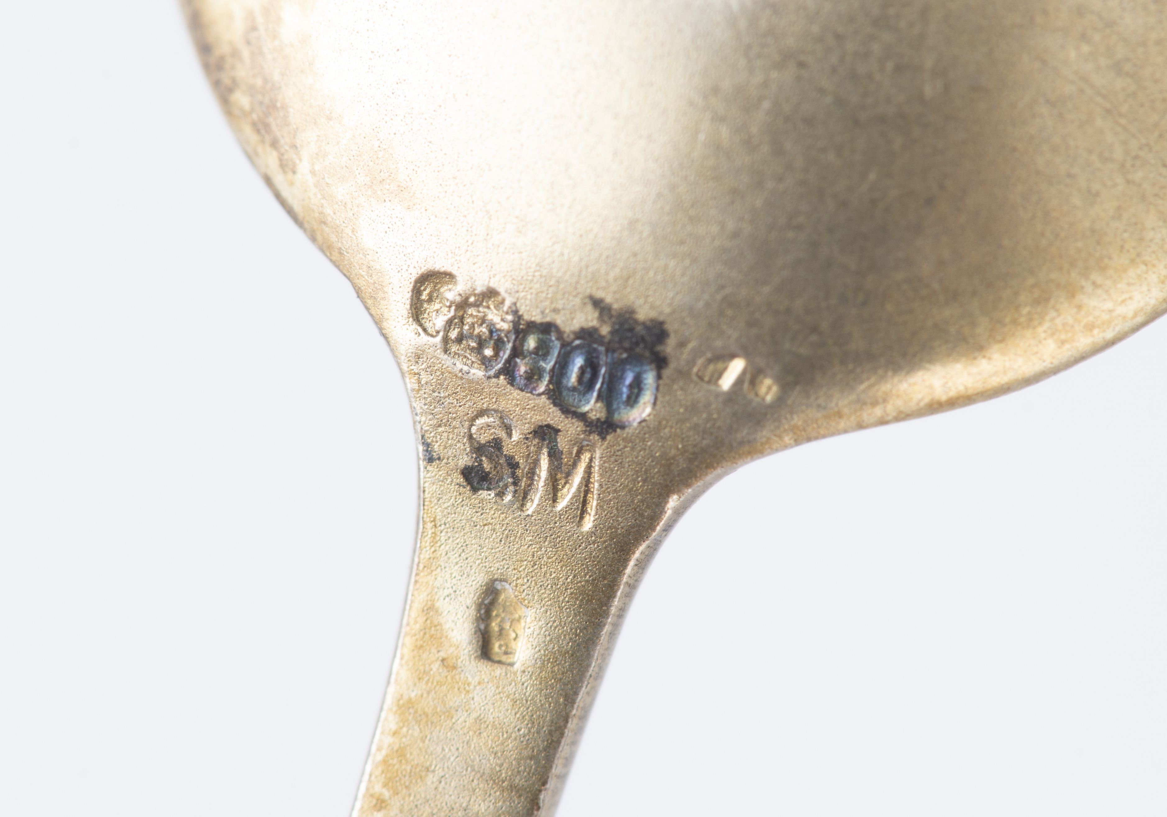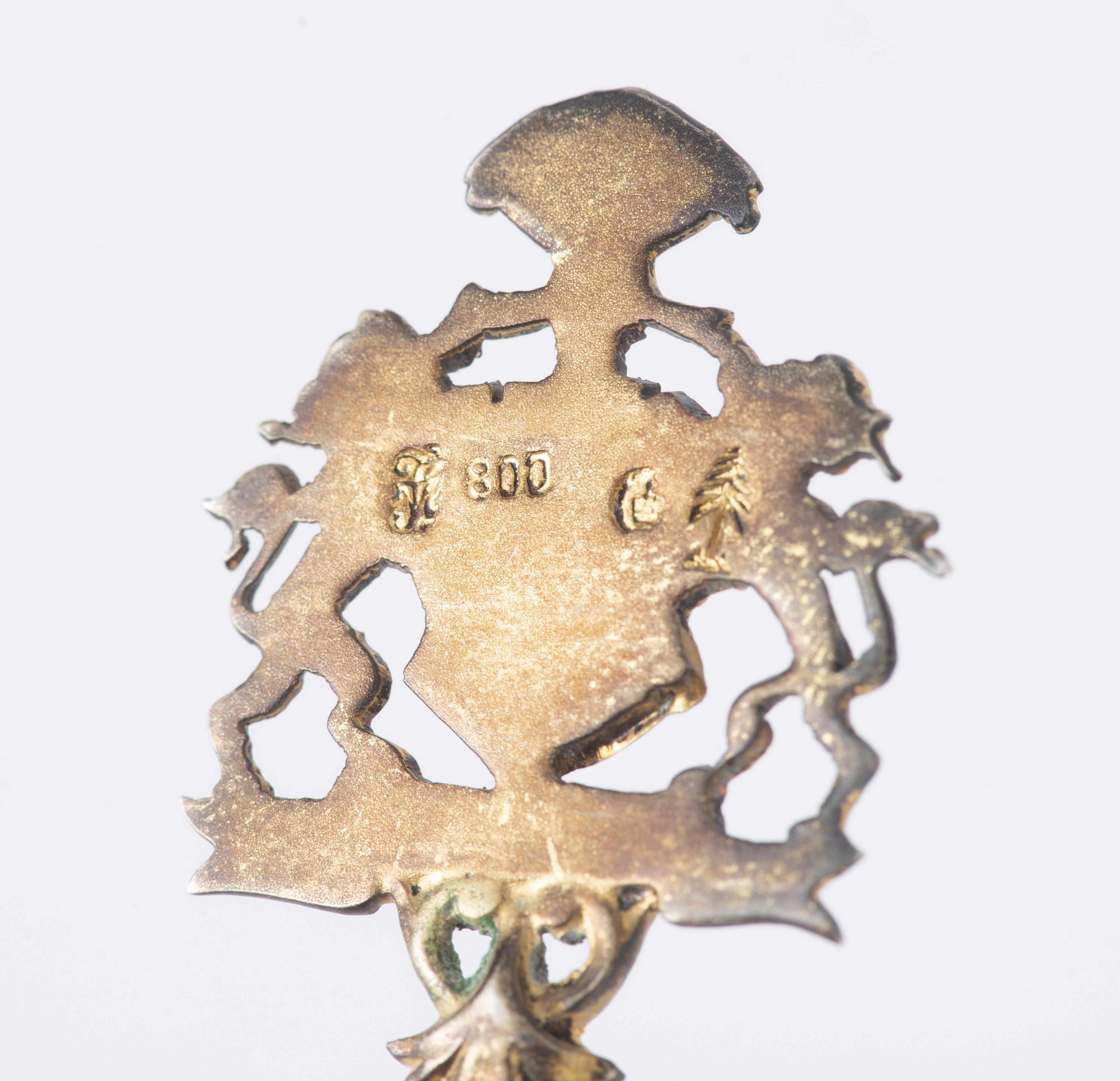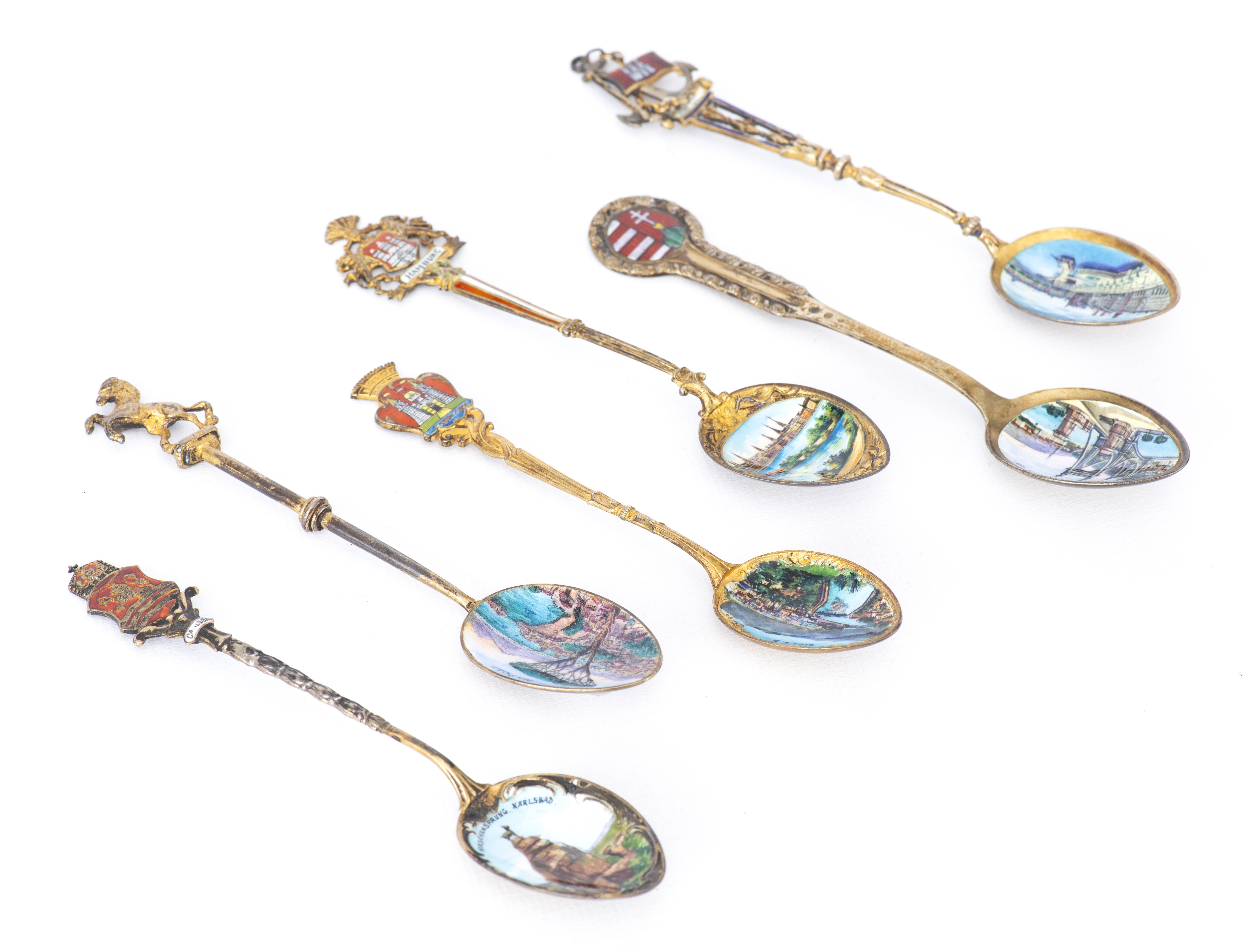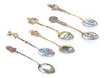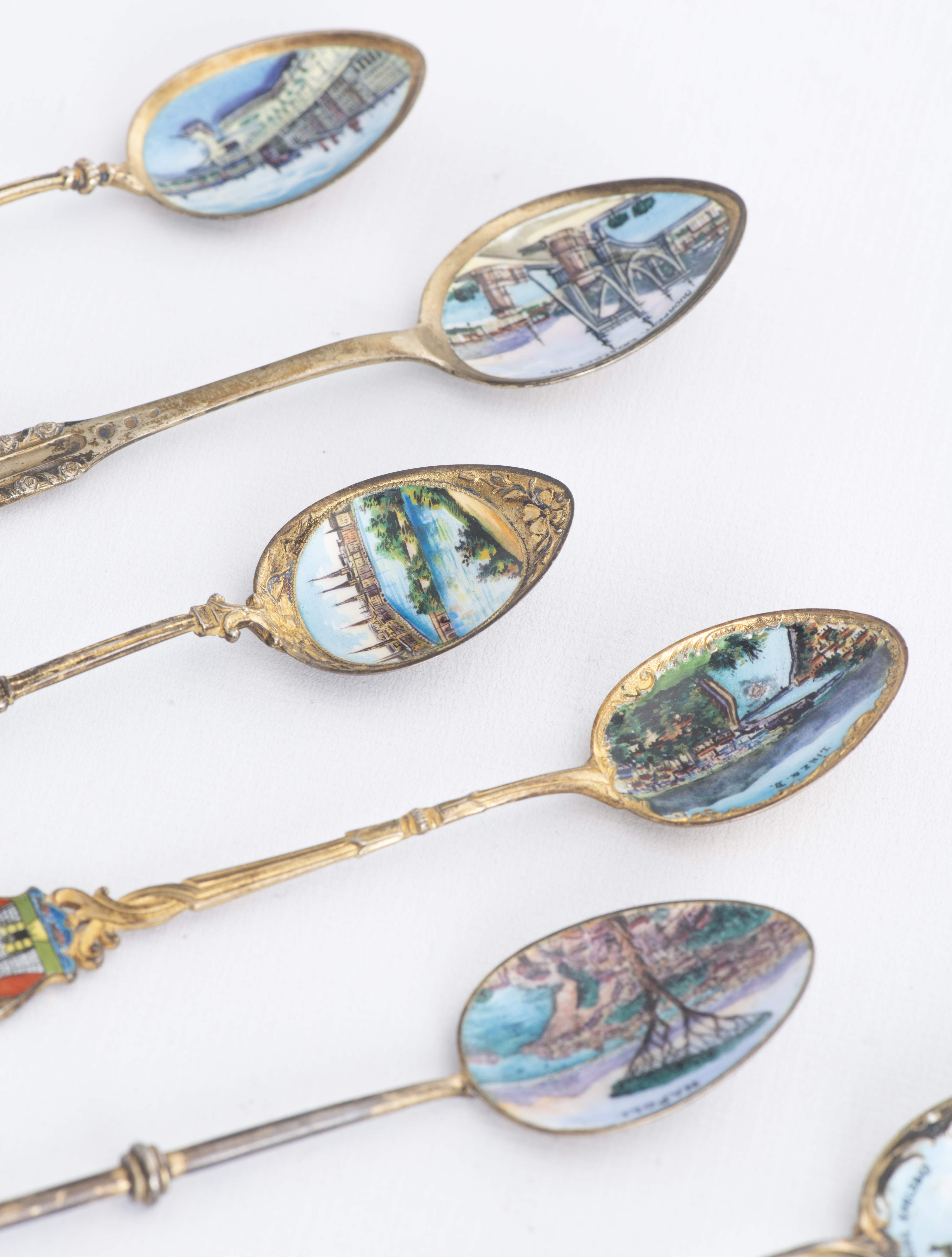 - 6 cuillères à thé ou café en argent .800 avec décor émaillé de villes