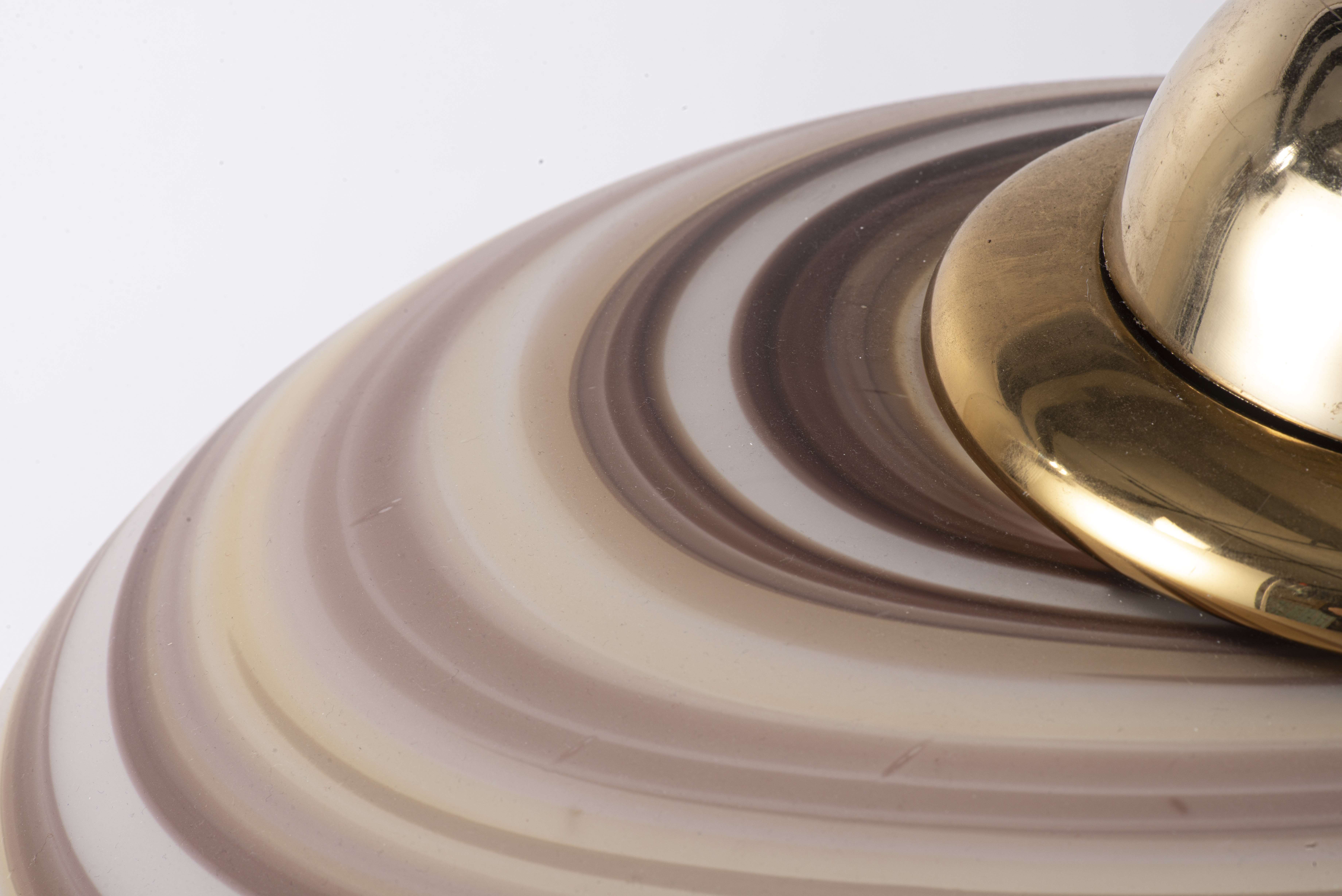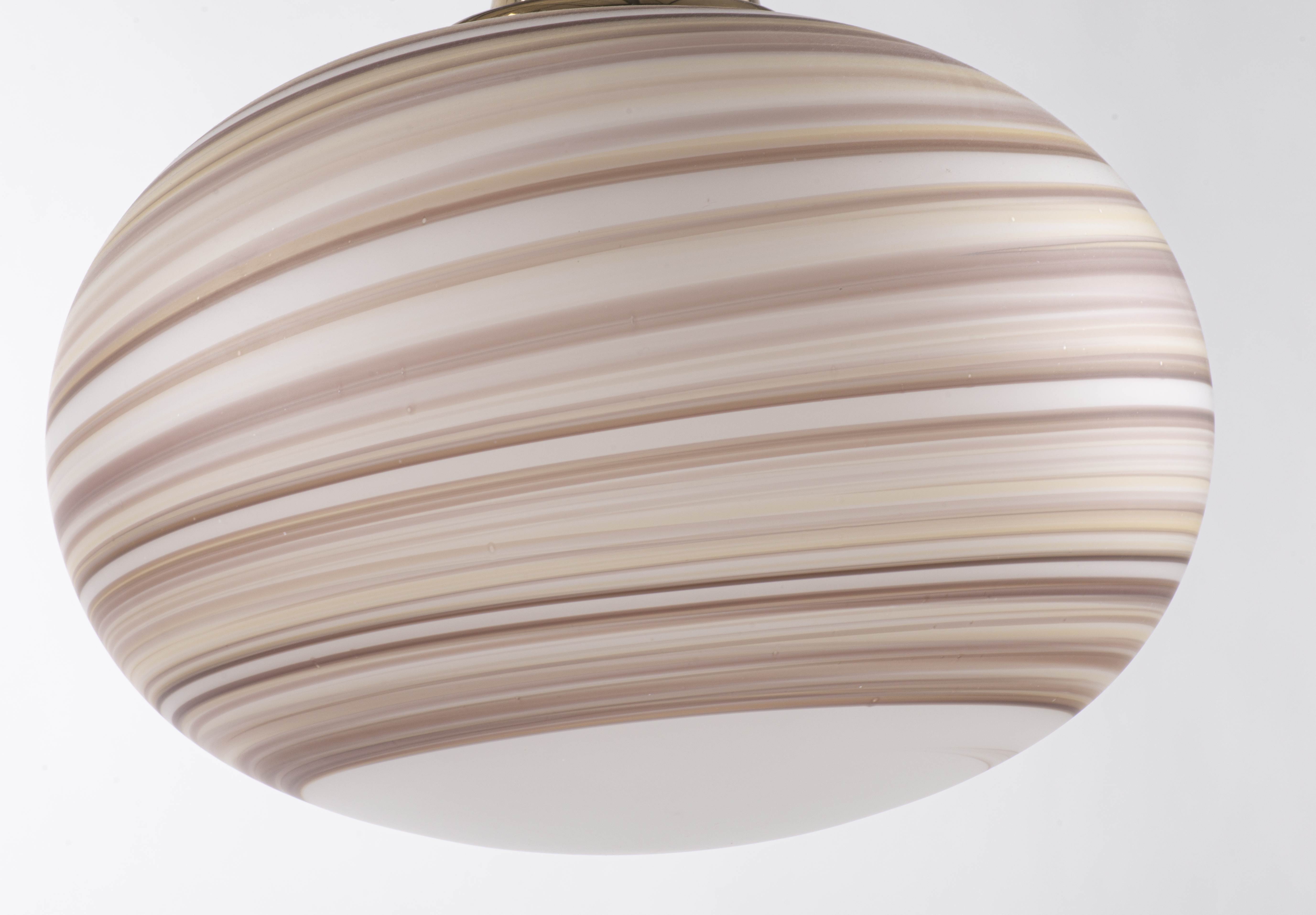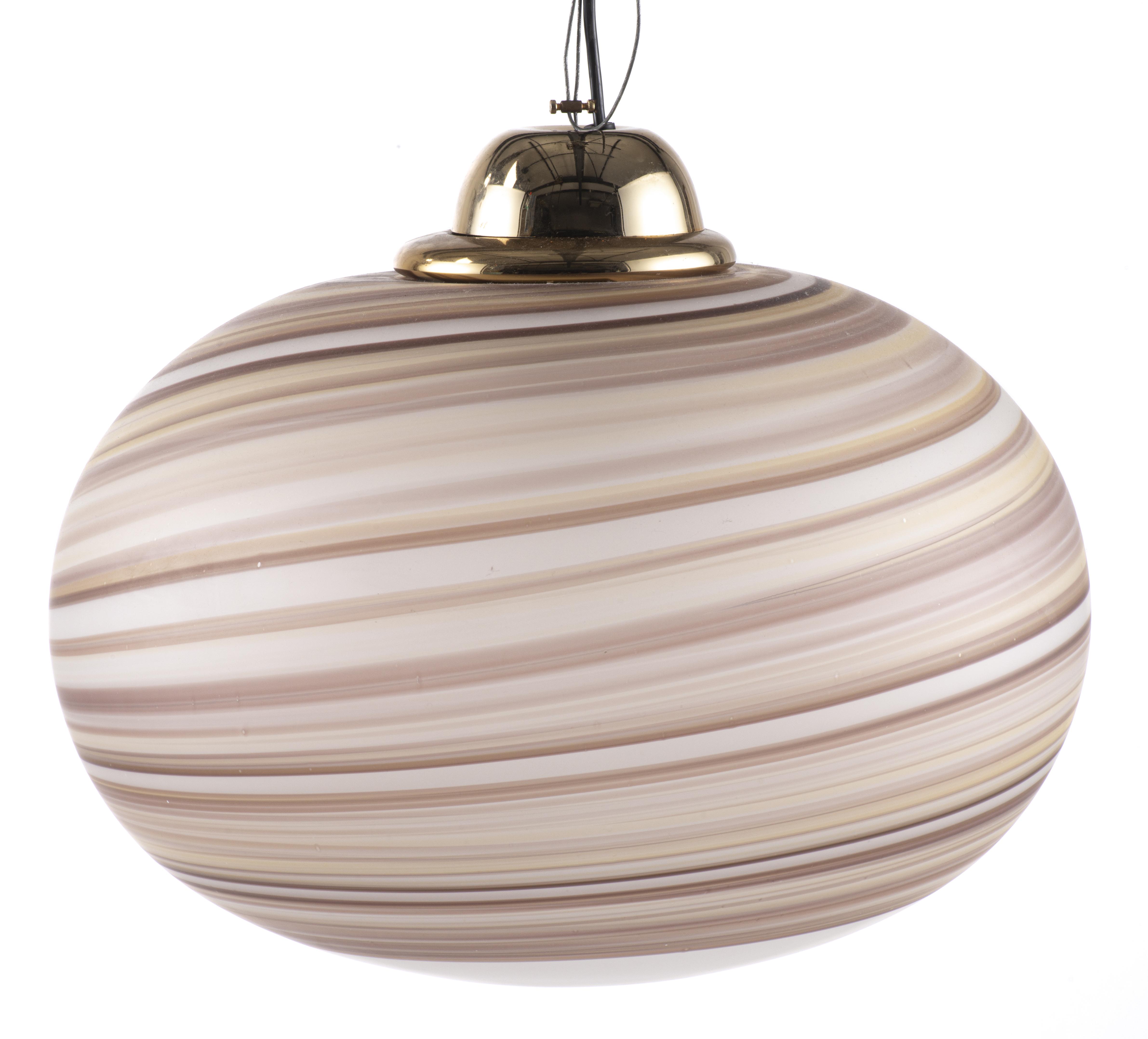 VeArt, suspension en verre soufflé à rayures dans les tons bruns et beige de Scorzè Venezia, Italie, années 70.