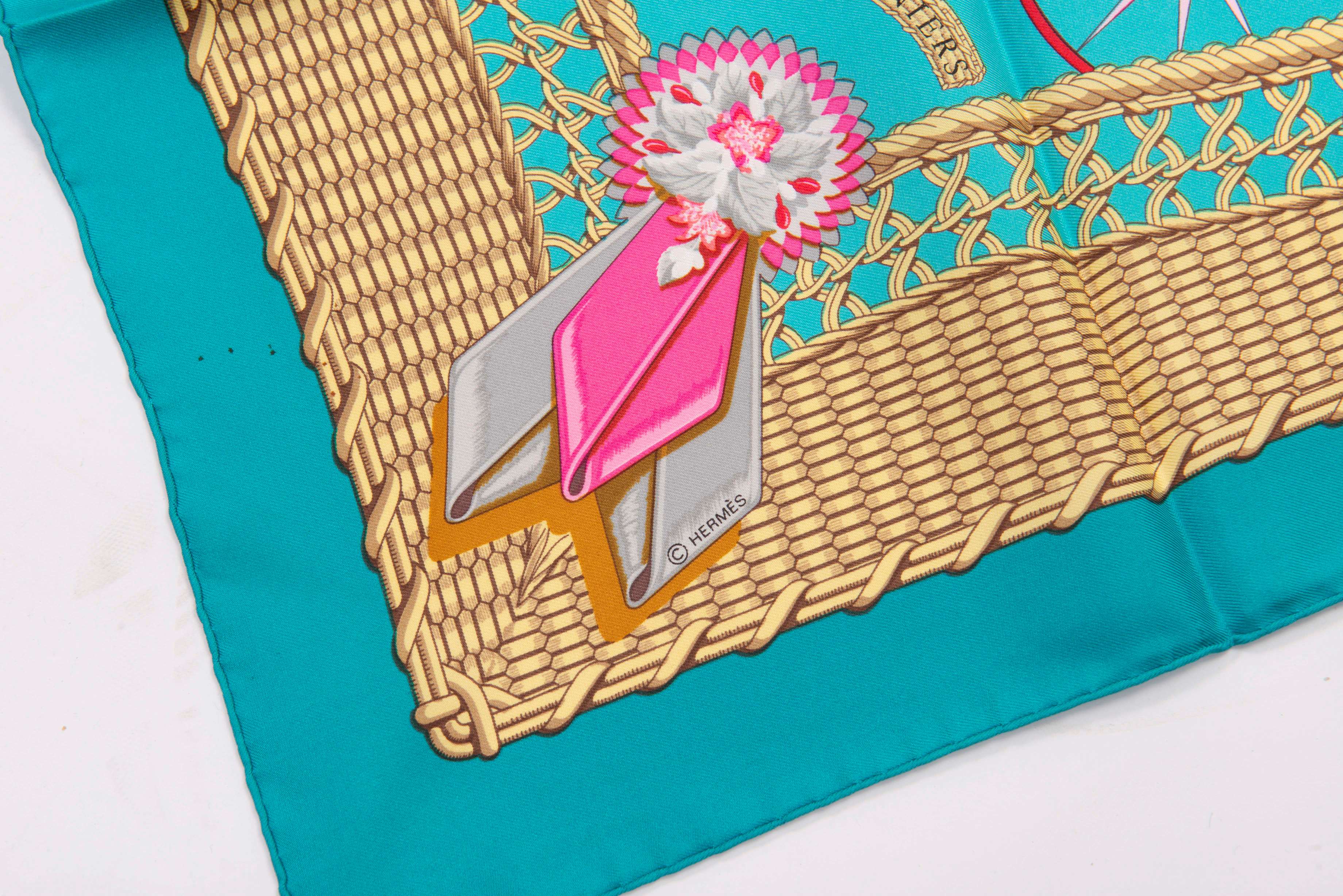 Hermès Paris, carré en soie "Voitures paniers" par Julia Abadie, première édition datant de 1984.