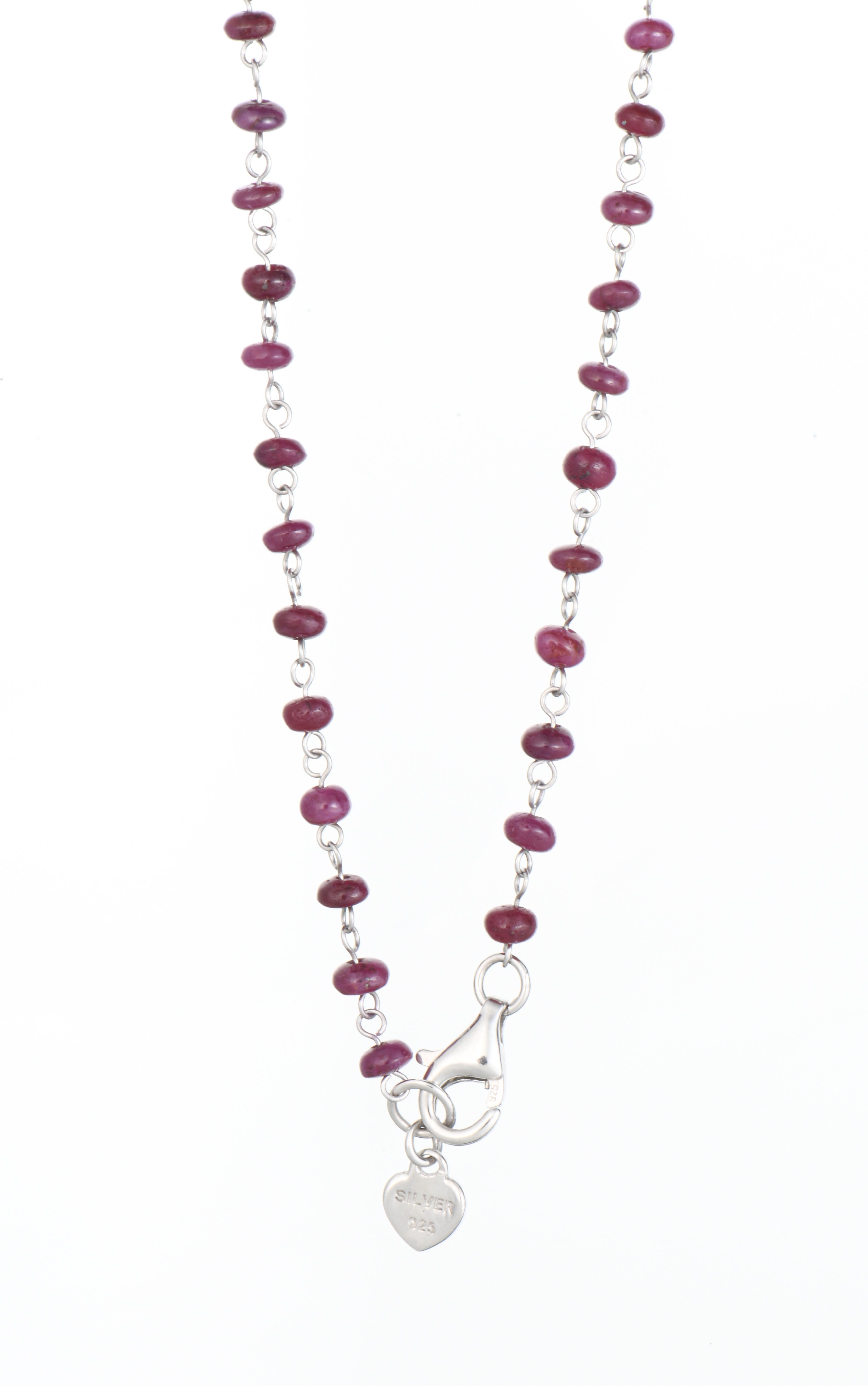 Sautoir de boules de rubis sur argent sterling