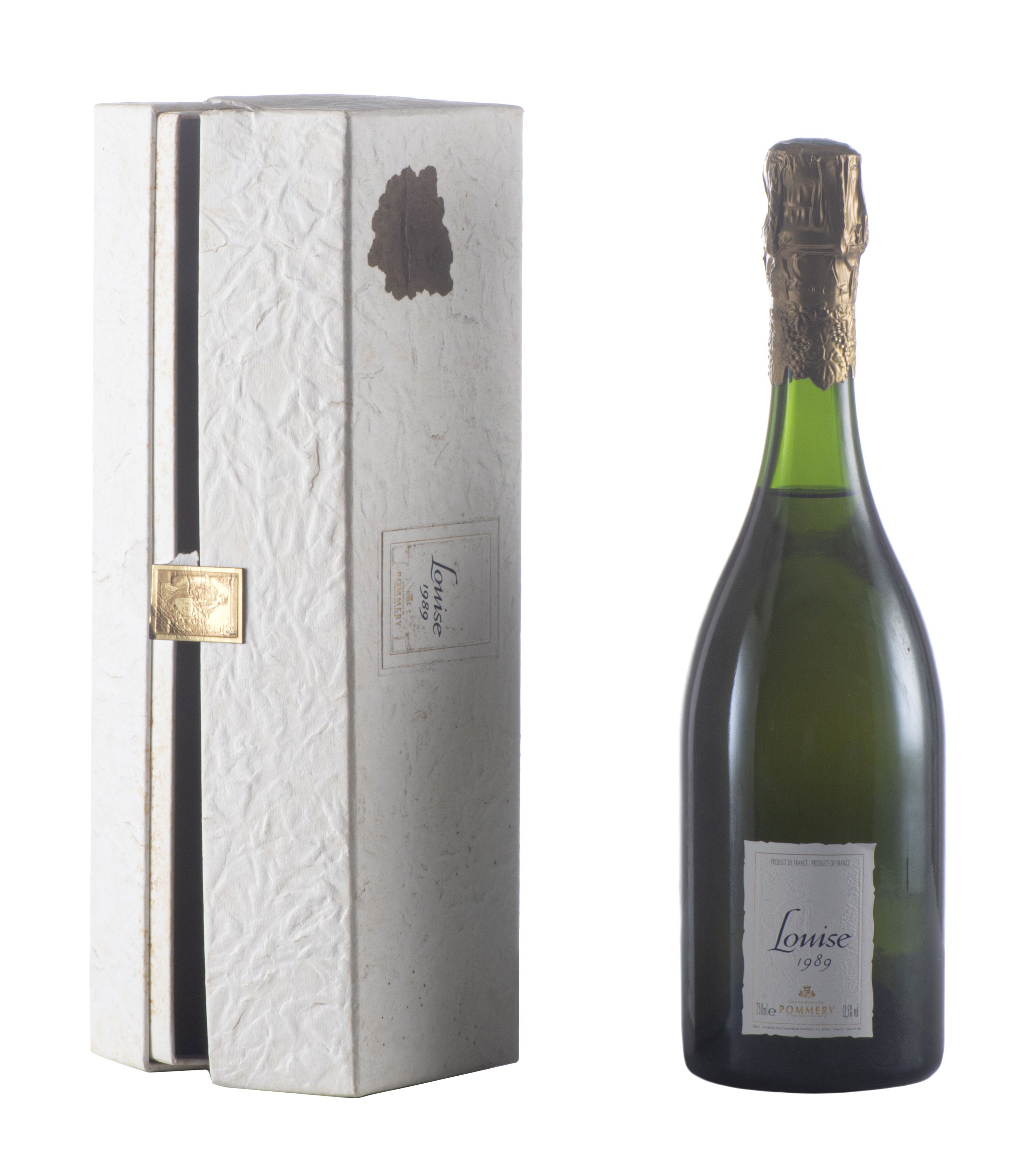 Champagne Louise Pommery, 1989. Dans son coffret d'origine ouvert.