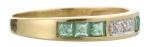 Paire de demi-aliances en or jaune .750 par Bucherer, la première avec 6 émeraudes carrées pesant 0.30 ct et trois diamants 8/8 pour un total de 0.03 ct, la seconde avec 6 rubis carrés pour 0.35 ct et trois diamants 8/8 pour un total de 0.03 ct, poinçon CB.
