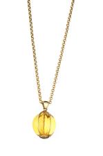 Daum France, pendentif en cristal jaune de Daum avec une chaîne en métal doré.
