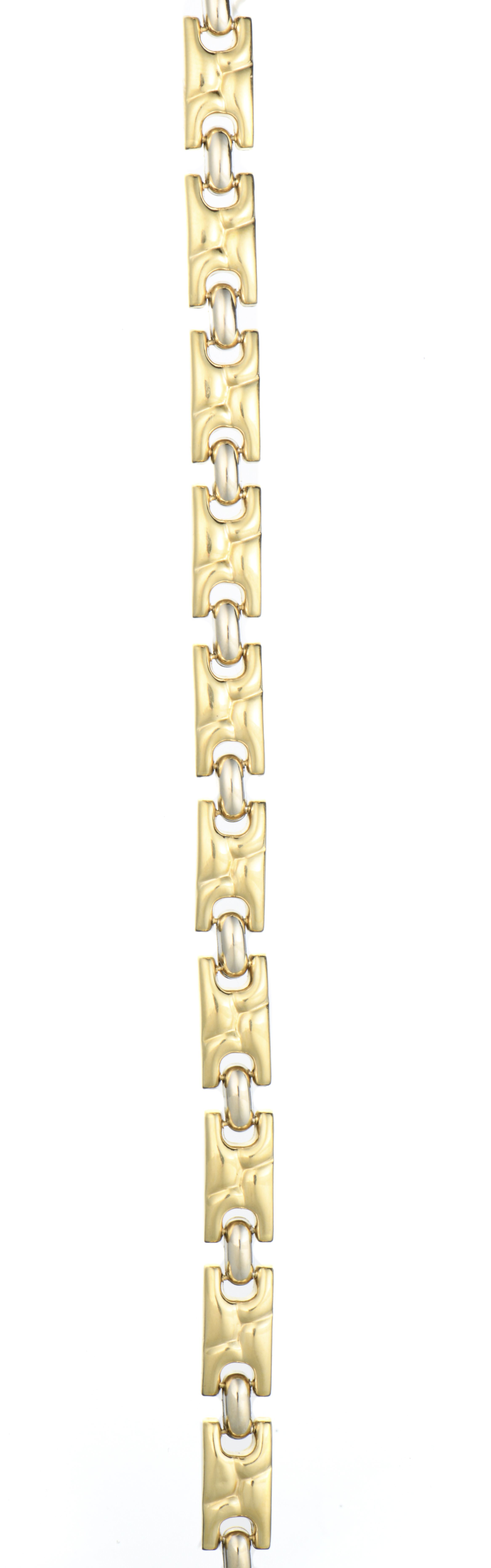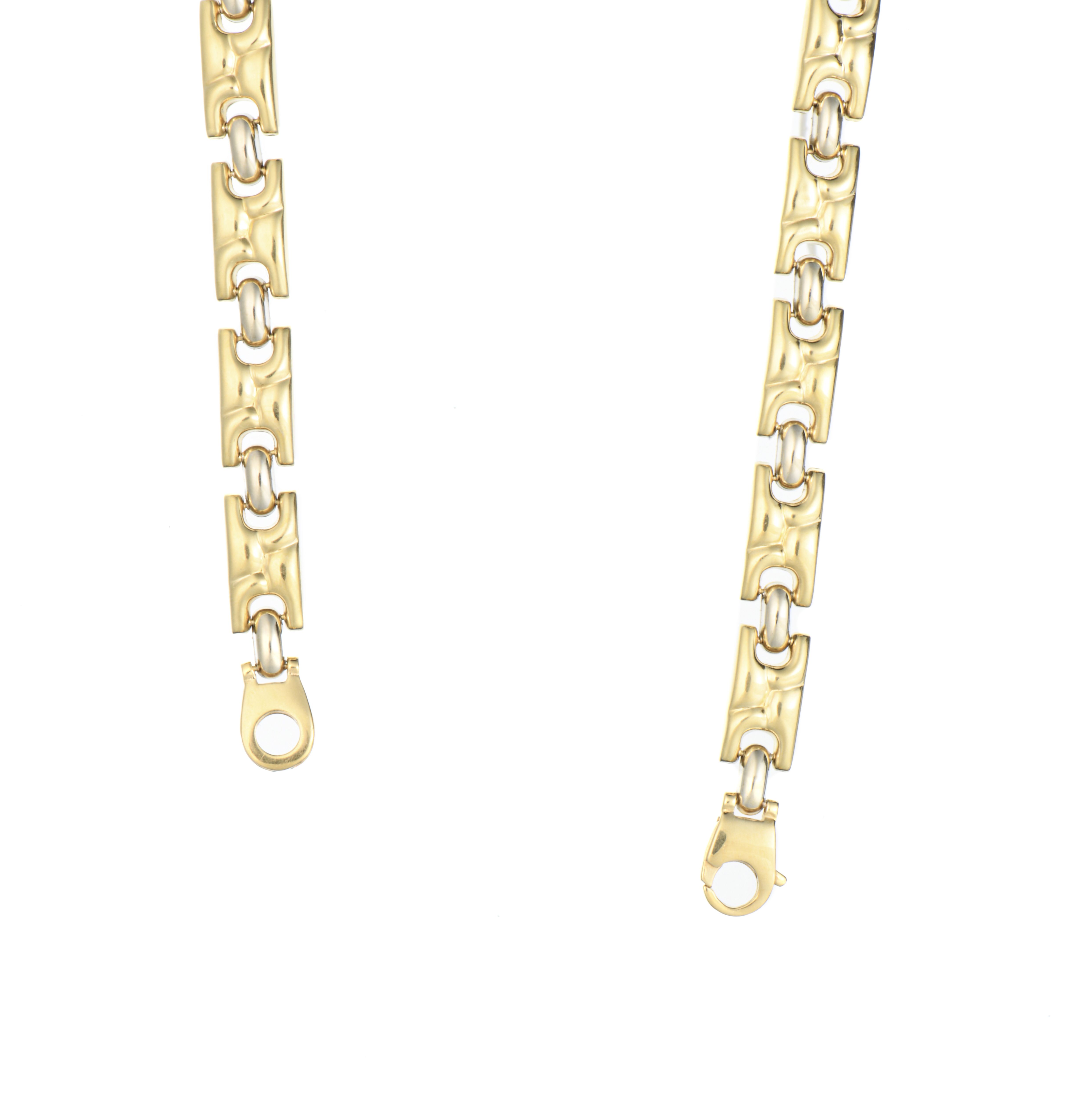 Collier tour de cou en or jaune et or gris .750, maillons en forme de H.