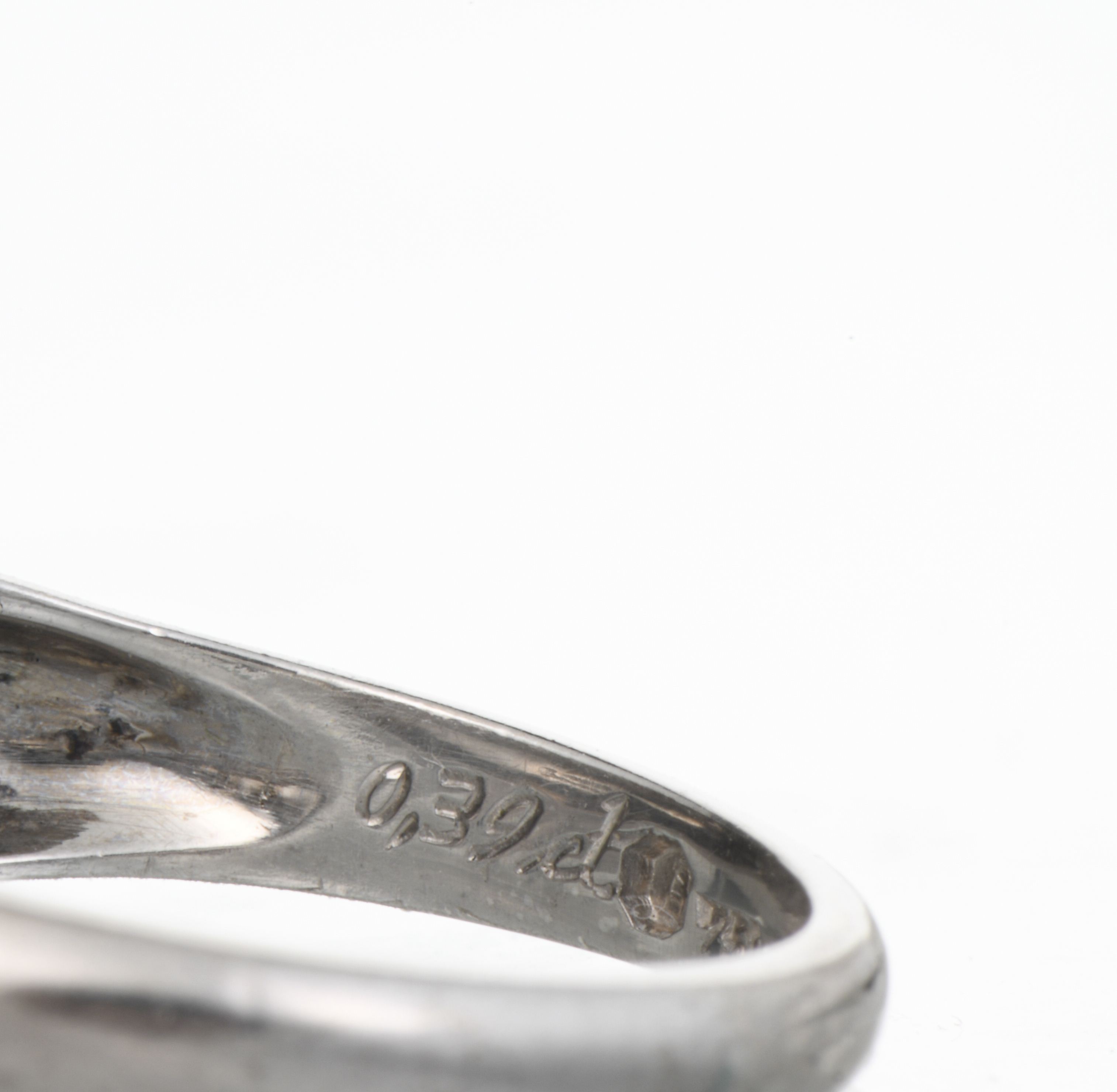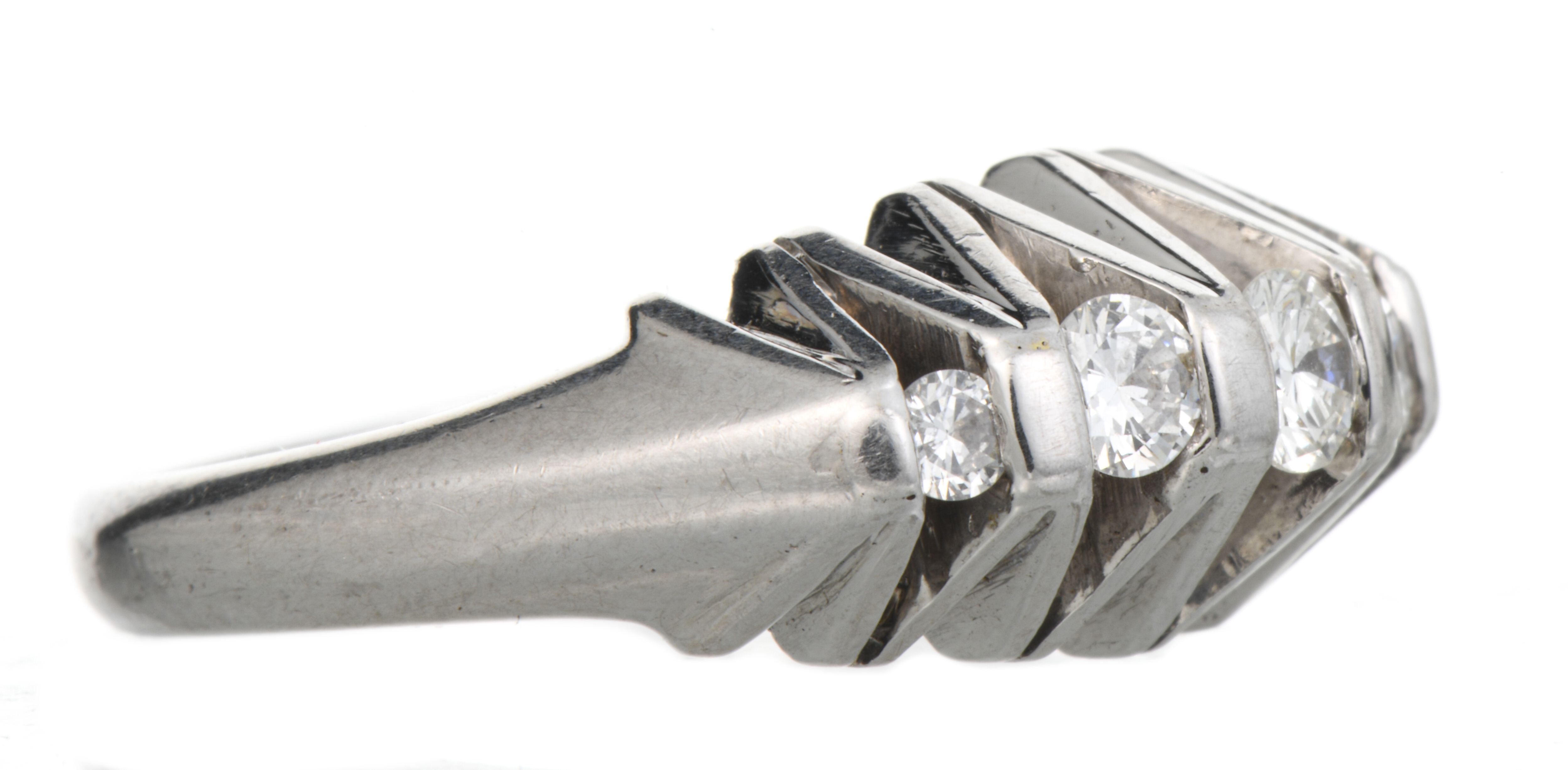 Bague en or gris .750 des années 1960 sertie rail de 5 diamants de taille brillant pour un total de 0.39 ct.