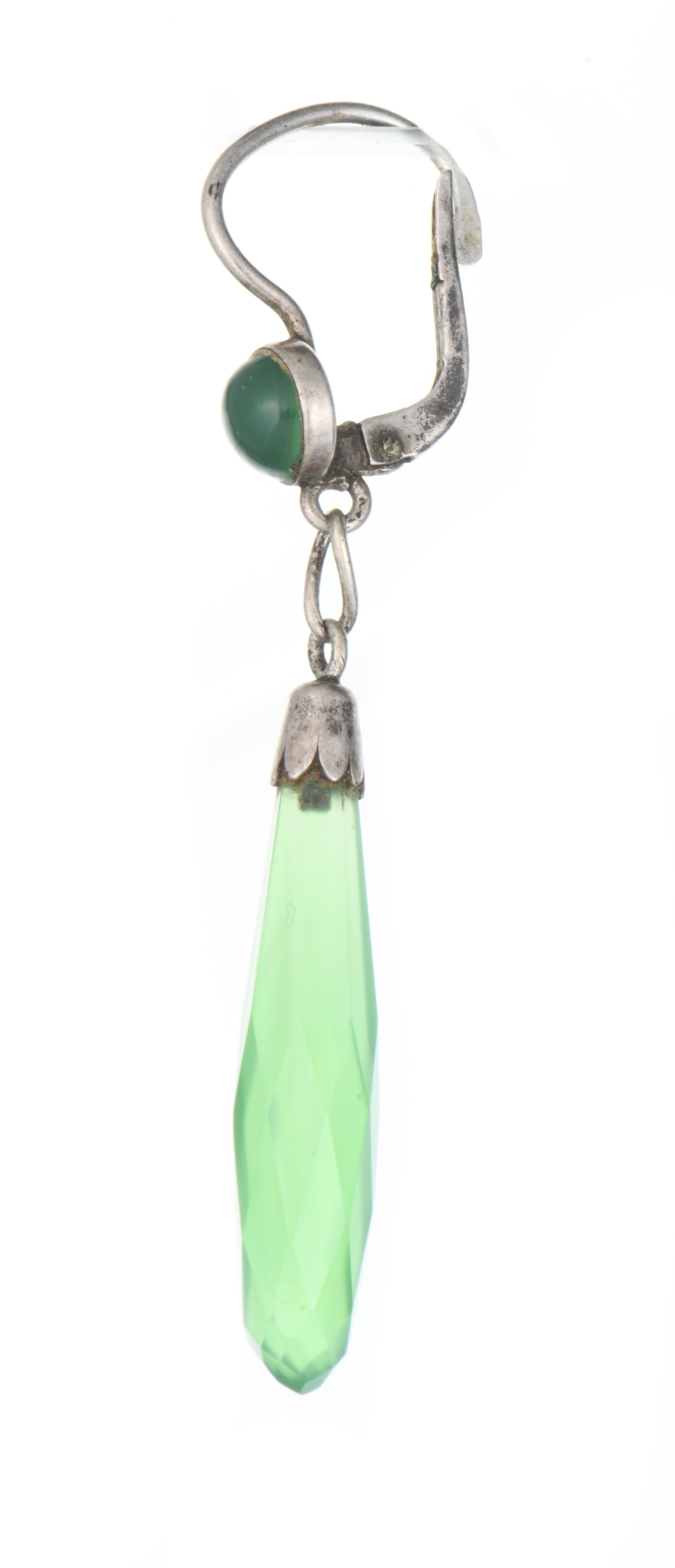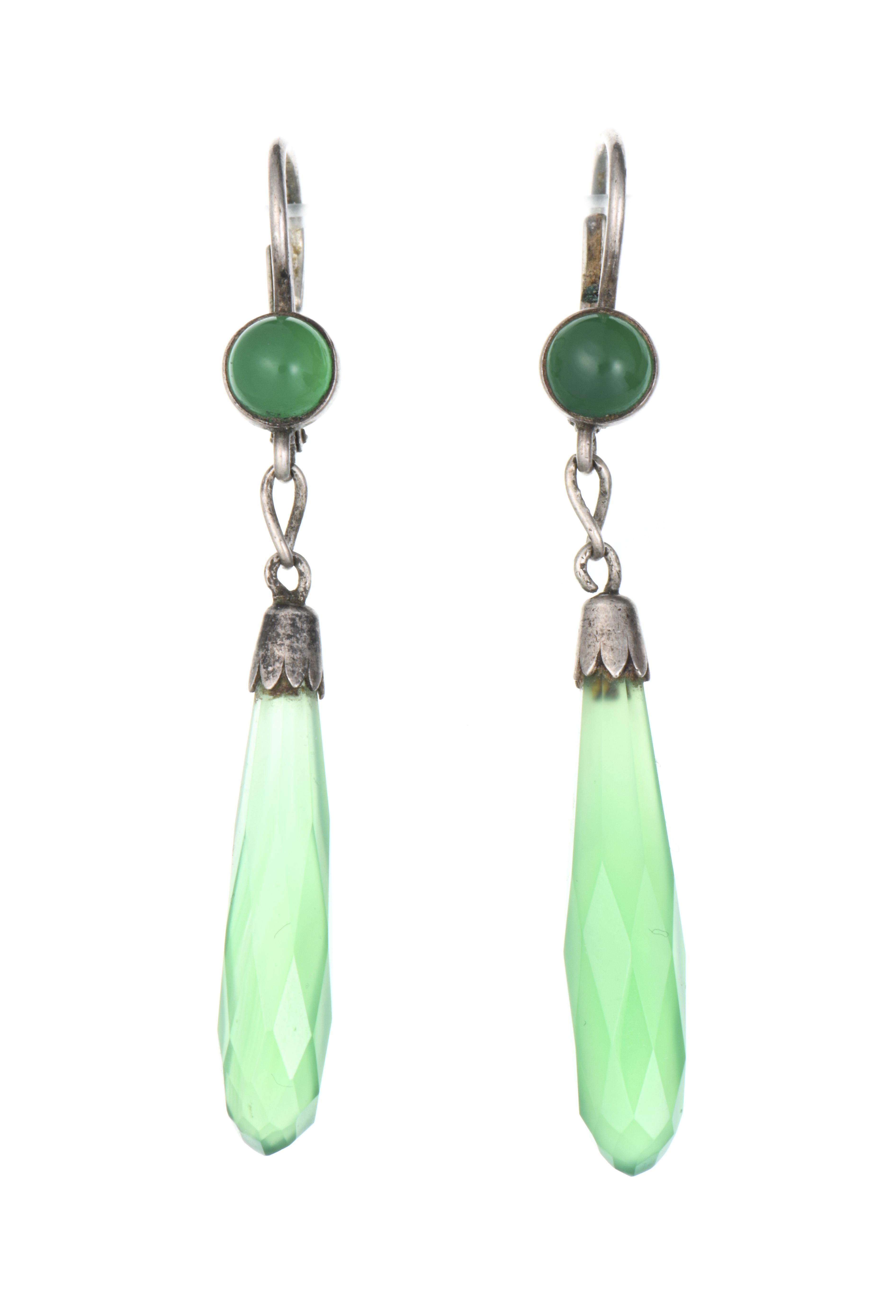 Paire de boucles d'oreilles en argent et agates vertes