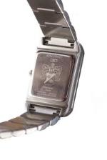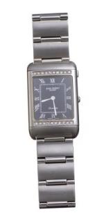 Jean Perret Genève, montre-bracelet Doublette rectangulaire en acier avec double boîte et cadran, 20 diamants, mvt quartz, boucle déployante, dans sa boîte d'origine.