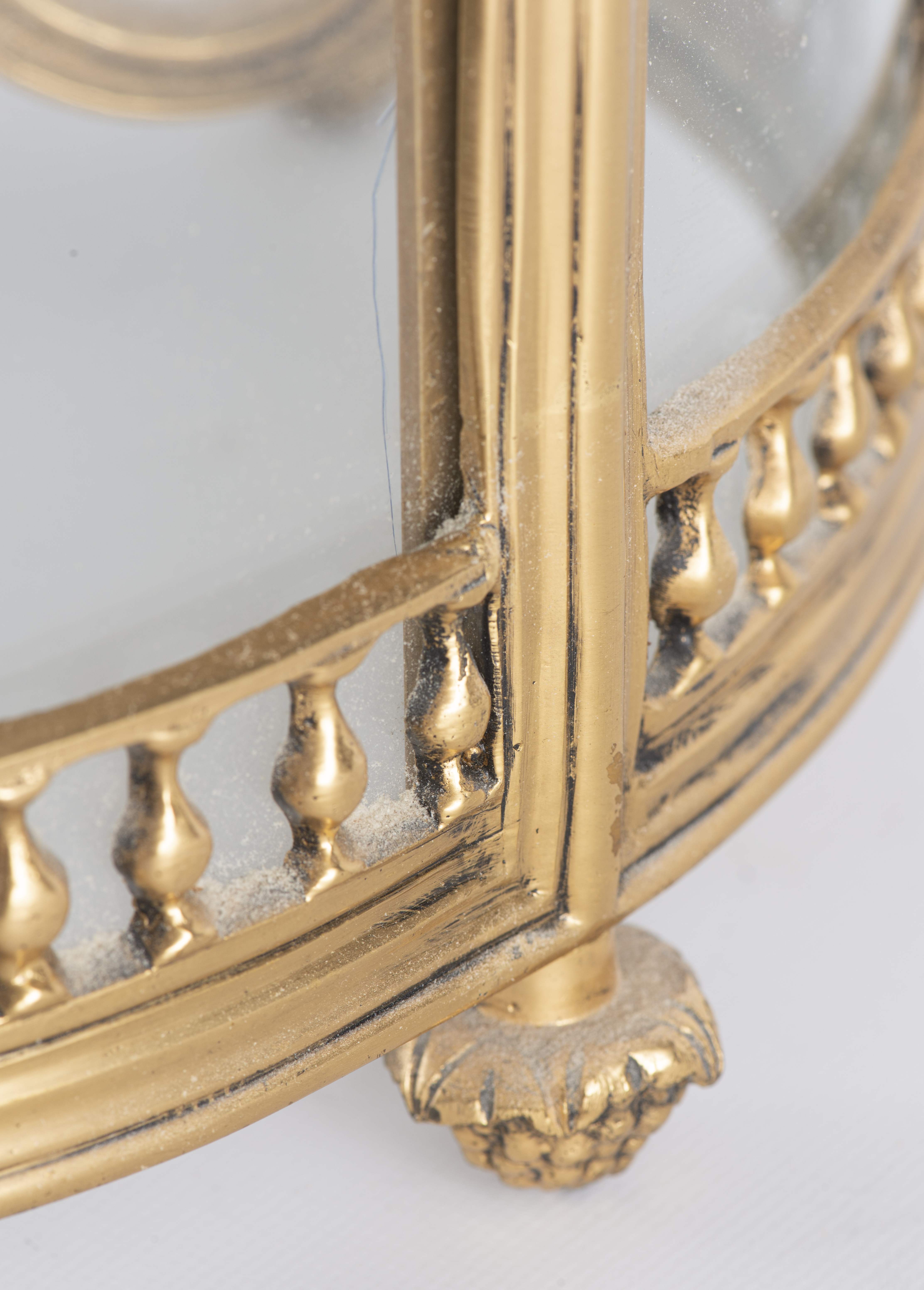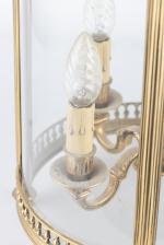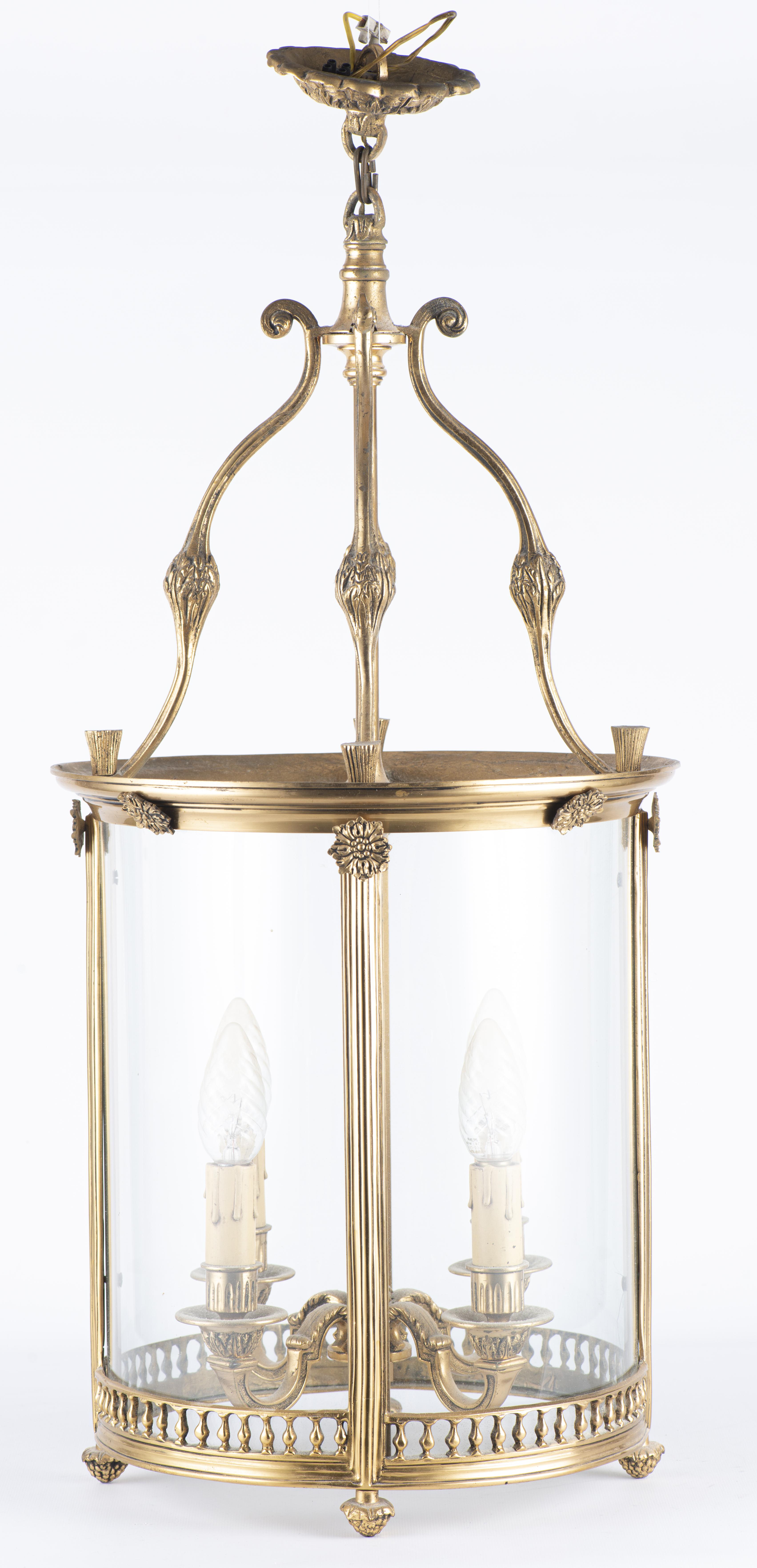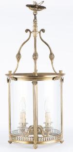 Lanterne cage cylindrique à quatre bras de lumières de style Louis XVI en laiton, Paris Xxe . (La Maison Delisle peut-être)