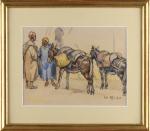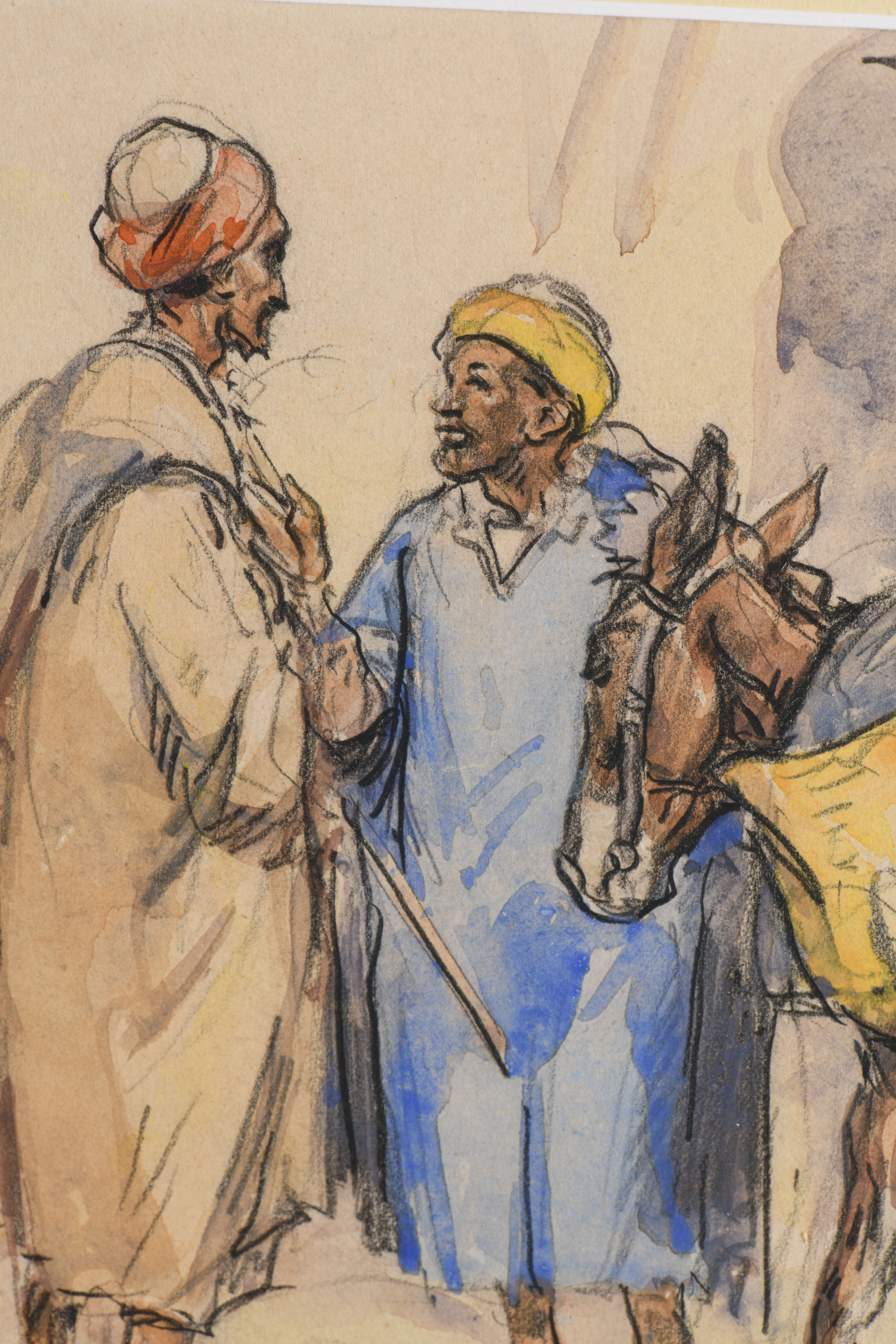 Edouard Elzingre (1880 - 1966) "Orientaliste", fusain et aquarelle sur papier, signé en bas à droite.