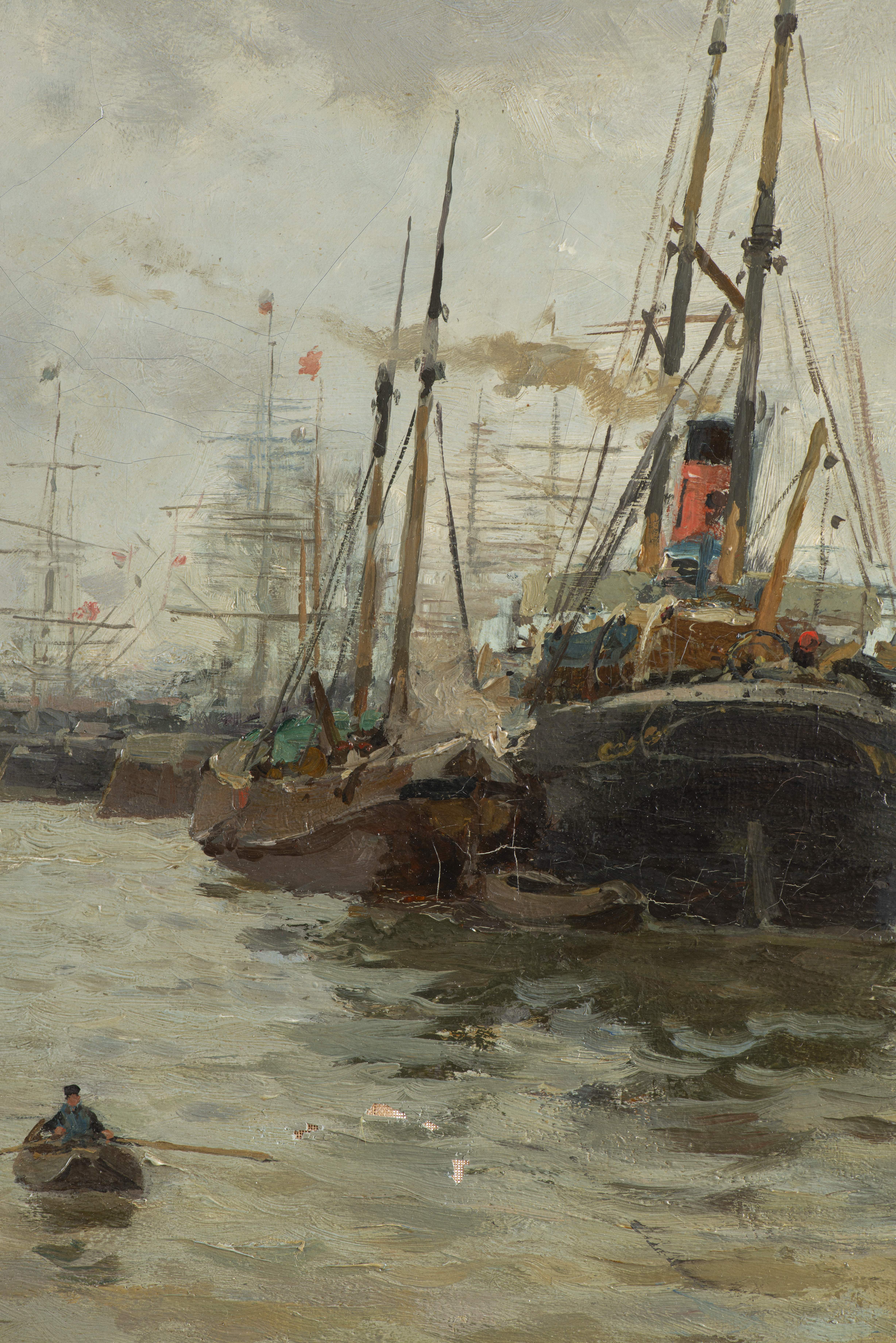Edmond Marie PETITJEAN (1844-1925) "Vue du Port de Honfleur", huile sur toile, signé en bas à gauche.