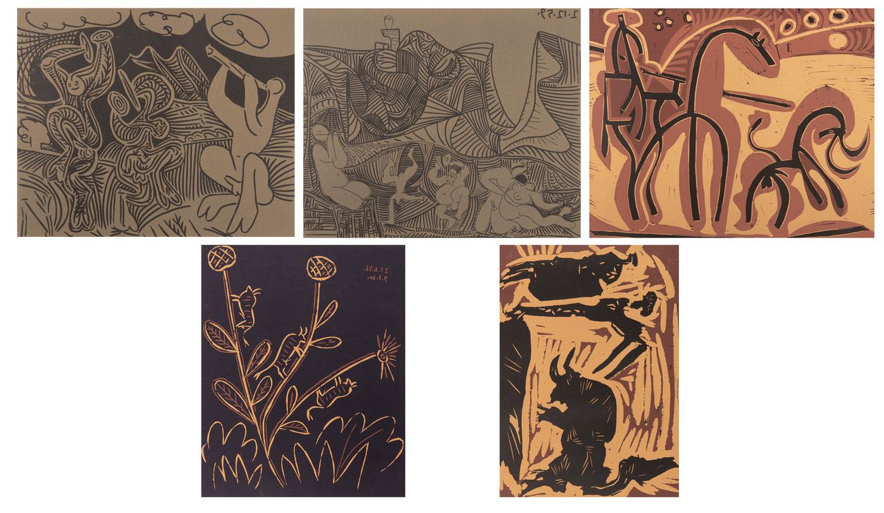 Pablo PICASSO (1881-1973, d'après), cinq linogravures