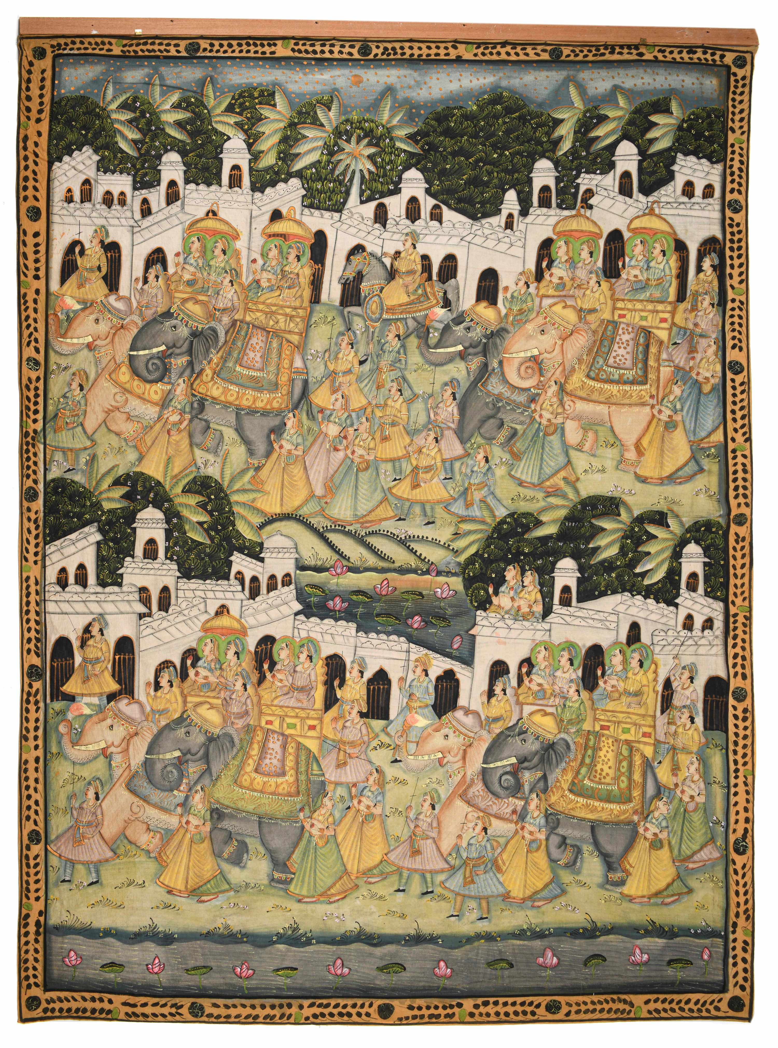 Tenture indienne avec cortège d'éléphants
