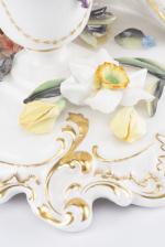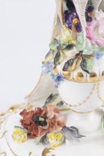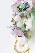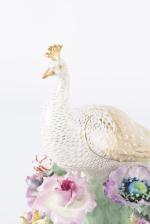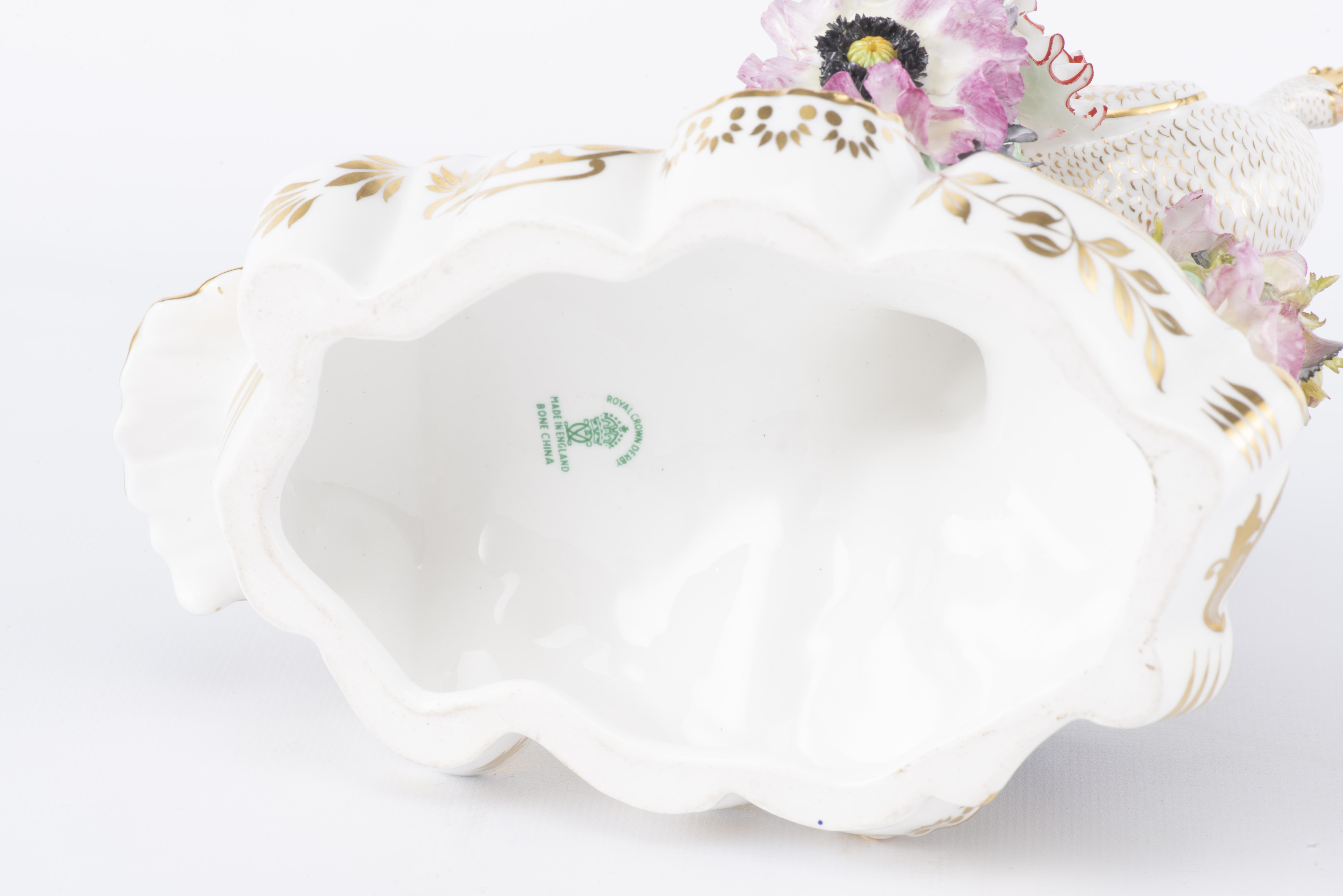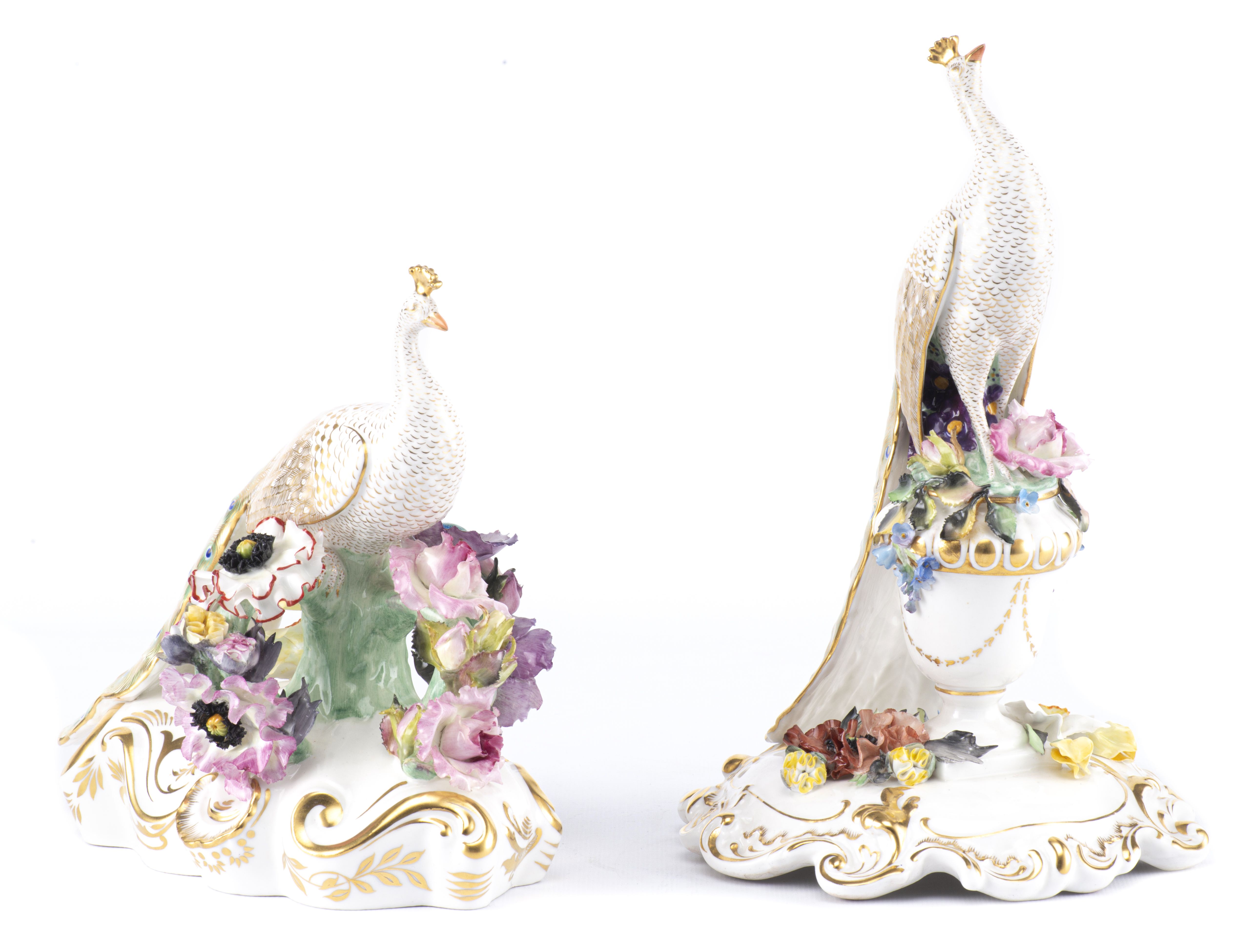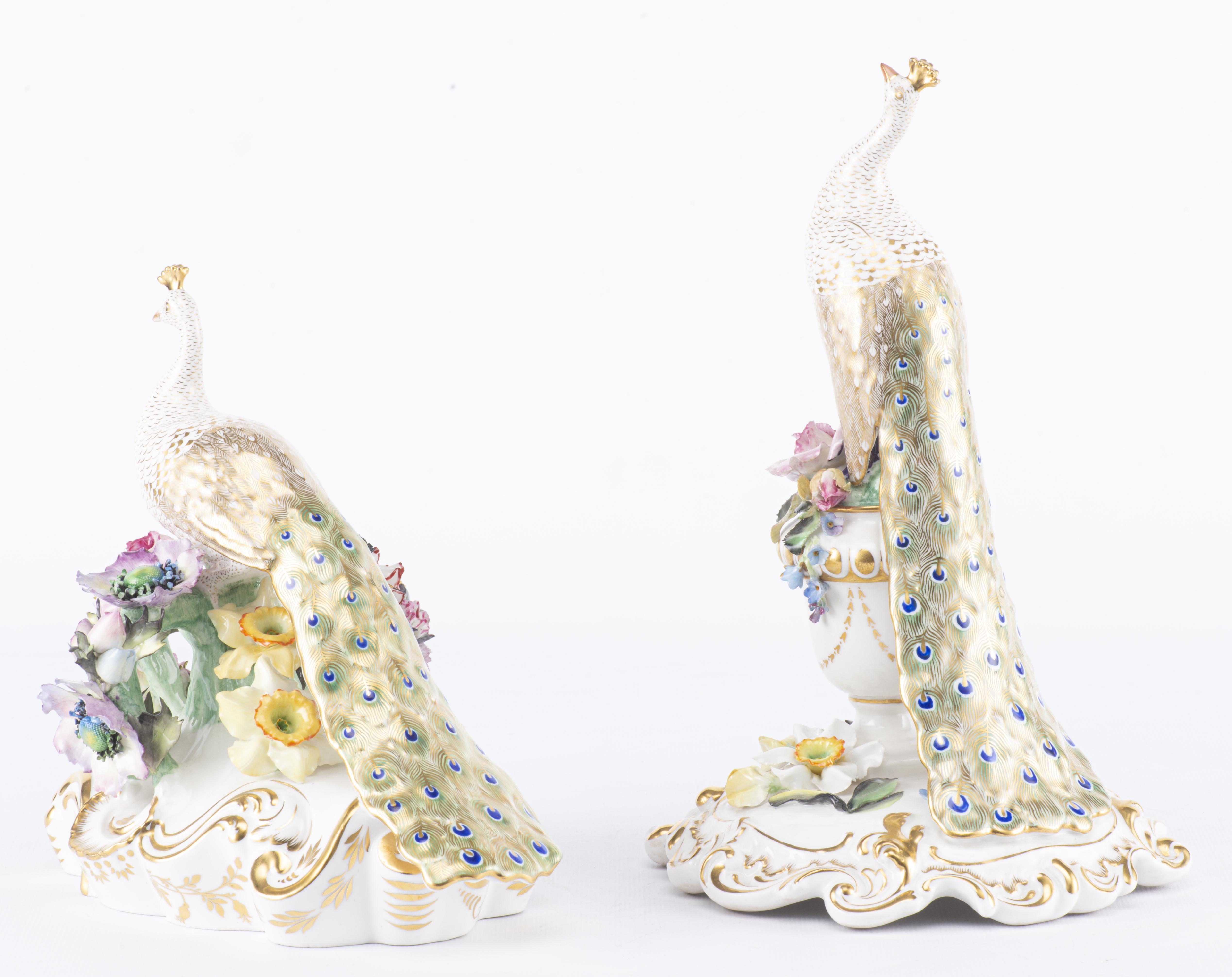 Royal Crown Derby, paire de paons en porcelaine polychrome et dorée.