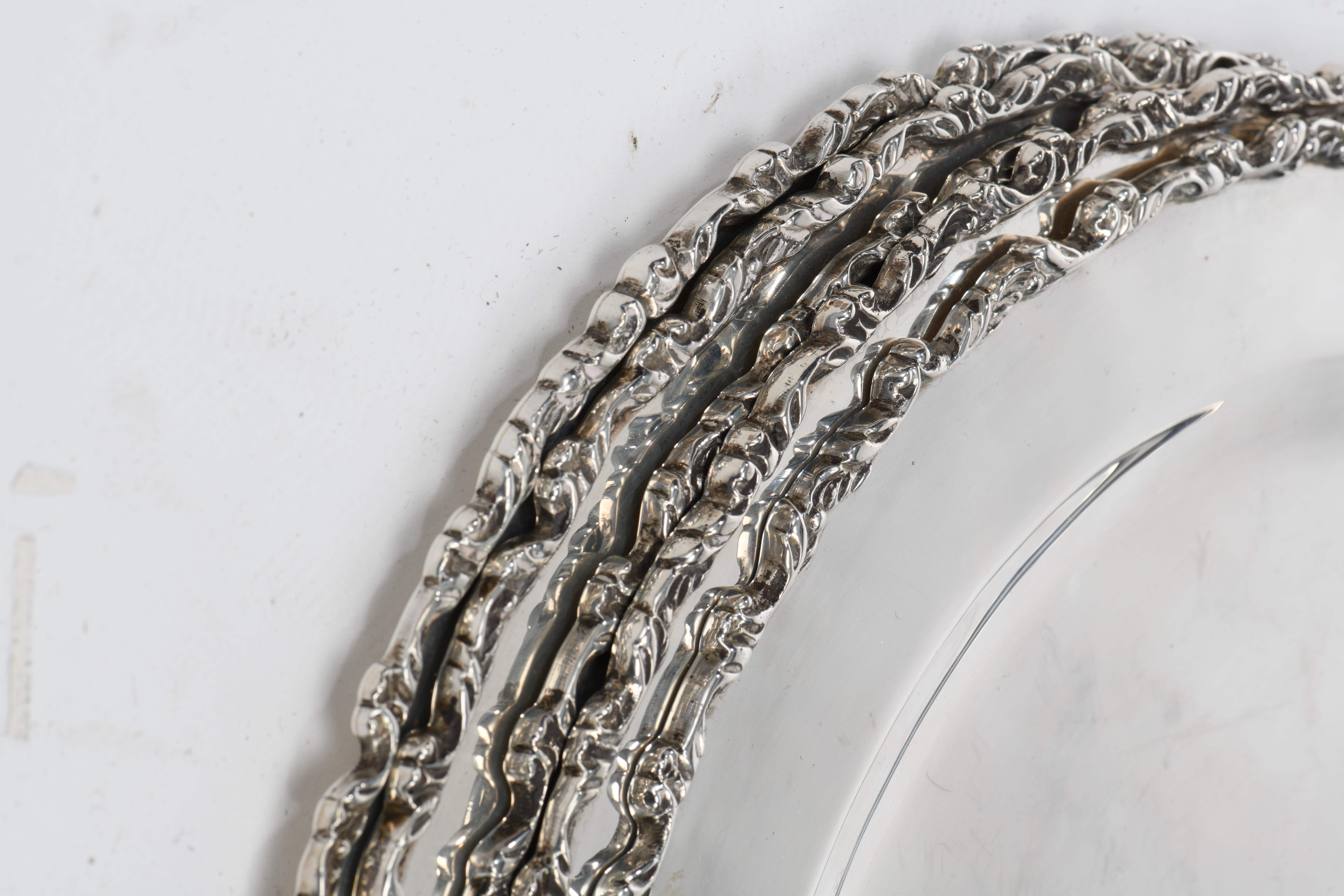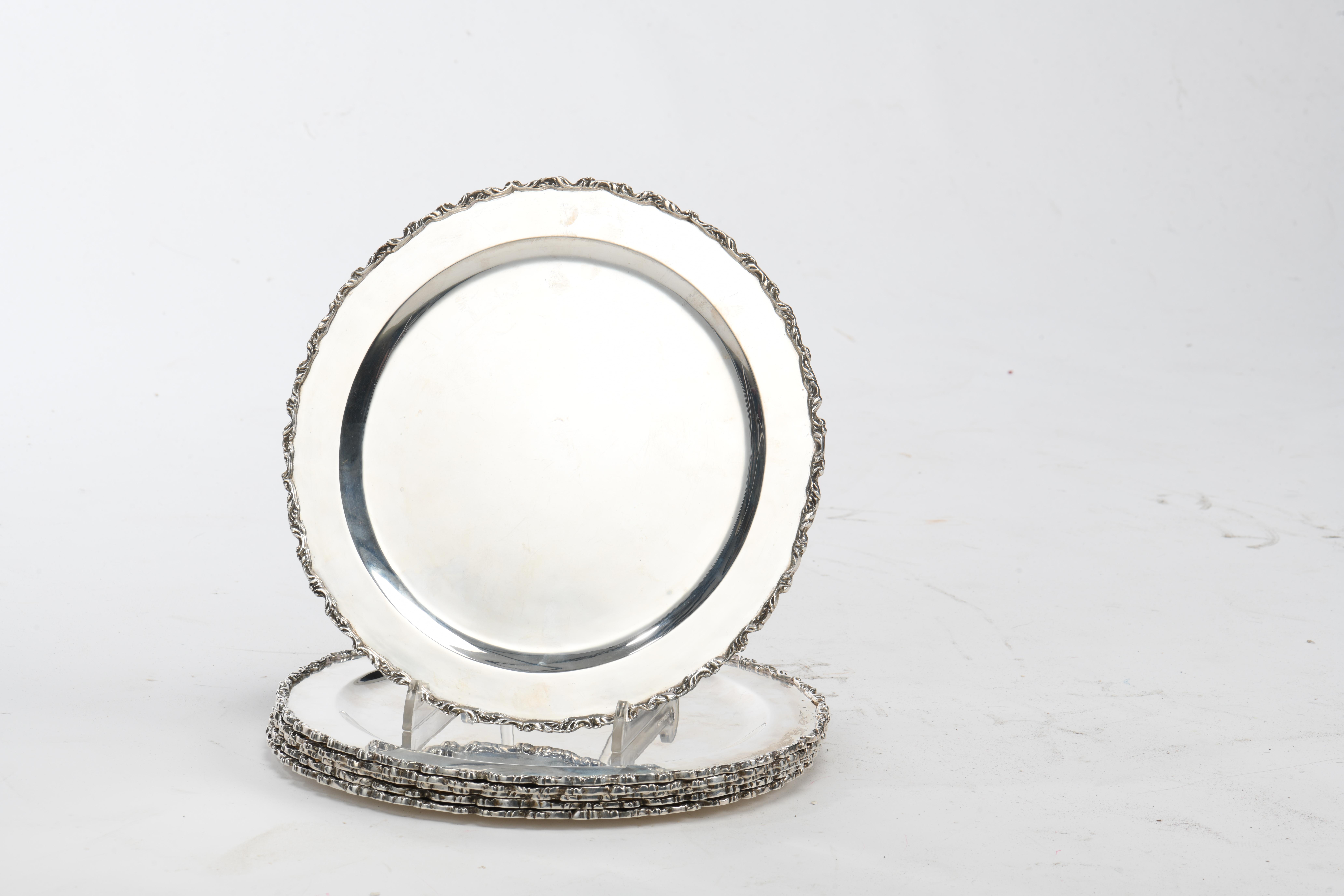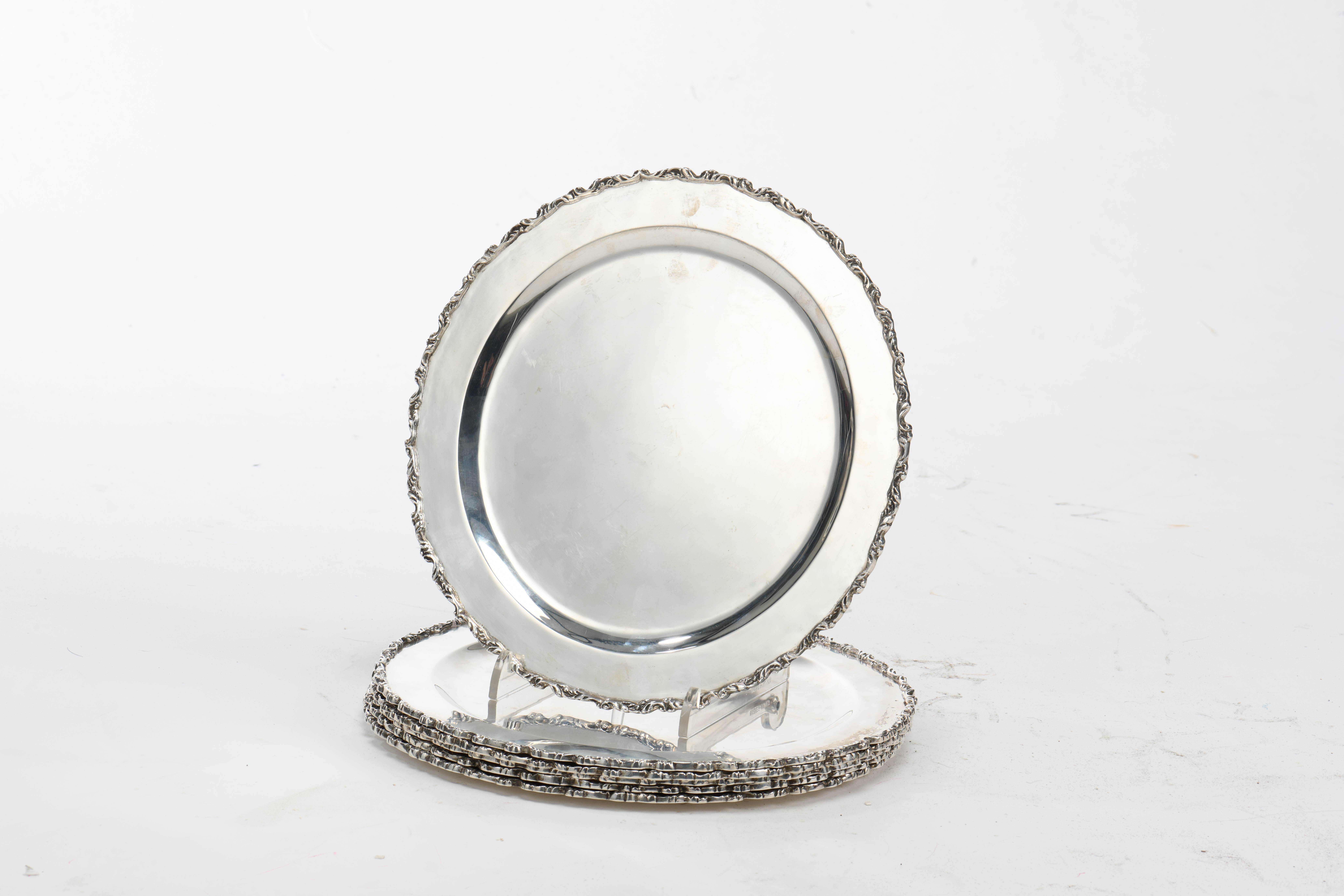 6 présentoirs en argent .925 du Mexique par AVA, bordure de style rocaille